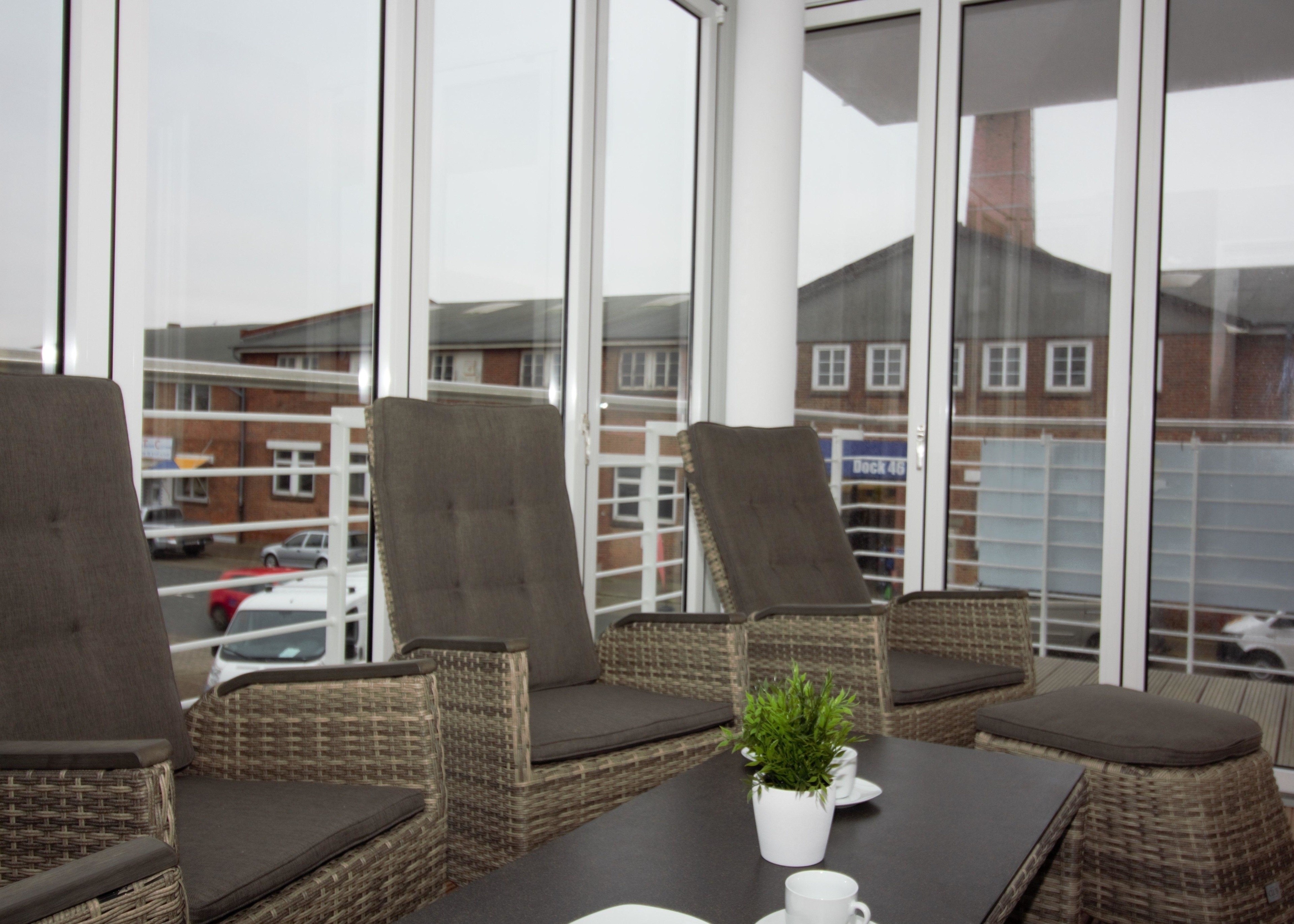 Sie wohnen direkt im Yachthafen von Cuxhaven. Das Haus liegt direkt an der Kaimauer. Der Weltschiffahrtsweg nach Hamburg liegt direkt vor der Hafenanlage.