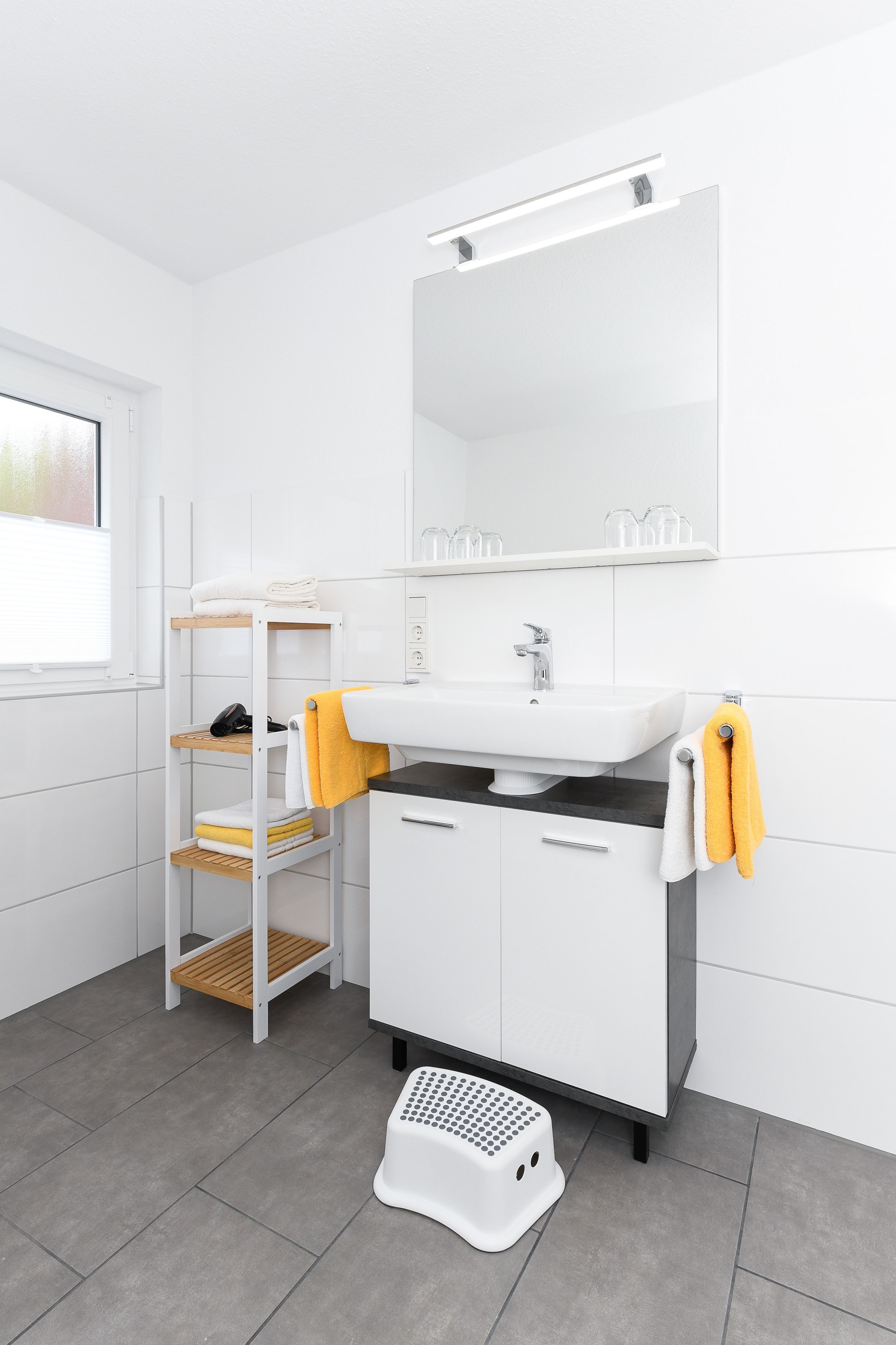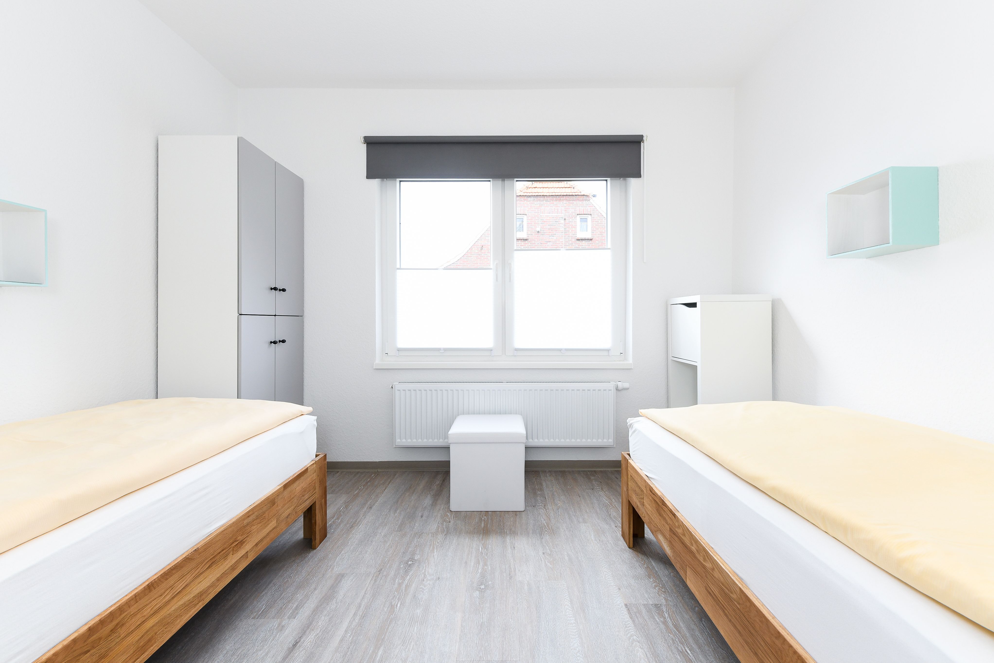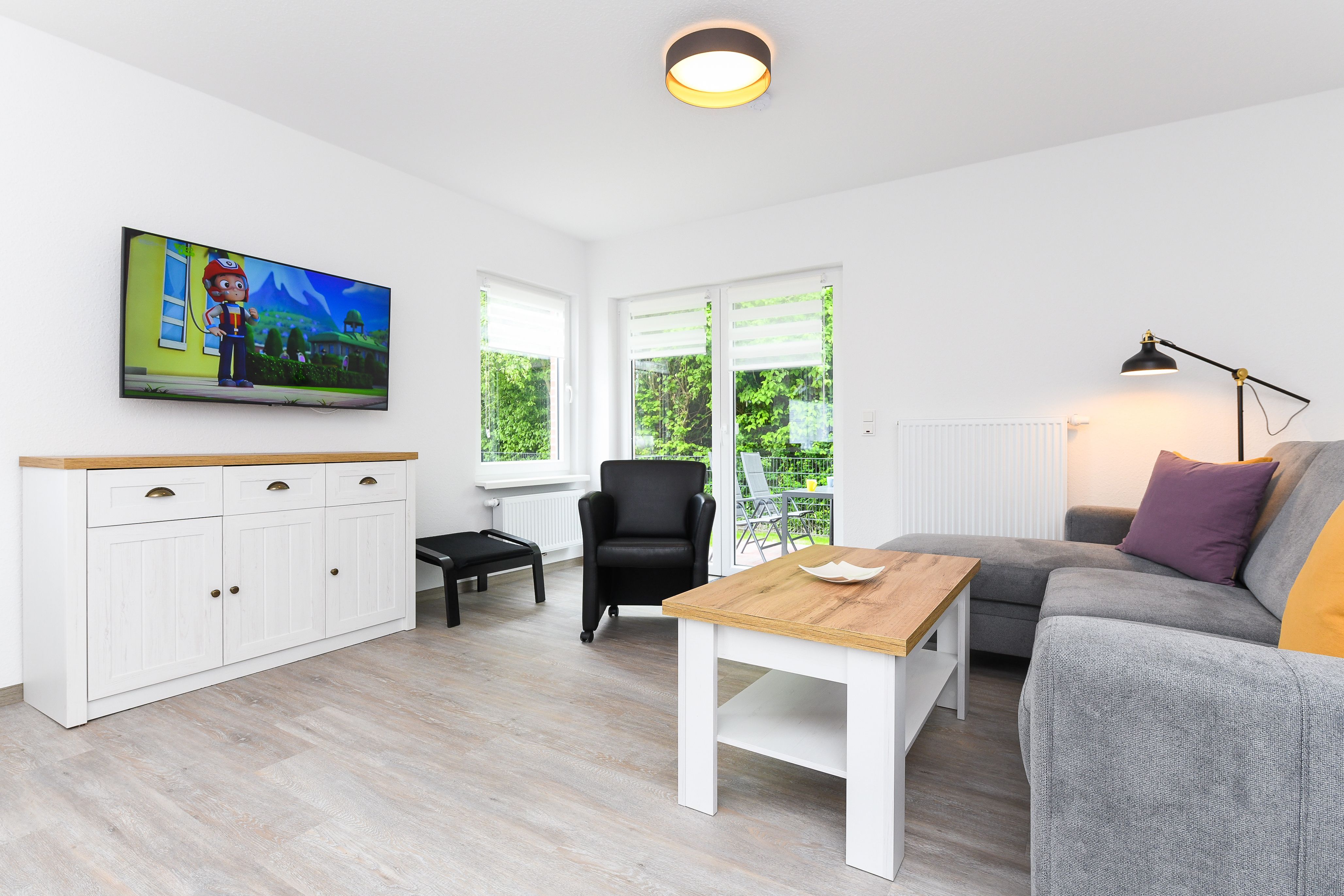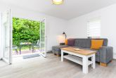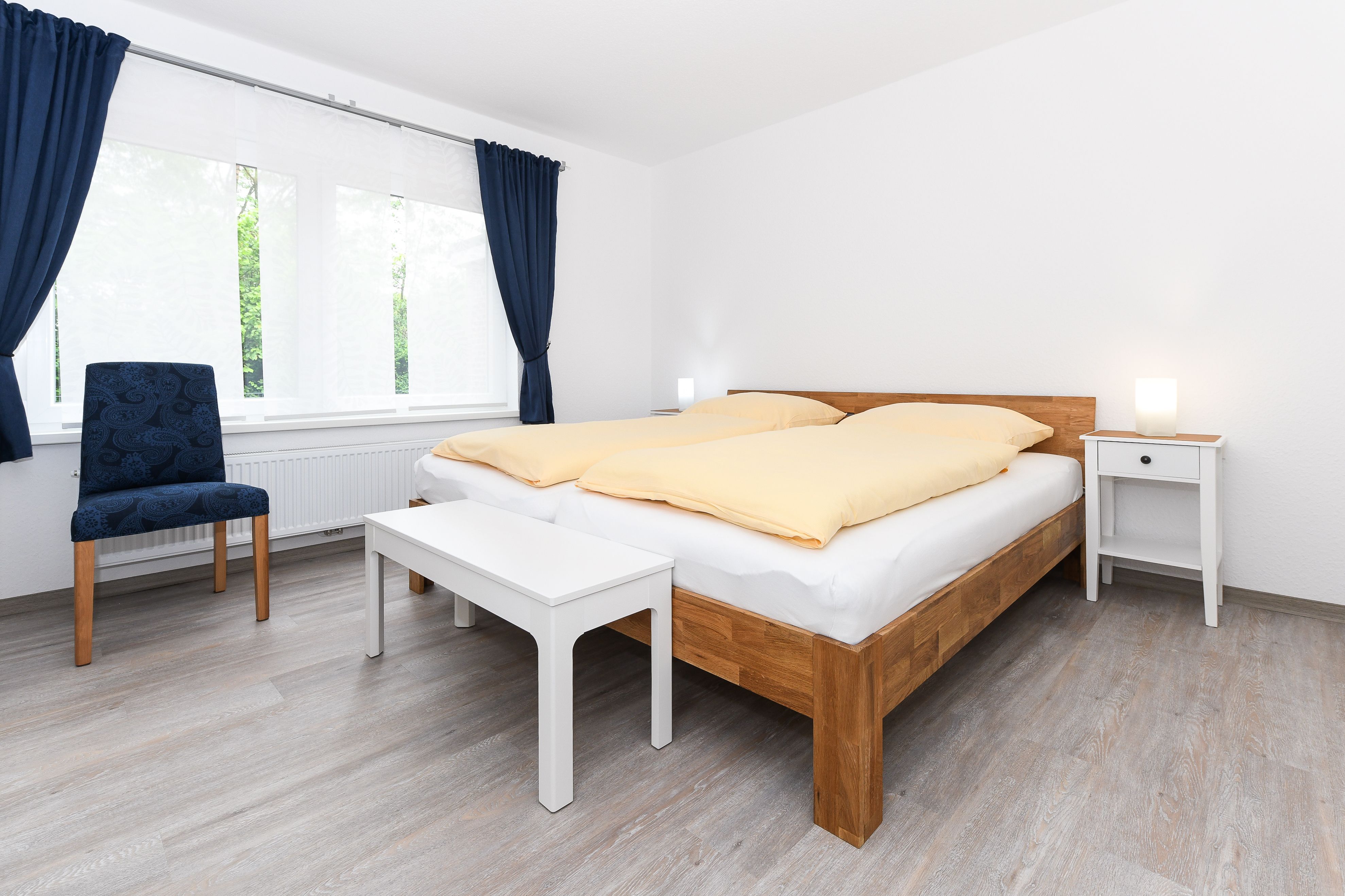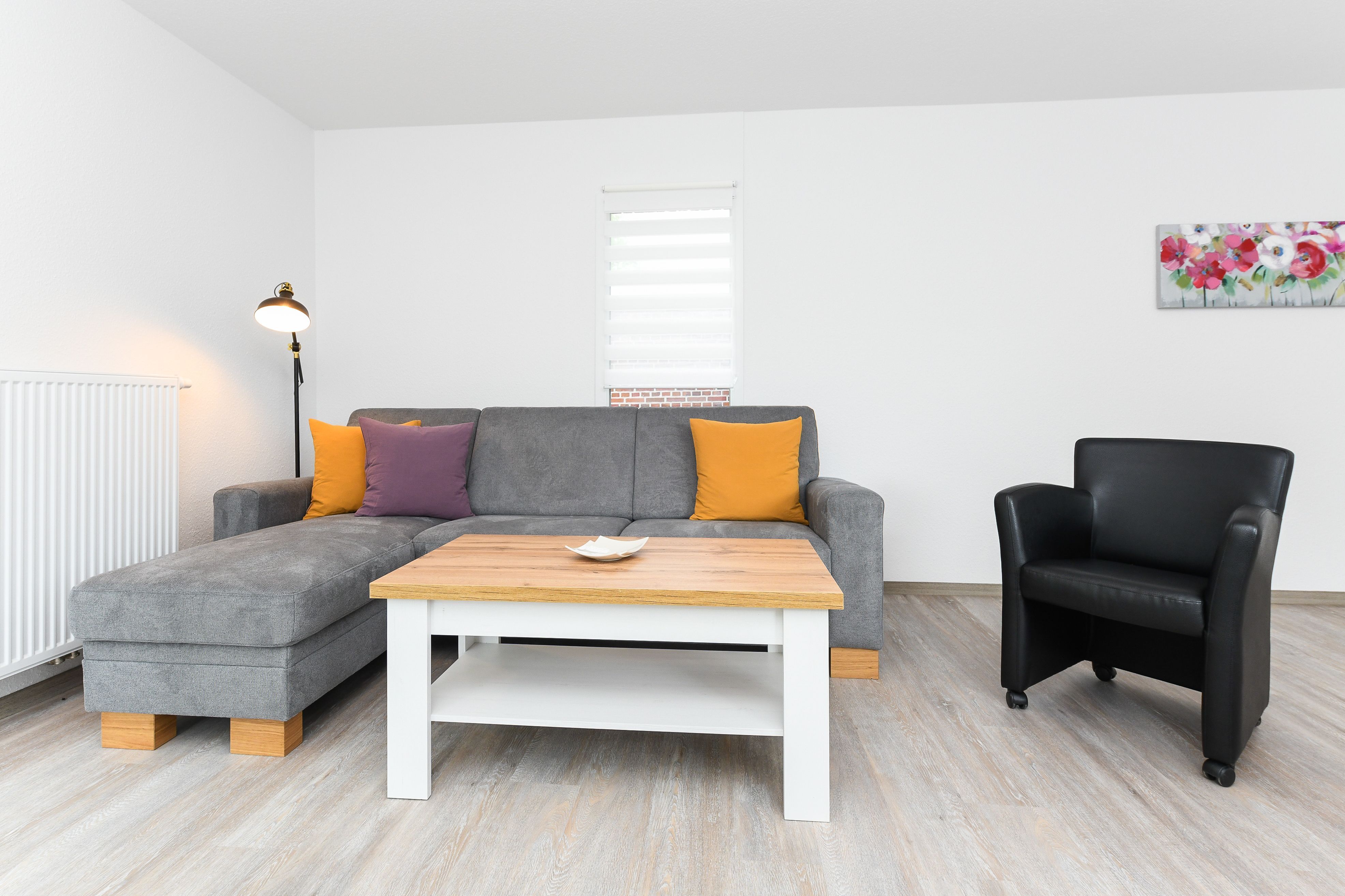 Die Erdgeschosswohnung (ca. 69 m²) hat eine Terrasse und bietet mit zwei Schlafzimmern (Eltern/Kinder) Platz für 4 Personen. Die Wohnung im Obergeschoss für 2 Personen (ca. 52 m²) hat einen sonnigen Balkon mit Blick auf den Park und den Deich. Der zweite Schlafraum ist mit einem separaten Zugang und liegt direkt neben der Wohnung.