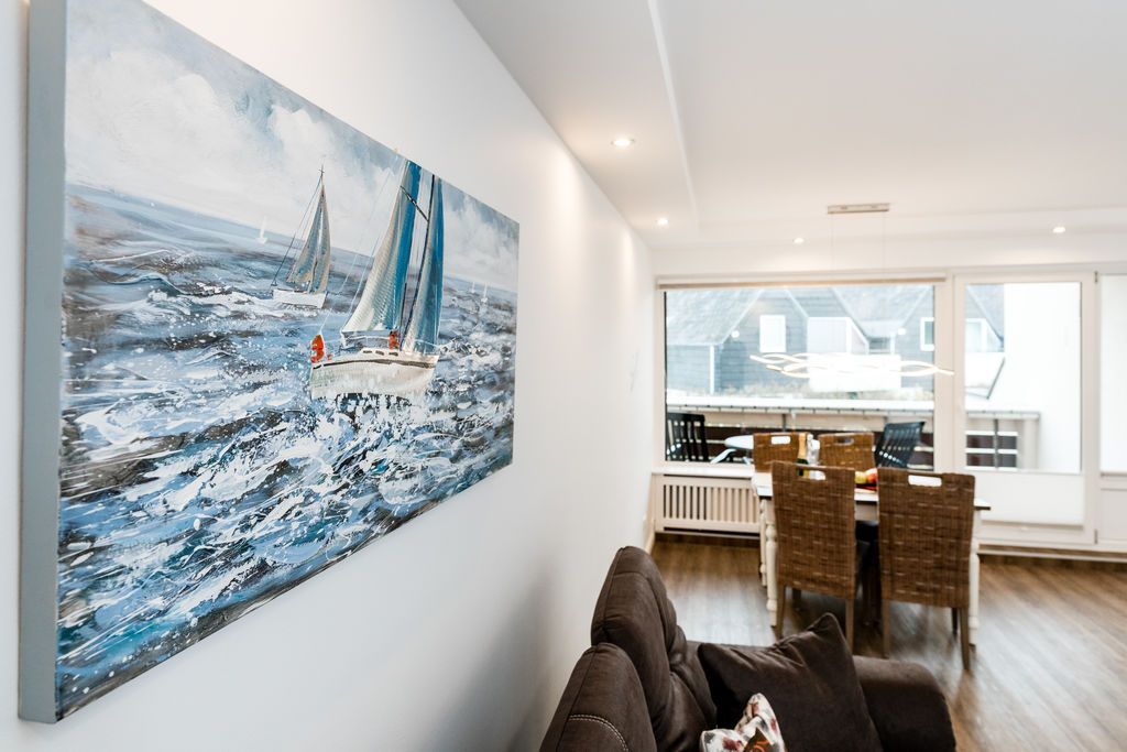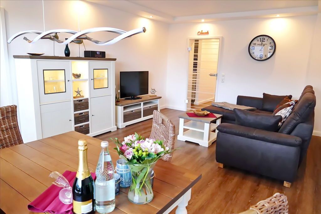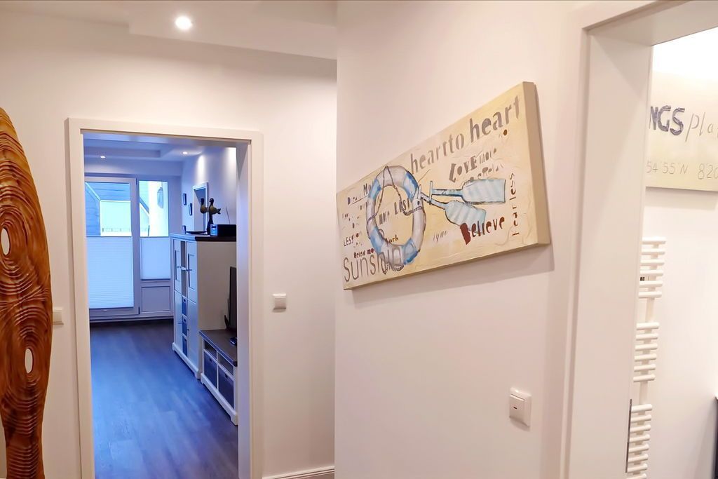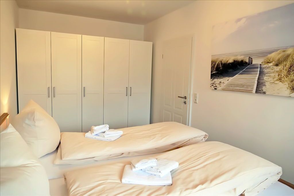 Es besticht durch seine unmittelbare Strandlage und sein sehr modernes Ambiente. Im großzügigen Wohnraum befindet sich eine gemütliche Sofaecke mit Couchtisch, ein großzügiger Essplatz am Fenster, ein Sideboard mit SAT-Flat-Smart-TV , eine Kompaktanlage mit DAB-Empfang sowie Bluetooth-Funktion, ein Vitrinen-Schrank und der Zugang zum großen Ostbalkon mit Balkonmöbeln. Dort können Sie Verweilen, und die Sonne genießen. Im separaten Schlafraum befinden sich ein großes Doppelbett mit getrennten Matratzen, zwei Nachttische sowie ein großer Kleiderschrank, der ausreichend Stauraum bietet und ein weiterer Ostbalkon. Die offene Einbauküche ist mit einem Ceranherd, Backofen mit Mikrowelle, Geschirrspüler und Kühlschrank ausgestattet. Im Flur befindet sich eine Garderobe und als Eyecatcher, ein echter Wurzelholztisch. Duschbad/WC. Das ganze Objekt ist mit Design Floor ausgelegt und somit für Allergiker bestens geeignet. Ebenso sind Kopfkissen und Bettdecke für Allergiker. Das Rauchen sowie die Tierhaltung sind deshalb auch nicht gestattet! Zum Appartement gehört ein PKW-Stellplatz. Ihnen steht ein kostenloser WLAN-Anschluss zur Verfügung. Bettwäsche und Handtücher sind im Preis enthalten. Änderungen der Ausstattung vorbehalten!