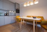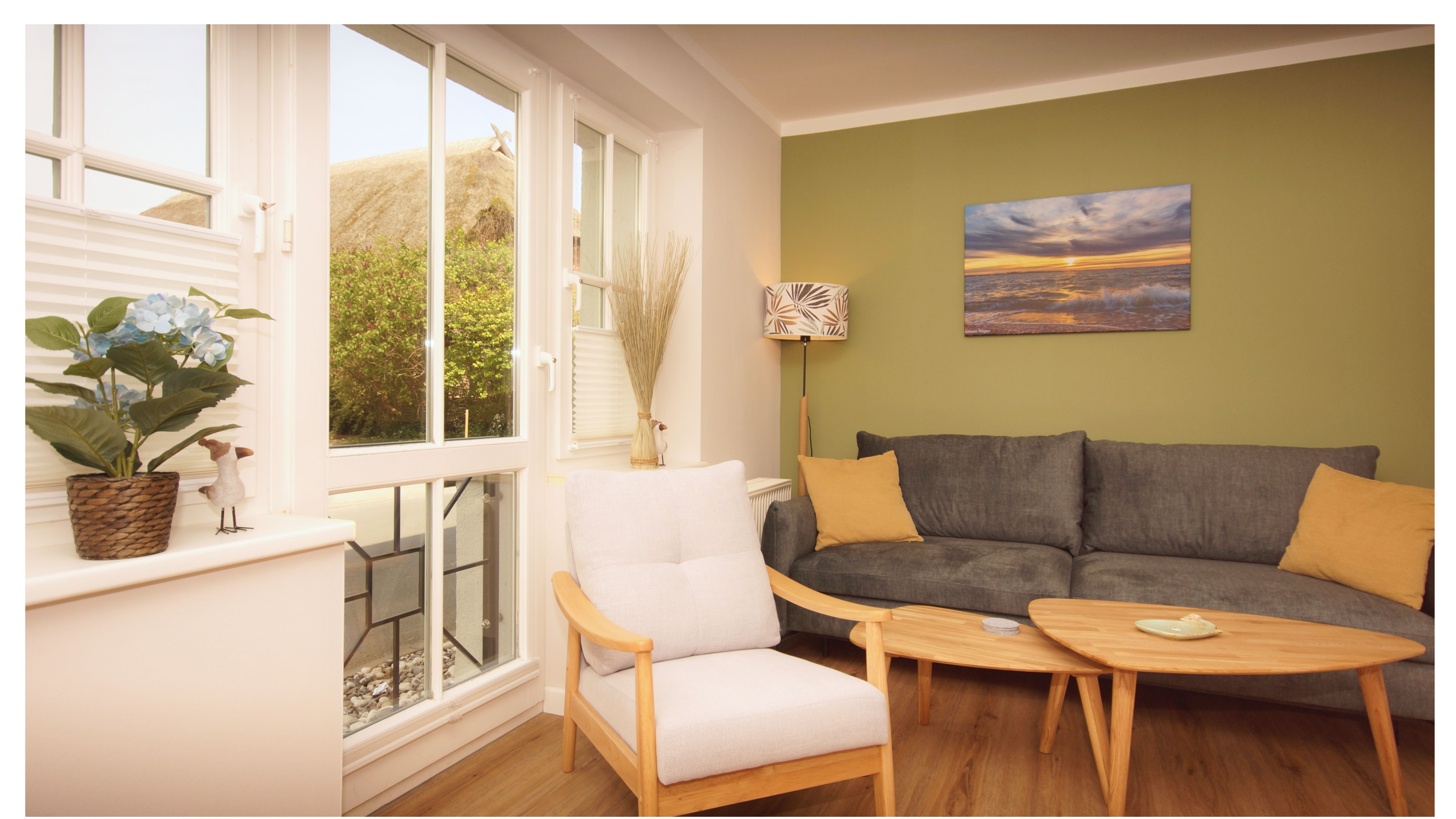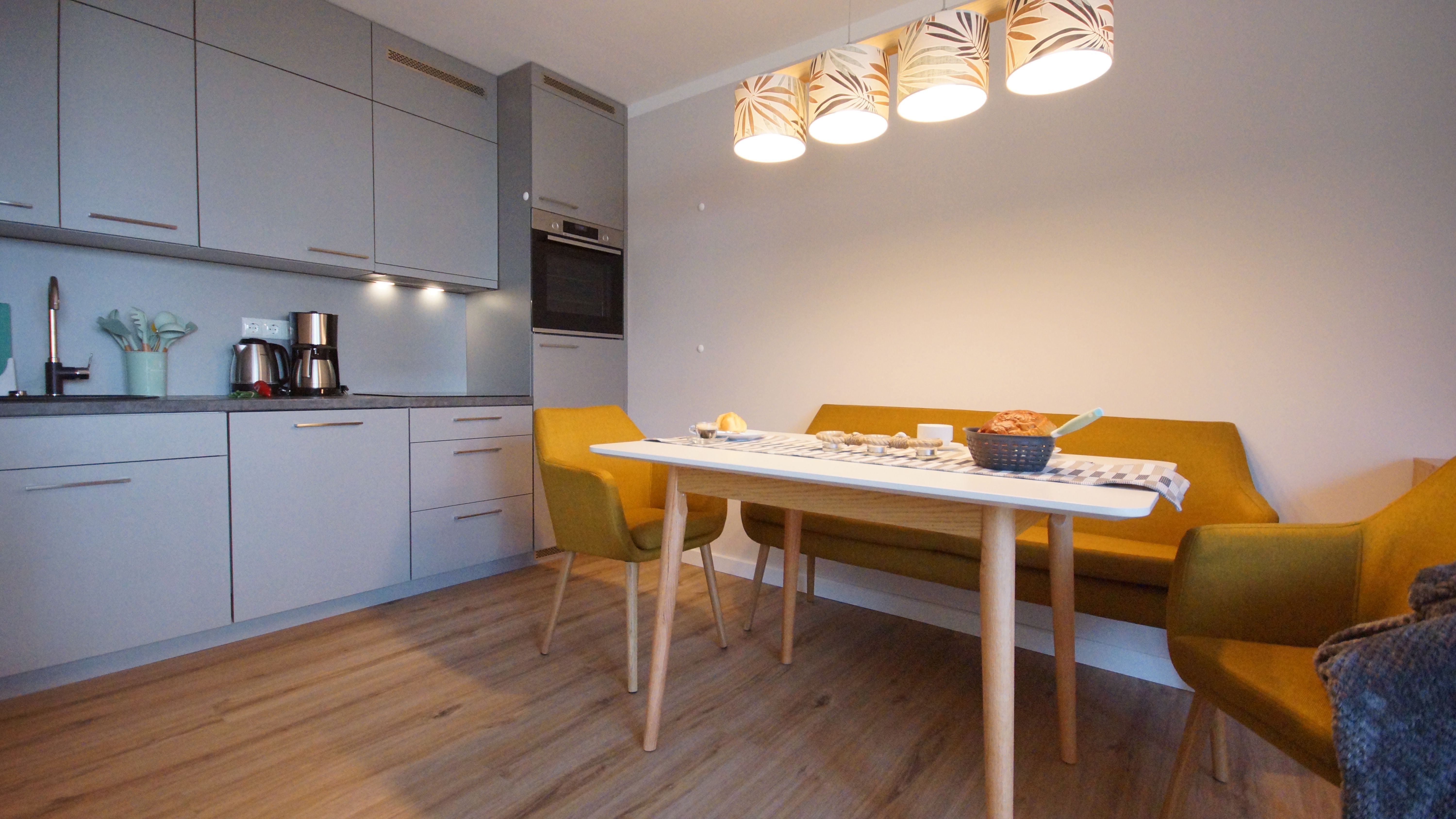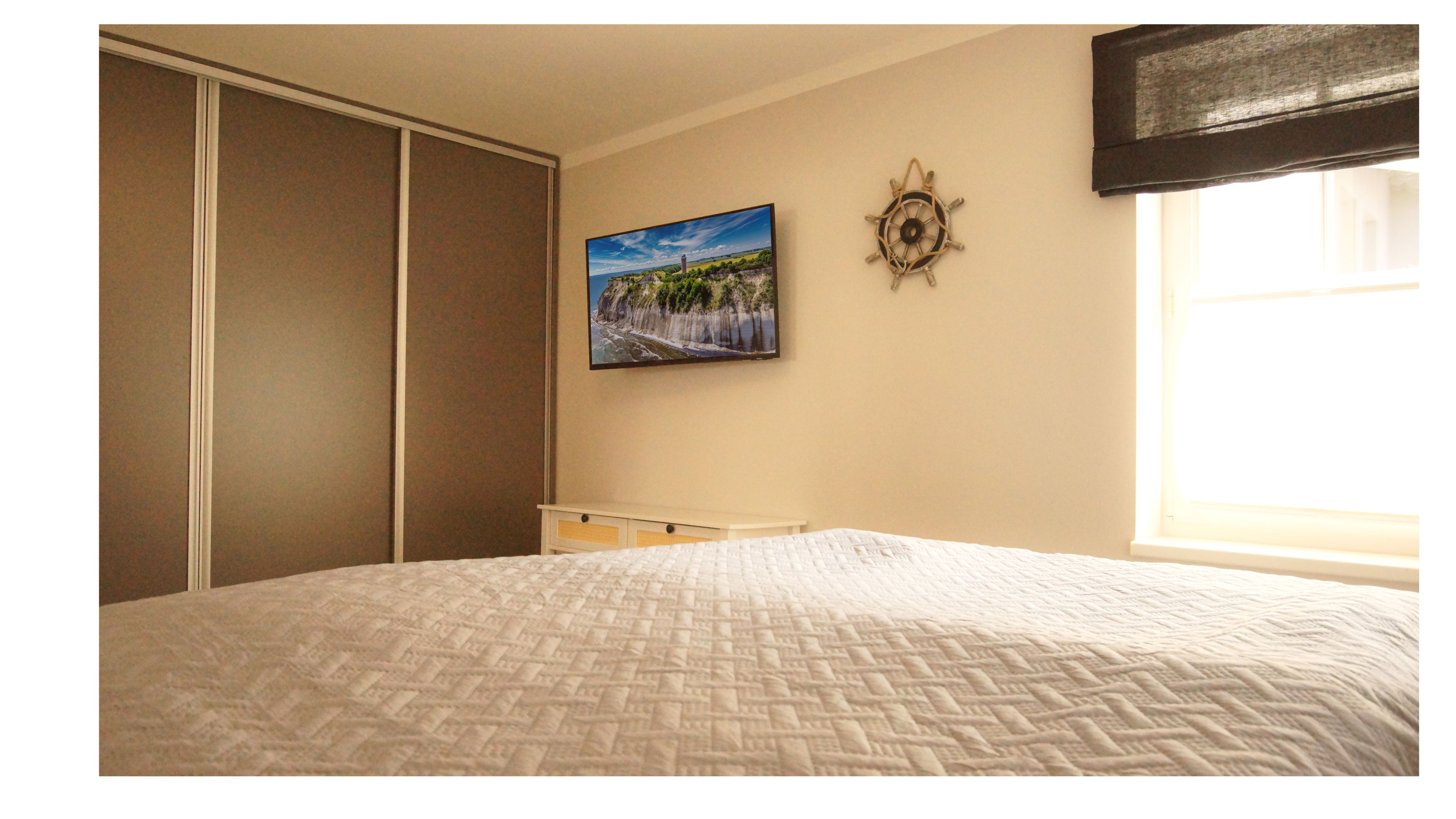 Die modern und liebevoll eingerichtete Wohnung 5 im Haus Seeblick verfügt über einen separaten Schlafbereich, einen hellen Wohnbereich mit offener Küchenzeile, sowie ein Badezimmer mit Dusche und WC. Sie umfasst ca. 42qm. Der komfortable Wohnbereich mit einer Couch (Aufbettungsmöglichkeit 1,40m x 1,90m) + Couchtisch, einem Sessel, einer Stehlampe sowie einer Kommode mit Flachbild-TV bietet Ihnen einen gemütlichen Ort zum Ausklingen der erlebnisreichen Tage auf der Halbinsel Mönchgut. Angrenzend befindet sich eine offene, voll ausgestattete Küchenzeile mit Spülmaschine, Kühlschrank mit Eisfach, Backofen, Dunstabzugshaube, Wasserkocher, Kaffeemaschine, Nespresso Maschine, Toaster, Induktionsfeld, allerlei Küchenkleingeräte sowie ein Essplatz. Direkt nebenan befindet sich das gemütliche Schlafzimmer, das mit einem Kleiderschrank und einem Boxspringbett (1,80m x 2,00m) ausgestattet ist. Ein zusätzlicher Flachbild-TV rundet den Raum ab. Das innenliegende und freundliche Badezimmer bietet Ihnen eine Dusche, ein WC, ein Fön, ein Kosmetikspiegel und ein Waschplatz mit dazugehörigem Spiegel. Für unsere kleinen Gäste steht ein Hochstuhl sowie ein Kinderreisebett (ohne Bett Inlett/inkl. Matratze) zur Verfügung. Auch ein 4-Beiner ist mit seinem eigenen Schlafplatz gegen eine Gebühr ein gern gesehener Gast. Ein eigener Strandkorb (01.April - 31.Oktober) steht zum Entspannen im Freien direkt am Bodden zur Verfügung. Eine Fahrrad-Unterstellmöglichkeit steht Ihnen und allen Gästen des Hauses zur gemeinschaftlichen Nutzung kostenfrei zur Verfügung. Ihr PKW-Stellplatz befindet sich knapp 100m vom Haus entfernt und ist für Sie inklusive. Die Erstausstattung eines Wäschepaketes (komplette Bettwäsche, 1 Duschhandtuch, 2 kleine Handtücher) können Sie bis 14 Tage vor Anreise gegen einen Aufpreis dazu buchen oder durch eigene ergänzen. Ab 2 gebuchten Paketen erhalten Sie einmalig 1 Geschirrhandtuch und 1 Duschvorleger hinzu.