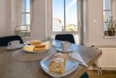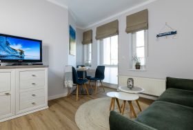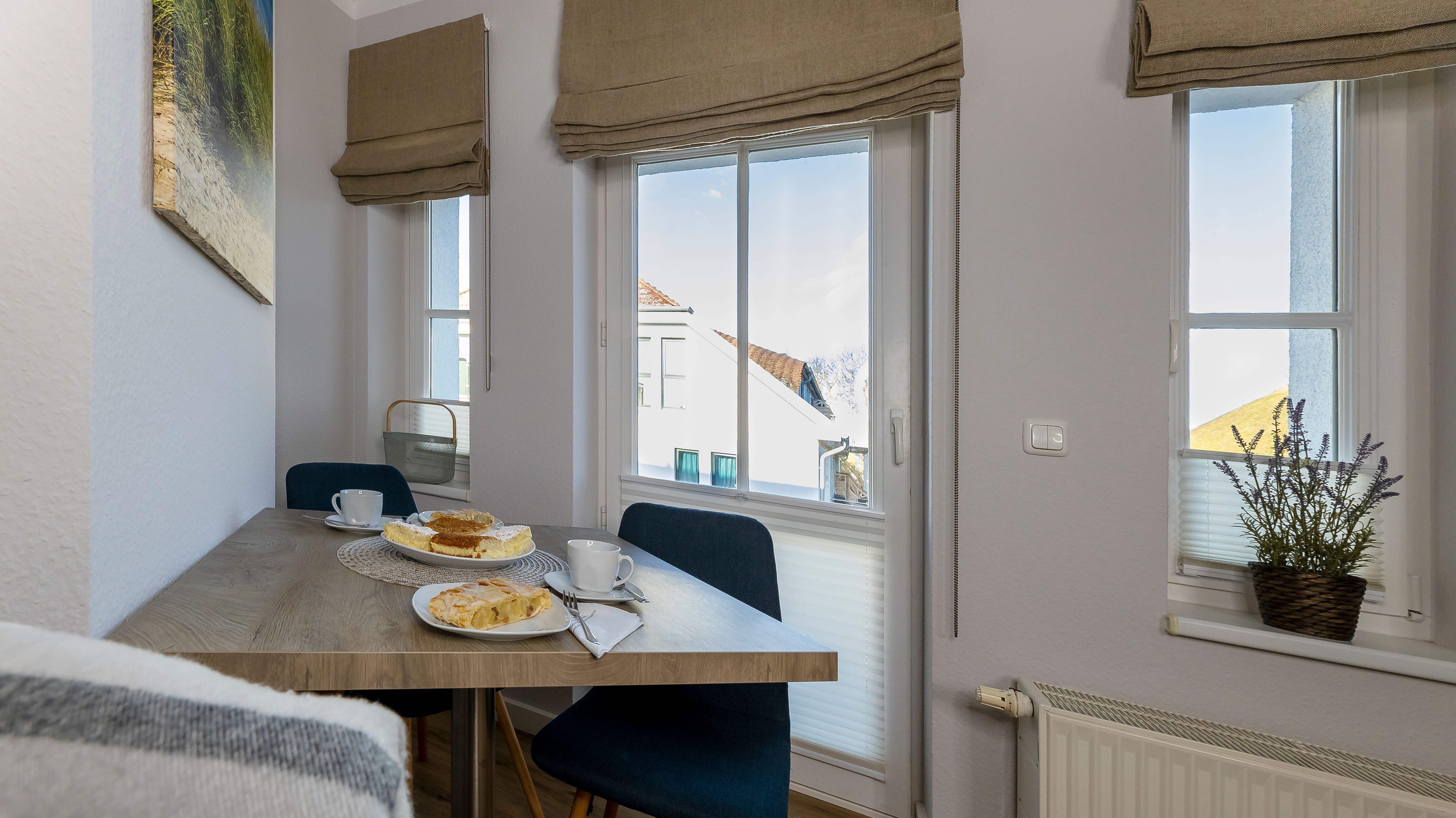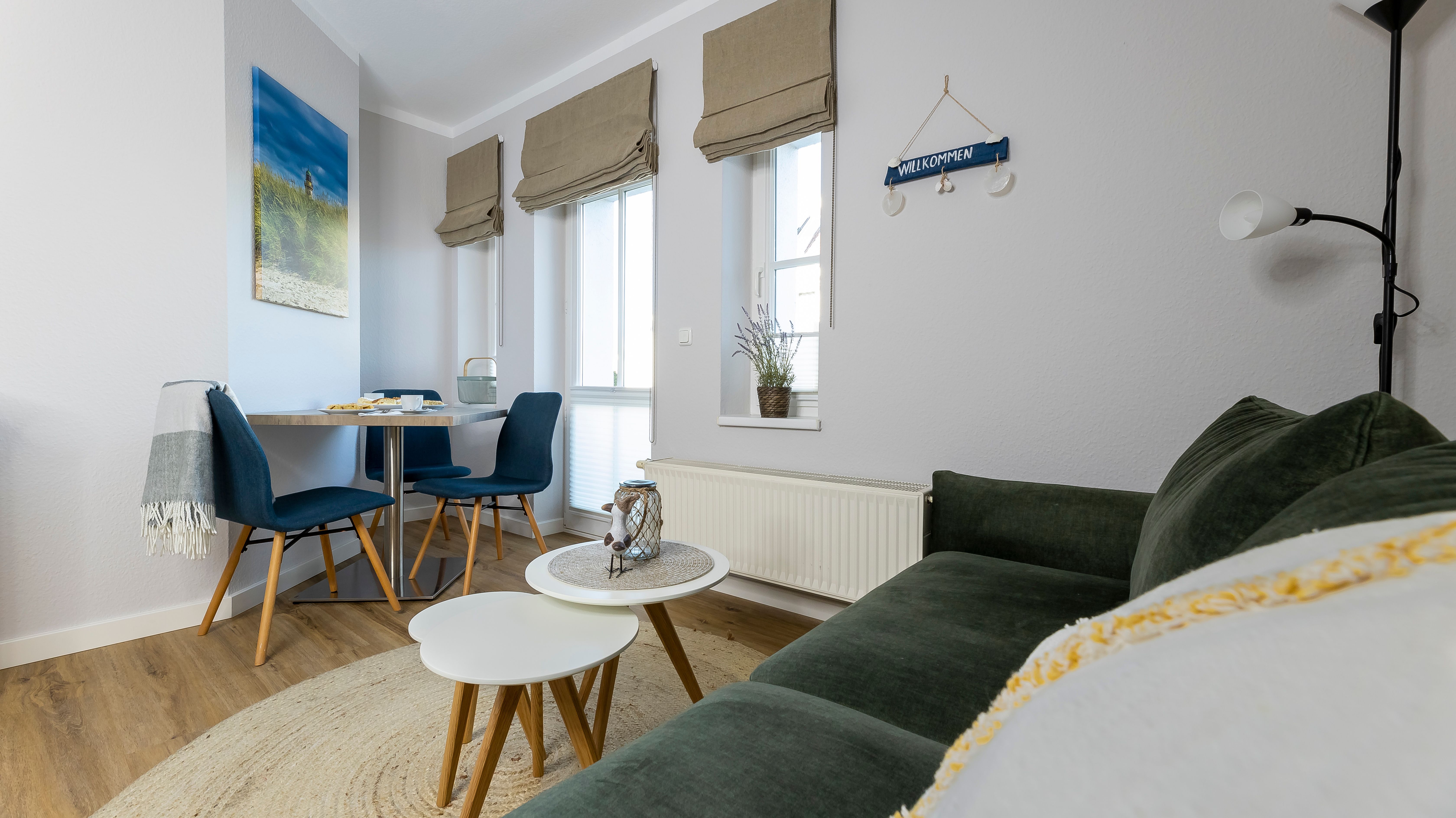 Die modern und liebevoll eingerichtete Wohnung 7 im Haus Seeblick verfügt über einen separaten Schlafbereich, einen hellen Wohnbereich mit offener Küchenzeile, sowie ein Badezimmer mit Dusche und WC. Sie umfasst ca. 32qm und bietet Ihnen Platz für max. 2 Erwachsene + 1 Kind bis 17 Jahre. Der komfortable Wohnbereich mit einer Schlafcouch (Aufbettungsmöglichkeit 1,40m x 1,90m) + Couchtisch, einer Stehlampe sowie eine Kommode mit Flachbild-TV bietet einen gemütlichen Ort zum Ausklingen der erlebnisreichen Tage auf der Halbinsel Mönchgut. Von hier aus gelangen Sie zudem auf einen kleinen bestuhlten Balkon. Zusätzlich steht Ihnen ein eigener Strandkorb (01.April - 31.Oktober) zum Entspannen im Freien direkt am Bodden zur Verfügung. Angrenzend befindet sich eine offene, voll ausgestattete Küchenzeile mit Spülmaschine, Kühlschrank mit Eisfach, Dunstabzugshaube, Wasserkocher, Kaffeemaschine, Nespresso Maschine, Toaster, Induktionsfeld, Mikrowelle und ein Essplatz. Direkt nebenan befindet sich das geräumige Schlafzimmer mit Doppelbett (1,80m x 2,00m) und Kleiderschrank. Das innenliegende und freundliche Badezimmer bietet Ihnen eine Dusche, ein WC, ein Fön, ein Kosmetikspiegel und ein Waschplatz mit dazugehörigem Spiegel. Für unsere kleinen Gäste steht ein Hochstuhl sowie ein Kinderreisebett (ohne Bett Inlett/inkl. Matratze) zur Verfügung. Auch ein 4-Beiner ist mit seinem eigenen Schlafplatz gegen eine Gebühr ein gern gesehener Gast. Eine Fahrrad-Unterstellmöglichkeit steht Ihnen und allen Gästen des Hauses zur gemeinschaftlichen Nutzung kostenfrei zur Verfügung. Ihr PKW-Stellplatz befindet sich knapp 100m vom Haus entfernt und ist für Sie inklusive. Die Erstausstattung eines Wäschepaketes (komplette Bettwäsche, 1 Duschhandtuch, 2 kleine Handtücher) können Sie bis 14 Tage vor Anreise gegen einen Aufpreis dazu buchen oder durch eigene ergänzen. Ab 2 gebuchten Paketen erhalten Sie einmalig 1 Geschirrhandtuch und 1 Duschvorleger hinzu.