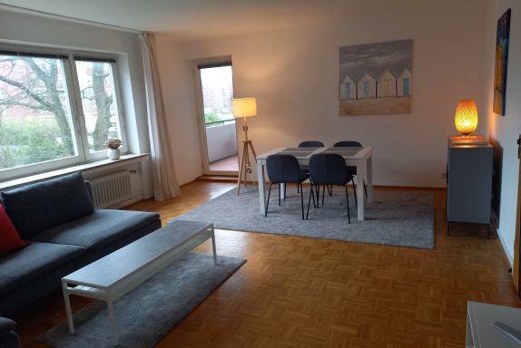 Große, geräumige Ferienwohnung am großen Hafen am Fuße der Kaiser Wilhelm Brücke gelegen bietet viel Platz für einen erholsamen und erlebnisreichen Urlaub für die ganze Familie. Der Südbalkon läd zum Verweilen an frischer Luft ein. Das große Wohnzimmer ist mit einem modernen Kabel-TV ausgestattet. WLAN ist in der gesamten Wohnung verfügbar. Die Küche ist ausgestattet mit einem Kühlschrank mit Gefrierfach, einem Ceranfeld-Herd und Backofen, einem Geschirrspüler, einer Mikrowelle, Frenchpress-Kaffeemachine, Toaster sowie Wasserkocher. Schlafzimmer 1 hat ein Doppelbett und Kleiderschrank, Schlafzimmer 2 ein französisches Bett sowie einen Kleiderschrank und das 3 Schlafzimmer wartet mit zwei Einzelbetten und einem Kleiderschrank auf. Die Zimmer können verdunkelt werden.