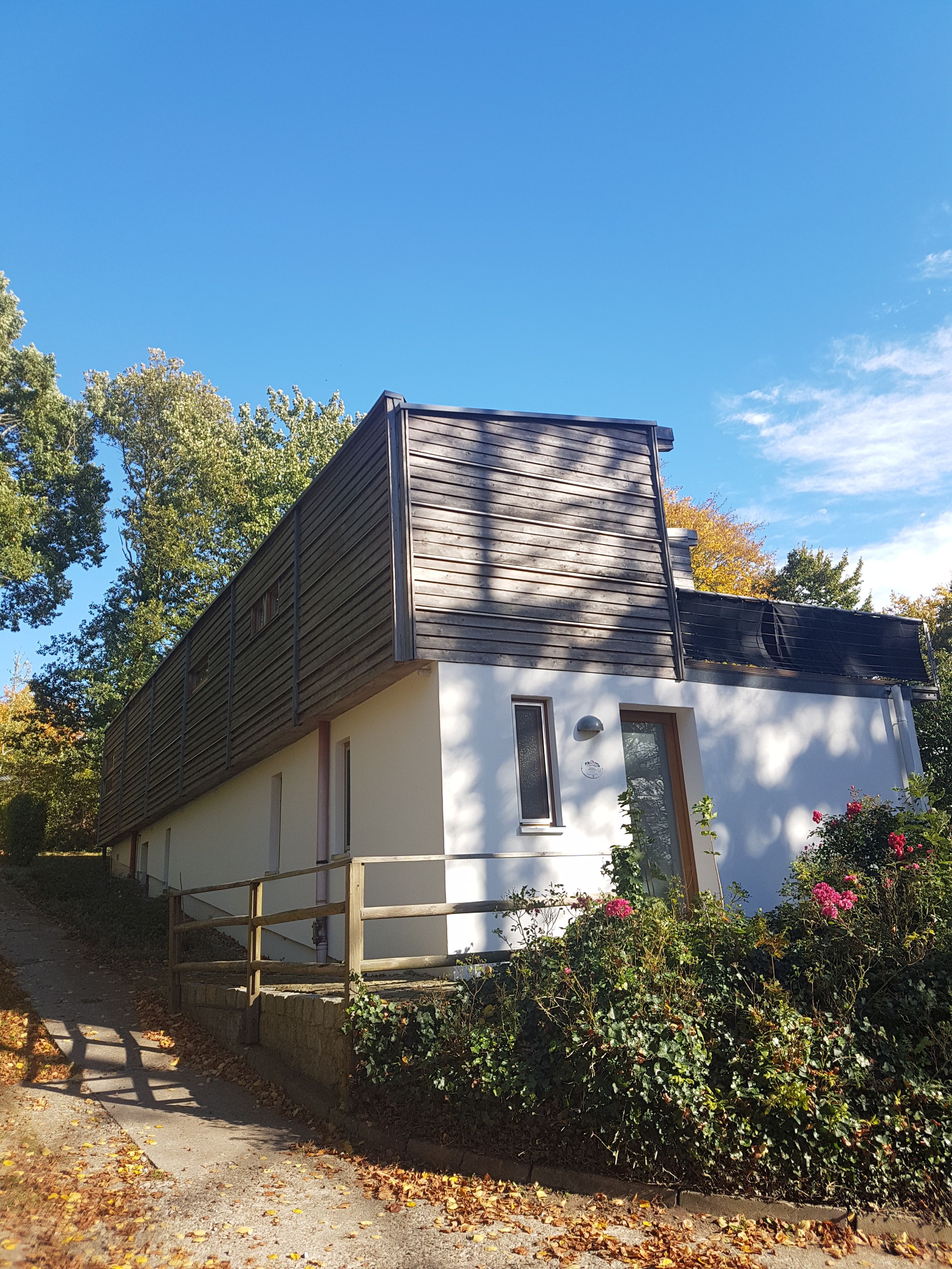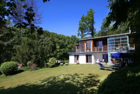 Das mit viel Holz in angenehmer, moderner Architektur errichtete, freistehende Haus befindet sich auf einem ca. 1.400 qm großen, umzäunten Grundstück. Es liegt am Ende einer Sackgasse am Ortseingang des Ostseebades Göhren. Die Nutzung dieses großen Grundstücks teilen sich die Mieter der beiden Ferienwohnungen exklusiv. Die ruhige, naturnahe Waldrandlage verspricht Entspannung und Erholung besonders nach einem Tag am belebten Strand oder einem erlebnisreichen Ausflug über die Insel. Hier kann man sich zurückziehen und für sich sein.