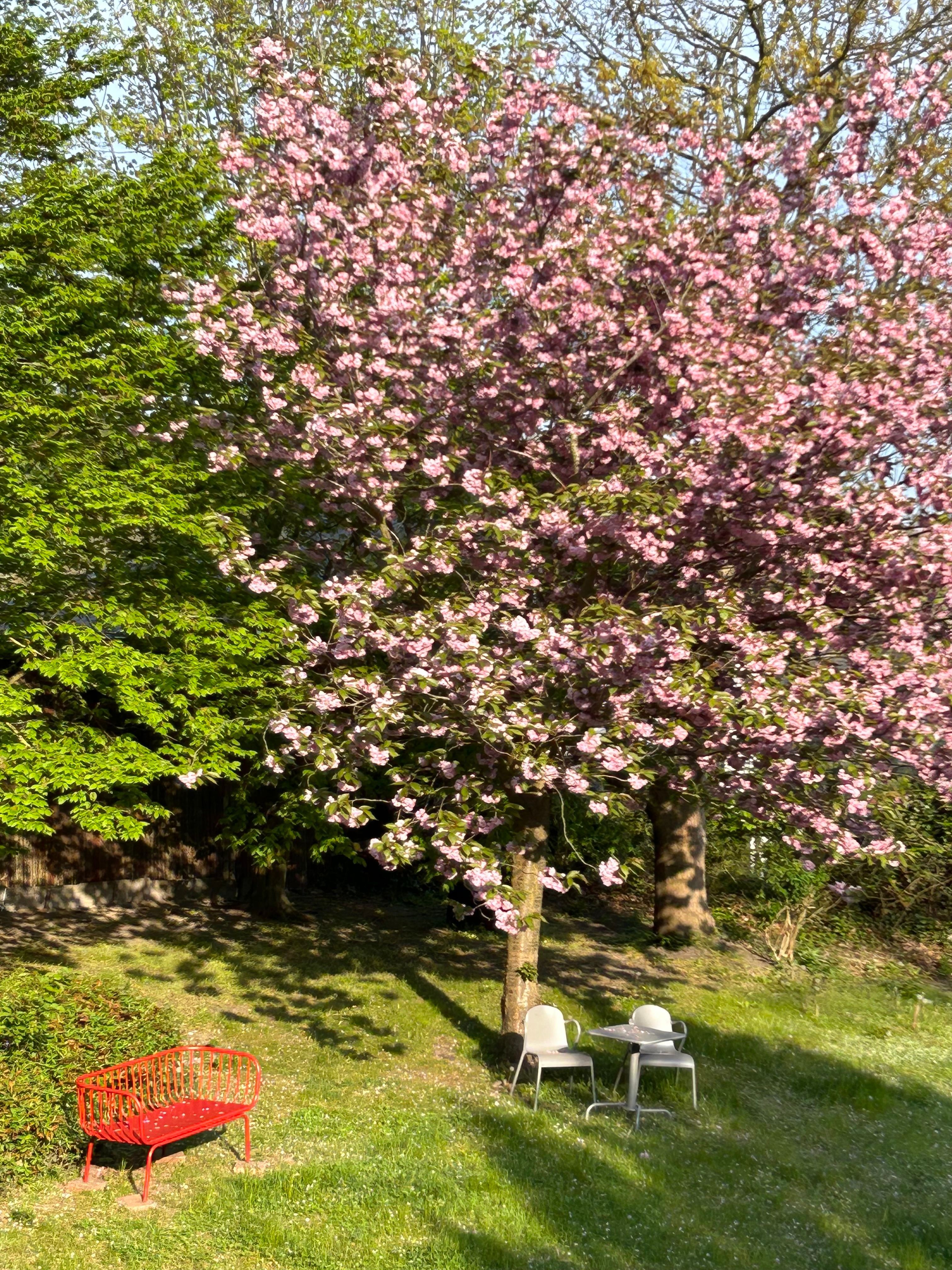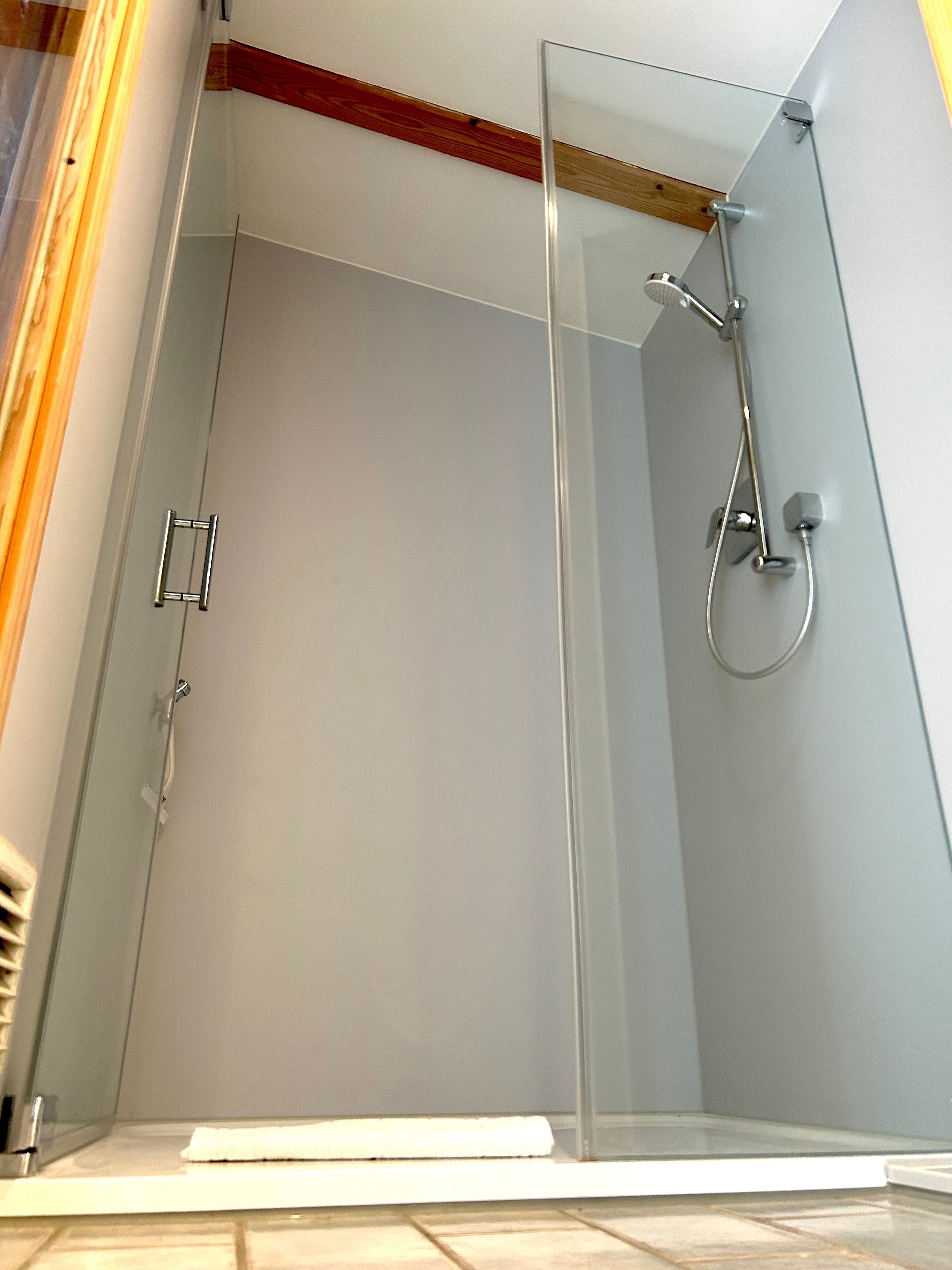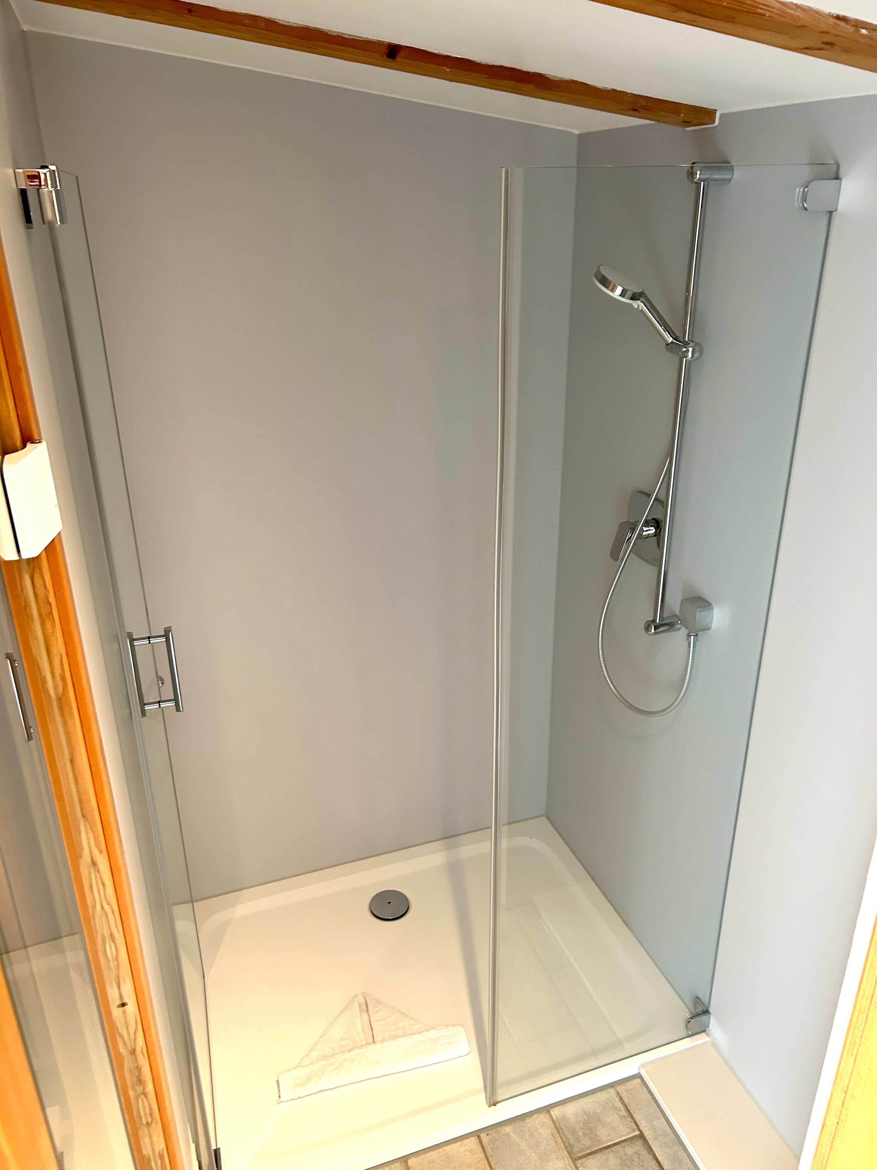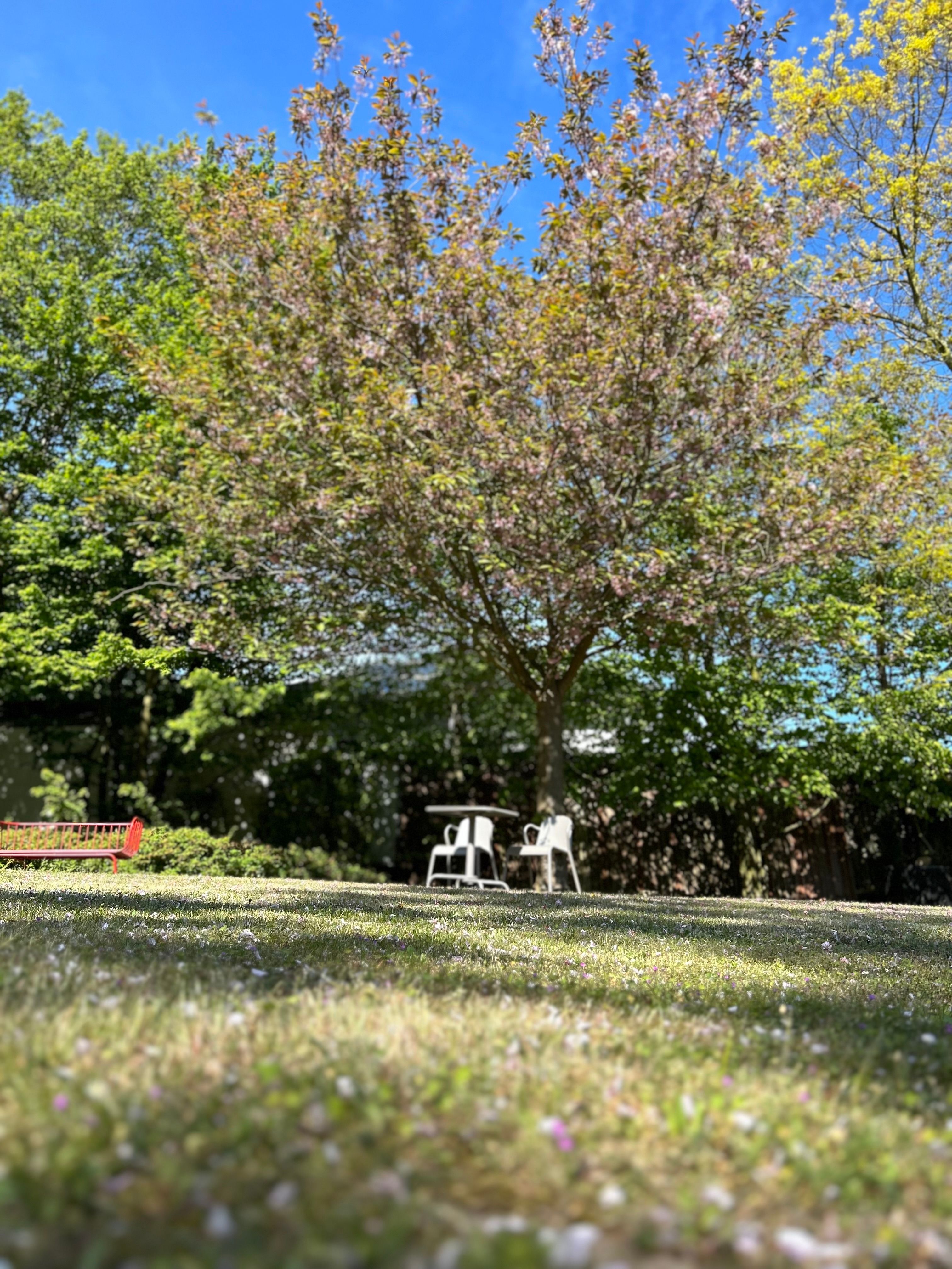Im Erdgeschoß liegt die komplett eingerichtete Küche mit Geschirrspüler, Mikrowelle, Backofen und Kombikühlschrank sowie ein Gäste-WC. Hier befindet sich auch der Essbereich und weiterhin eine Sitzgelegenheit im Wintergarten, welcher durch die Glasschiebetüren betreten werden kann. Die Küche wird mit einer Fußbodenheizung beheizt. Von hier aus geht es hinaus auf die kleine Terrasse und die große Wiese davor. Sonnenliegen, Sonnenschirm, Grillmöglichkeit und PKW-Stellplatz sind vorhanden. Bettwäsche und Handtücher (exklusive Saunahandtücher) sind mit der Wohnung zu mieten.