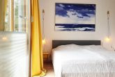 Die vier-Sterne Maisonette-Ferienwohnung ist ca. 125 qm groß und für maximal vier Personen ausgelegt. Die beiden Schlafräume, ausgestattet mit je einem Doppelbett (180cm Liegefläche), der große Wohnraum, möbliert mit Couch, Lesesessel, kleinem Schreibtisch sowie Fernseher, und ein Kamin befinden sich in der oberen Etage. Das Badezimmer im Obergeschoß besitzt eine Badewanne mit Sprudelfunktion, WC und Dusche. Außerdem ist eine separate Dusche direkt neben der Sauna vorhanden. Die Sauna kann gegen Aufpreis genutzt werden - Saunatücher sind bitte mitzubringen. Eine Außengalerie im Obergeschoß verläuft entlang der gesamten Hausfront, kann von allen Wohn-/Schlafräumen durch bodentiefe Glastüren betreten werden und bietet Fern-/Meerblick Richtung Südstrand. Der Wintergarten in der oberen Etage kann vom Wohnraum aus durch die Glasschiebetüren betreten werden. Außer im Spätherbst/Winter ist die Außengalerie auch mit Draußenmöbeln zum Sitzen und Entspannen versehen.
