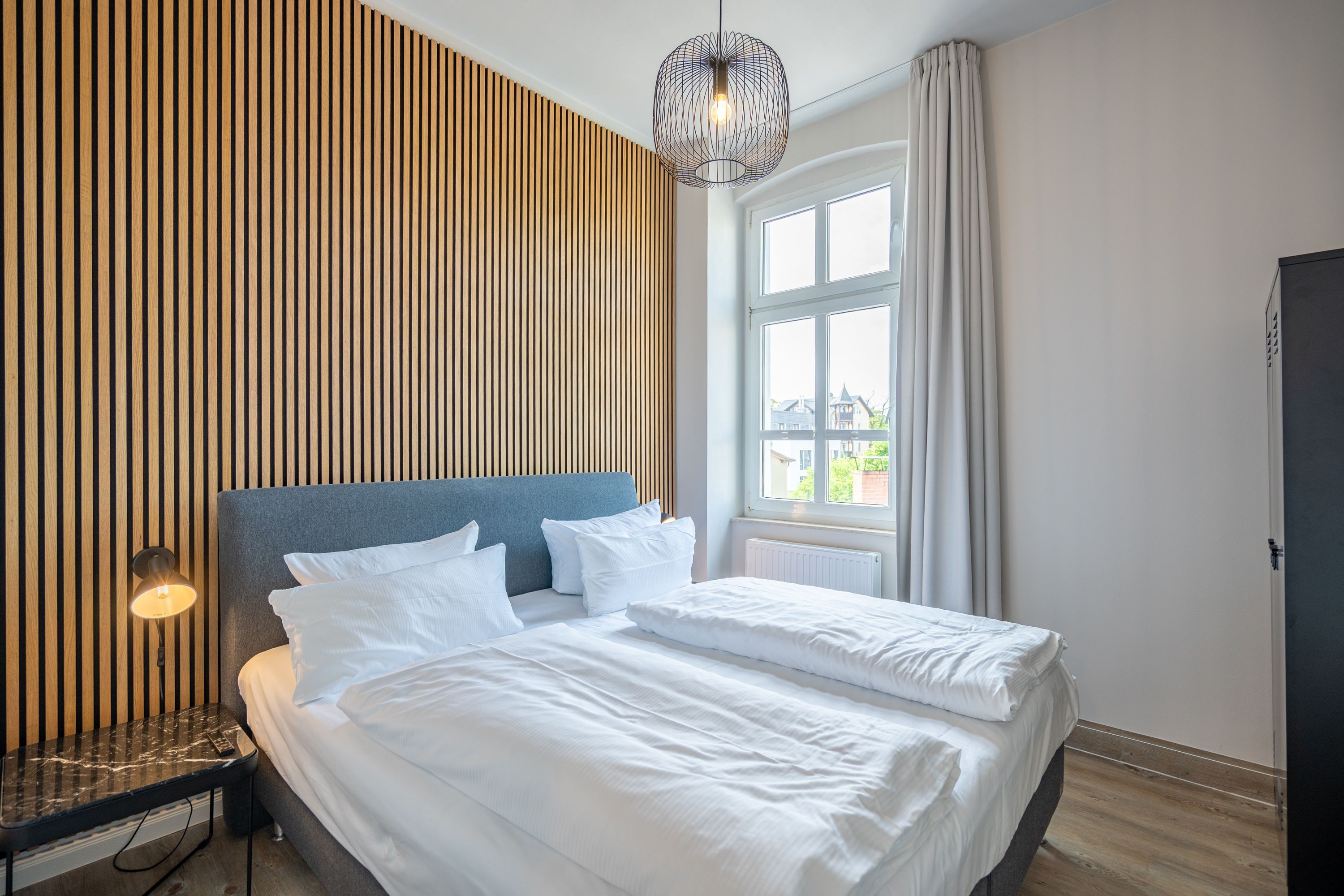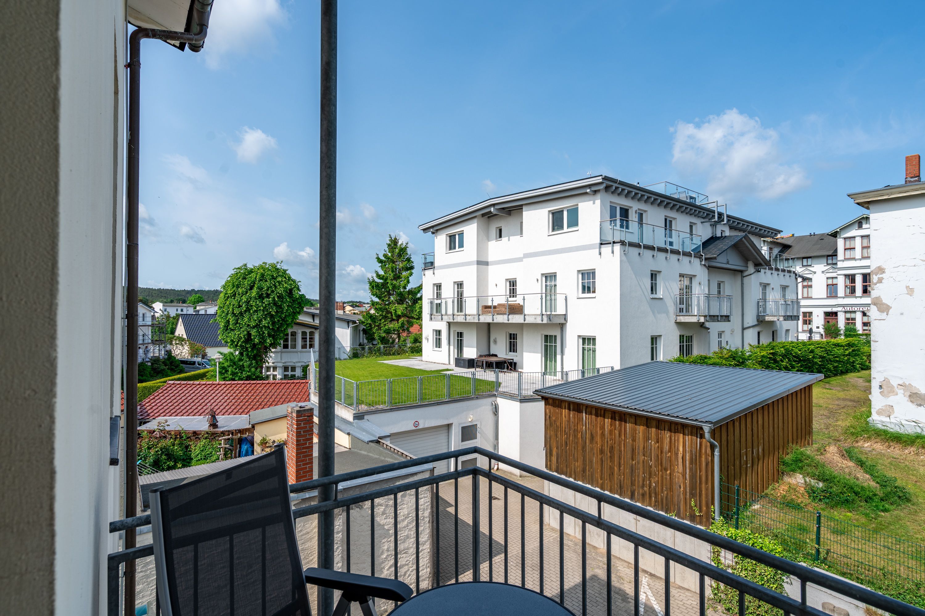 Die Villa Albertine ist im Jugendstil errichtet und erstrahlt nach ihrer Renovierung 2021 im neuen Glanz. Sie befindet sich in der 2. Reihe, nur 20m von der Strandpromenade in Ahlbeck entfernt. Die Villa bietet Ihnen moderne gemütliche 2- bis 4-Raum-Ferienwohnungen, die sich perfekt mit dem maritimen Einzelzimmer im 2. OG kombinieren lassen - ein ideales Domizil für den Urlaub zu zweit oder mit der Familie. Die meisten Appartements verfügen über einen PKW-Stellplatz in der geräumigen Tiefgarage. Für Ihren Komfort finden Sie eine Münzwaschmaschine im Haus. Ein Fahrradabstellraum ist ebenfalls vorhanden. Die bekannte Ahlbecker Seebrücke und das Ortszentrum befinden sich ca. 5 Gehminuten entfernt.
