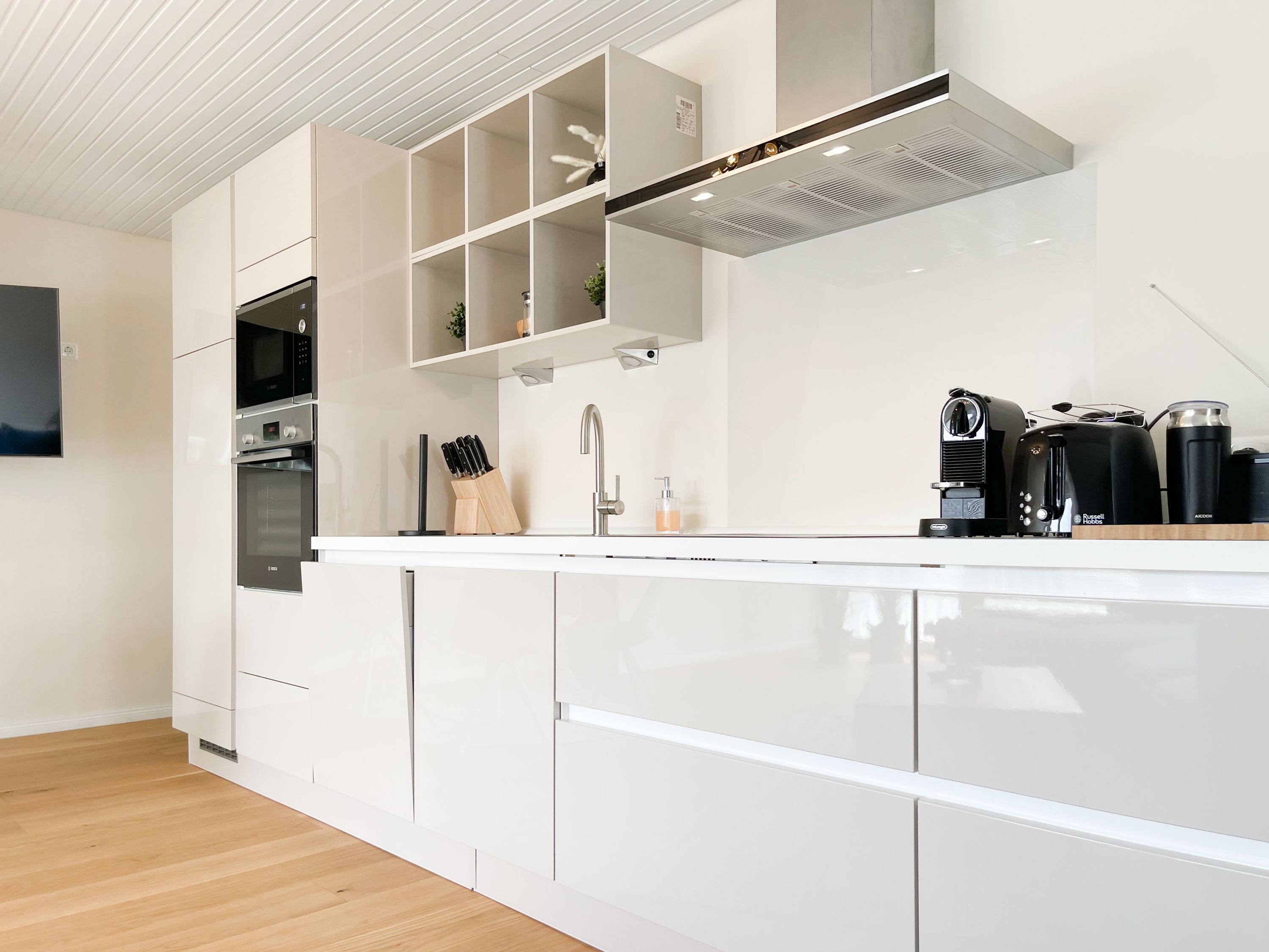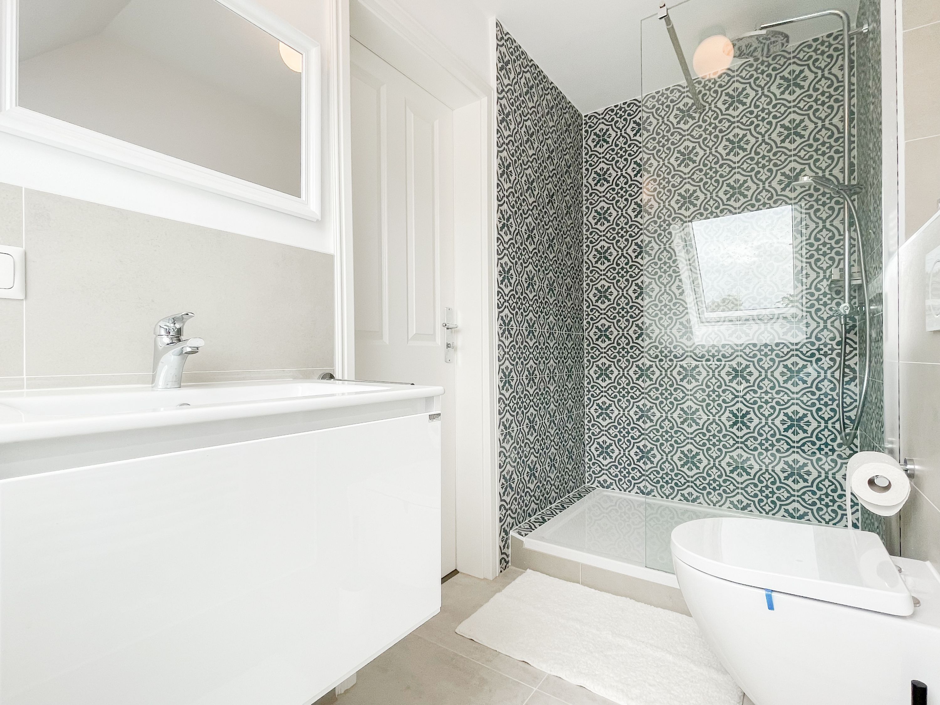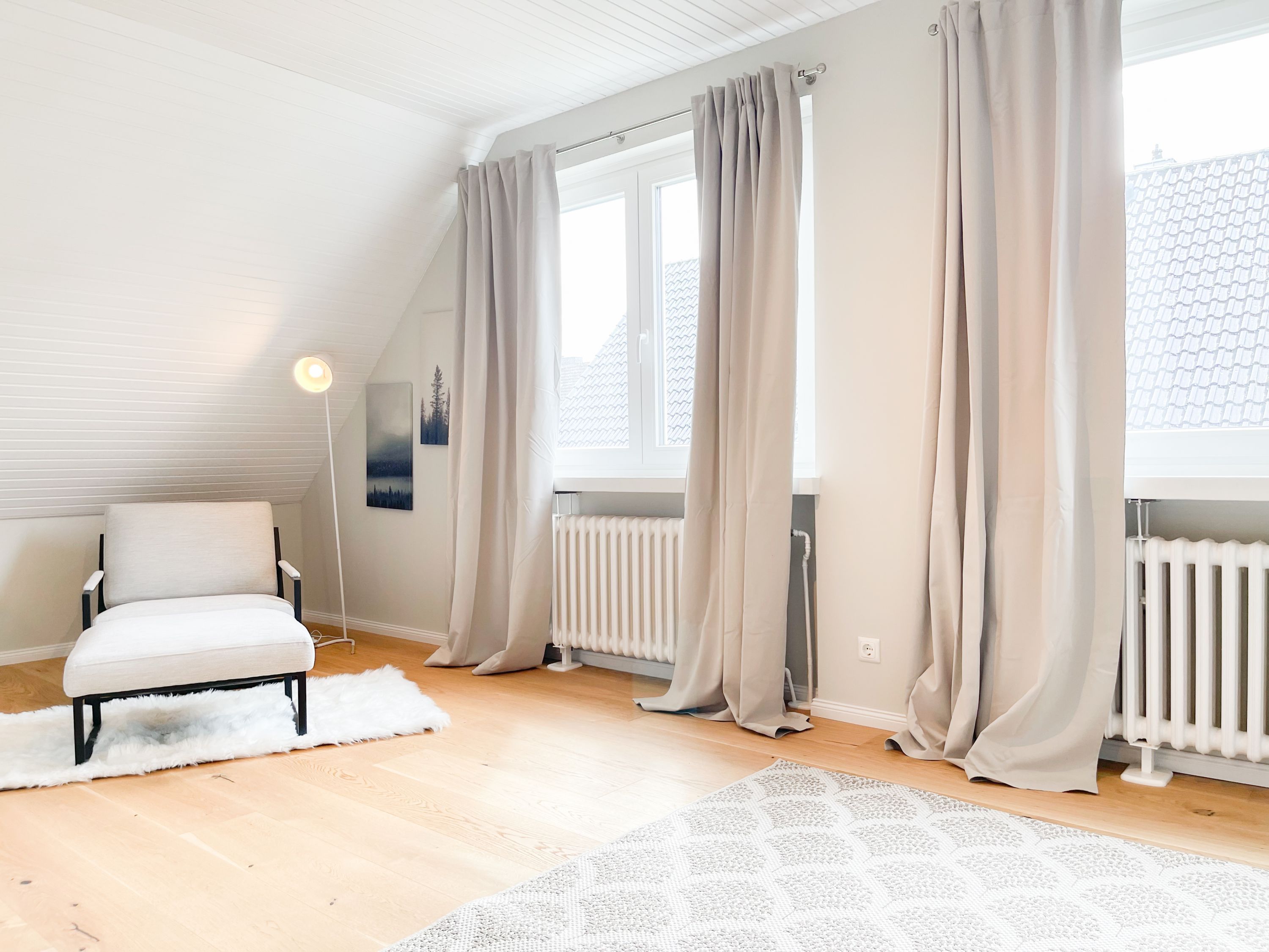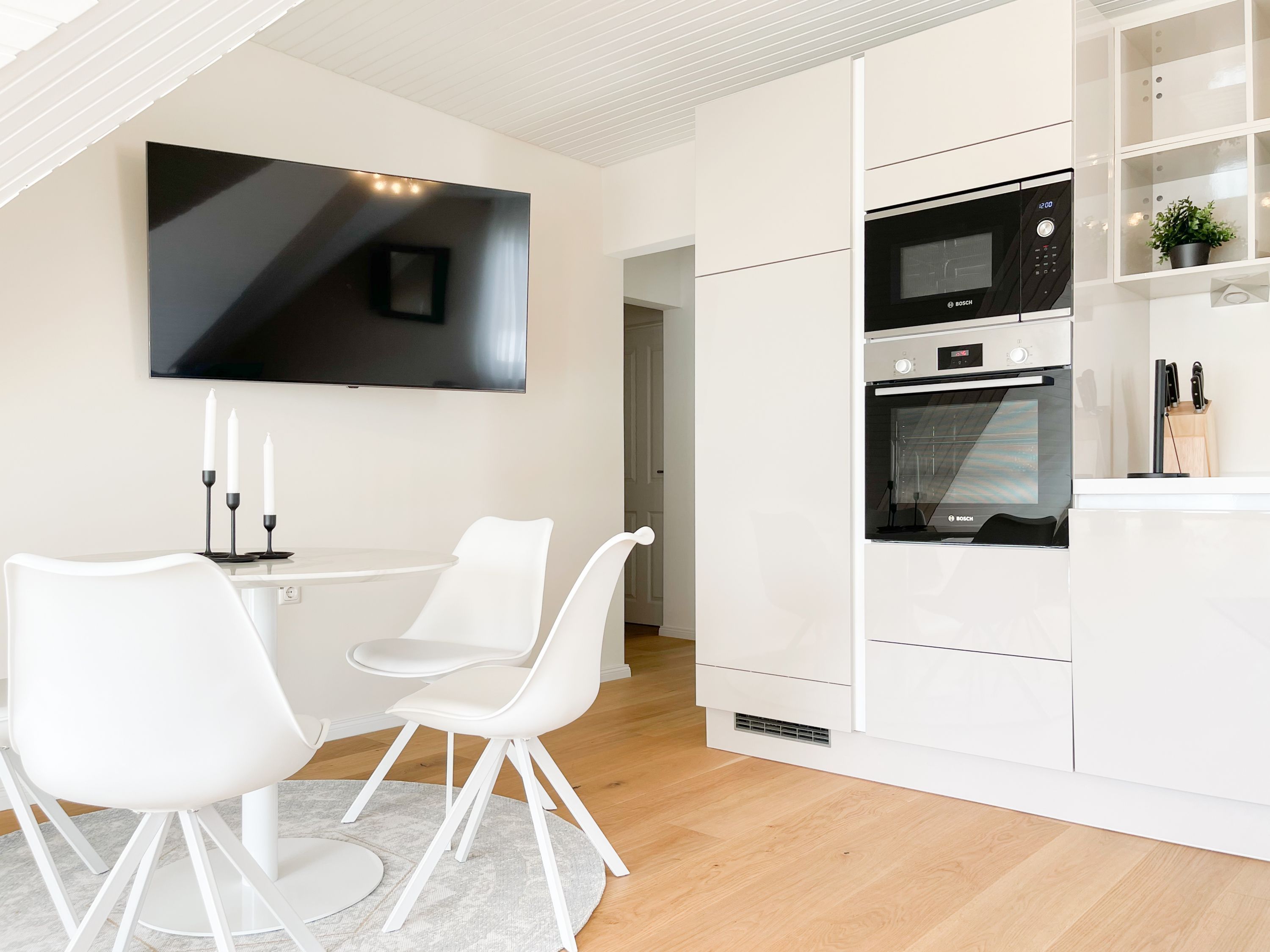 Es erwarten Sie großzügige, sonnige Räumlichkeiten zum wohlfühlen, aufwendig renoviert und geschmackvoll eingerichtet. Mittelpunkt bildet der lichtdurchflutete Wohnbereich, der mit einer XL Sofalandschaft und Smart TV ausgestattet ist. Die integrierte Wohnküche ist bestens ausgestattet und lädt zum gemeinsamen Kochen ein und der anschießende Essbereich ist für 4 Personen eingerichtet. Vom Wohnbereich gelangt man ins erste Schlafzimmer, das mit einem Doppelbett (140x200) ausgestattet ist und über ein modernes Duschbad ensuite verfügt, in dem auch ein kombinierter Waschtrockner untergebracht ist. Das zweite großzügig angelegte Schlafzimmer ist mit einem Doppelbett, Smart TV, Schreibtisch und einer gemütlichen Leseecke eingerichtet. Das moderne Duschbad mit reichlich Tageslicht befindet sich direkt neben dem Schlafzimmer. Es steht ein weiterer Raum mit einem Schreibtisch und einem Schlafsessel zur Verfügung, das bestens als Home Office genutzt werden kann. Zur Wohnung gehört eine eigene Terrasse in Südwestausrichtung, die mit Gartenmöbeln ausgestattet ist. Sie liegt auf der gegenüberliegenden Seite des Hauseinganges, d.h. es besteht keine direkte Verbindung zur Wohnung. 1 Außenstellplatz befindet sich auf dem Grundstück. Fahrräder können sicher und trocken im Holzhaus auf dem Grundstück untergestellt werden.