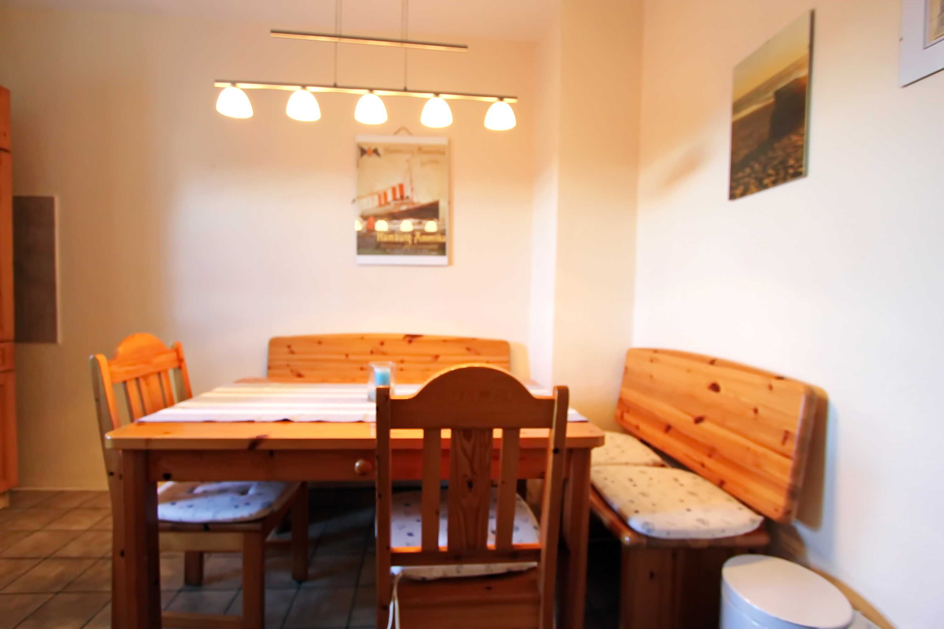 2 Zimmer Appartement im Herzen von Hörnum im 1.OG mit ca. 55m² für bis zu 4 Personen; ein Wohnraum mit Doppelschlafcouch, 2 Sessel, Tisch, Sideboard, Sat-TV, Zugang zum Südbalkon; ein separater Schlafraum mit Doppelbett und Kleiderschrank; Wannenbad/WC; Flur mit Garderobe; anrufbarer Festnetzanschluss; separate Einbauküche mit Ceranherd, Backofen, Mikrowelle, Kühlschrank mit kleinem Gefrierfach, Eckbank, Tisch und Stühle bieten ausreichend Platz zum Essen und Klönen. Ein Kinderreisebett ist im Appartement vorhanden. Zum Appartement gehört ein PKW-Stellplatz. Das Rauchen sowie die Tierhaltung sind nicht gestattet!