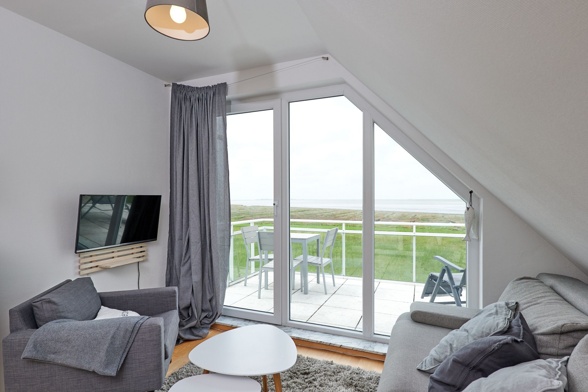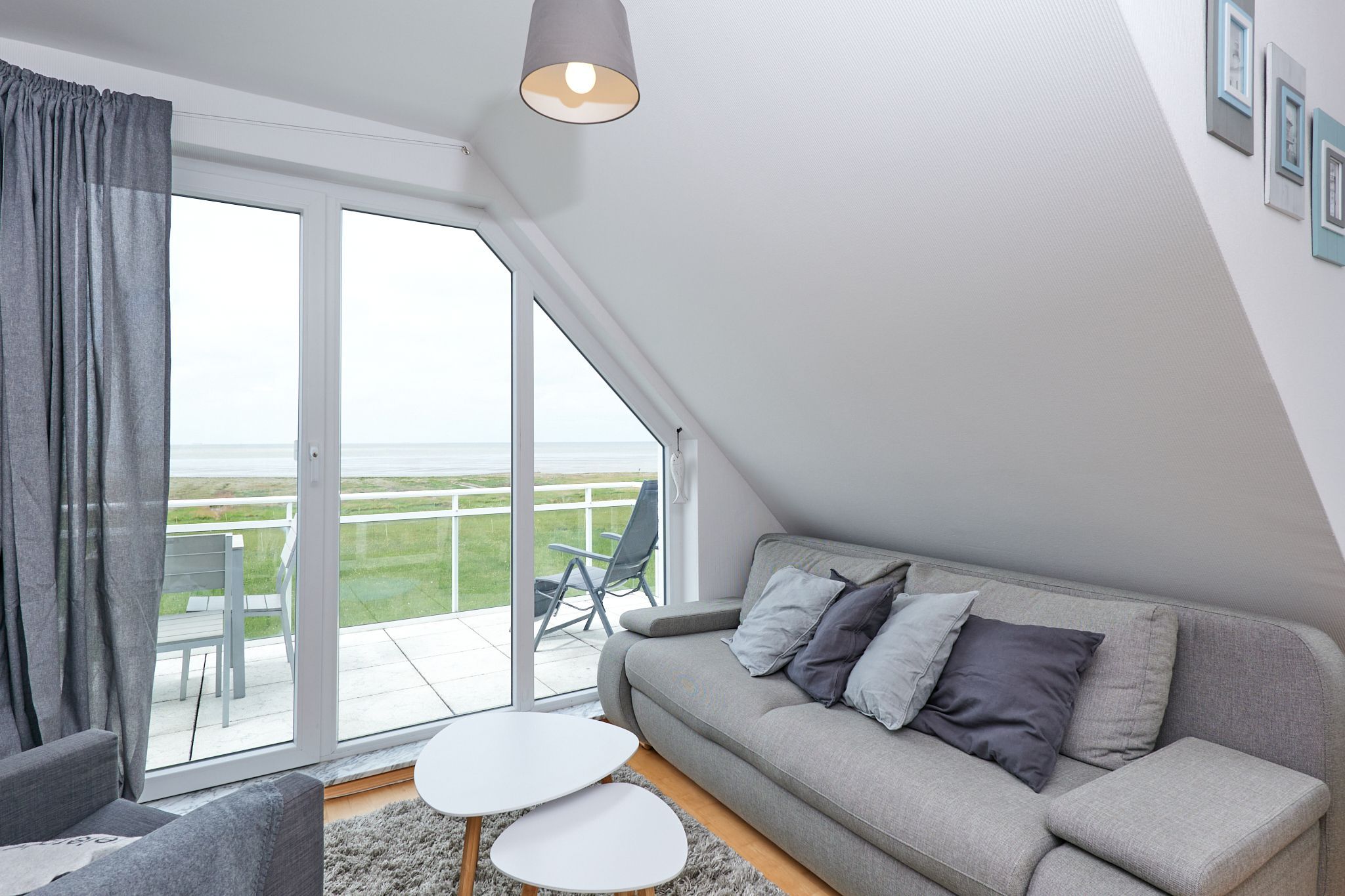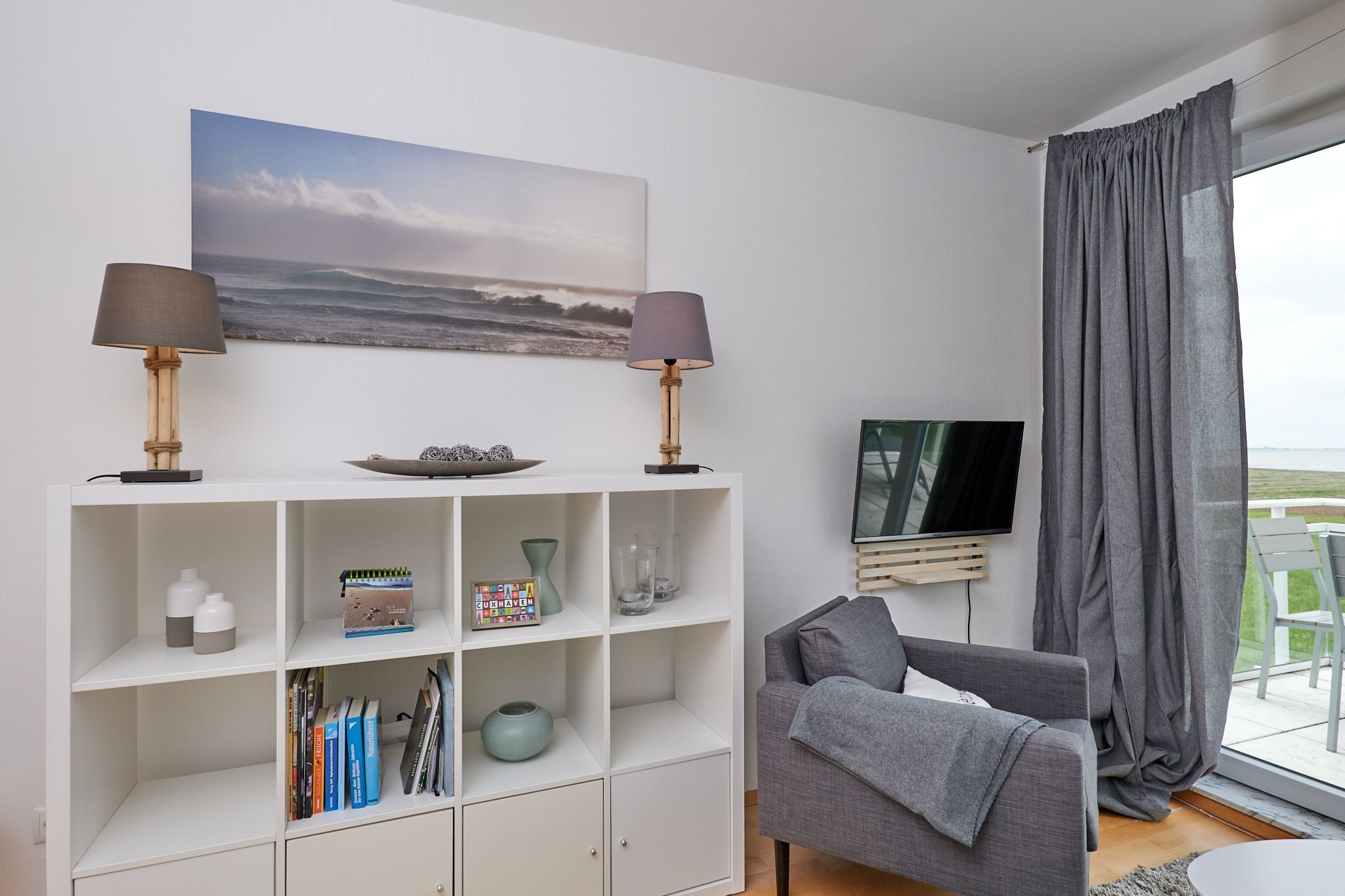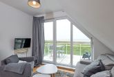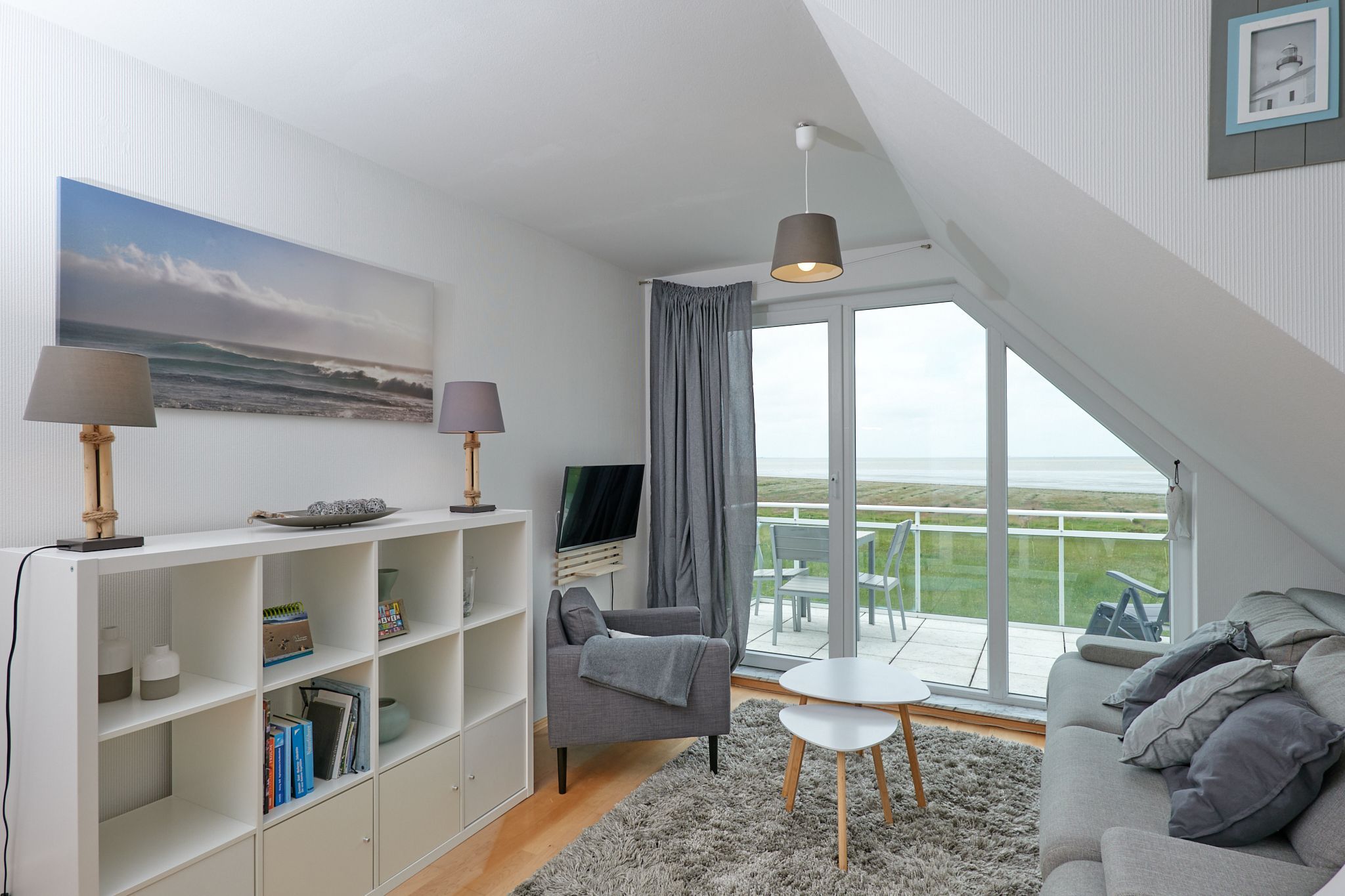 Genießen Sie den Komfort eines kombinierten Wohn- und Schlafzimmers mit einer hochwertigen Doppelbettcouch mit einem Topper von Emma und Parkettboden. Entspannen Sie in der modernen Dusche/WC und genießen Sie Ihre Lieblingssendungen auf dem SAT-TV. Dank leistungsfähigem WLAN mit 250 Mbit/s Download sind Sie stets online. Die voll ausgestattete Küchenzeile mit Geschirrspüler, Kaffeepadmaschine und Mikrowelle lässt keine Wünsche offen. Ein kleiner Flur und ein Abstellraum bieten zusätzlichen Komfort. Der Balkon mit Panoramablick auf das Weltnaturerbe Wattenmeer lädt zum Verweilen ein. Nutzen Sie den Personenaufzug und die Fahrradabstellmöglichkeiten. Haustiere und Rauchen sind nicht gestattet. Ein reservierter Pkw-Stellplatz #6 am Haus ist für Sie vorhanden.