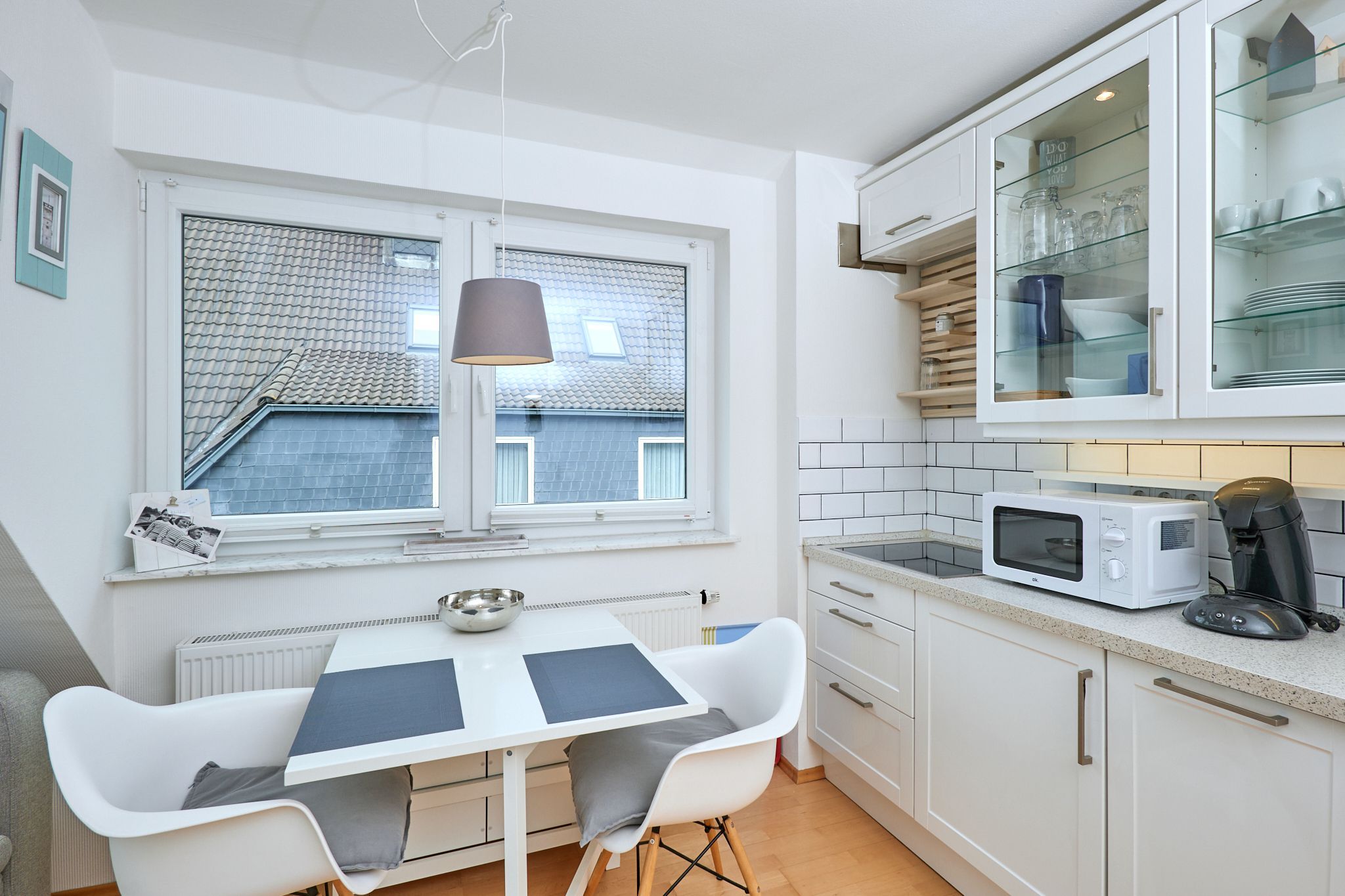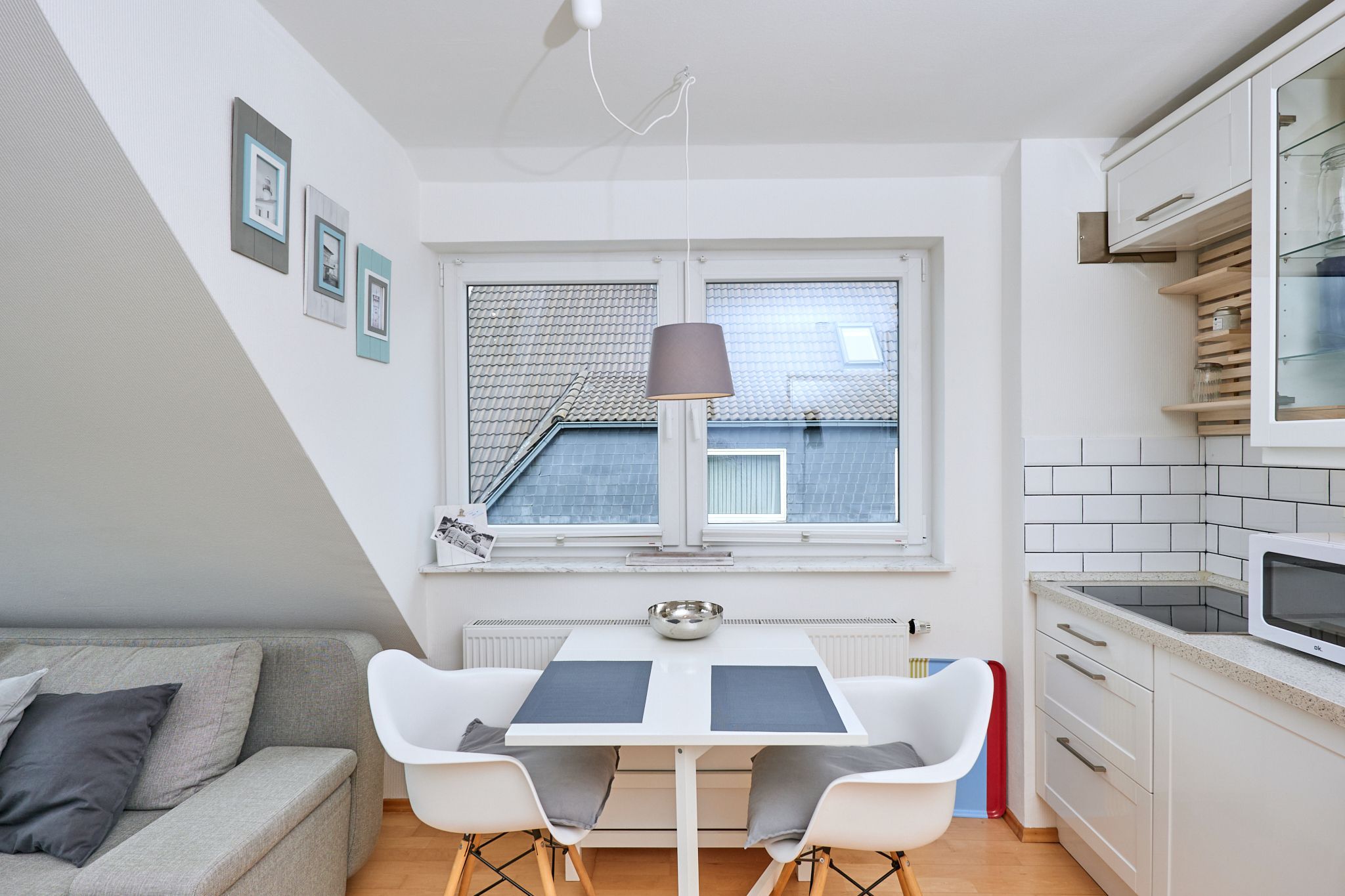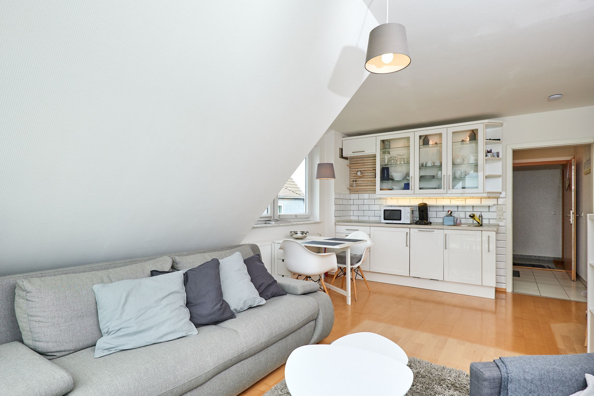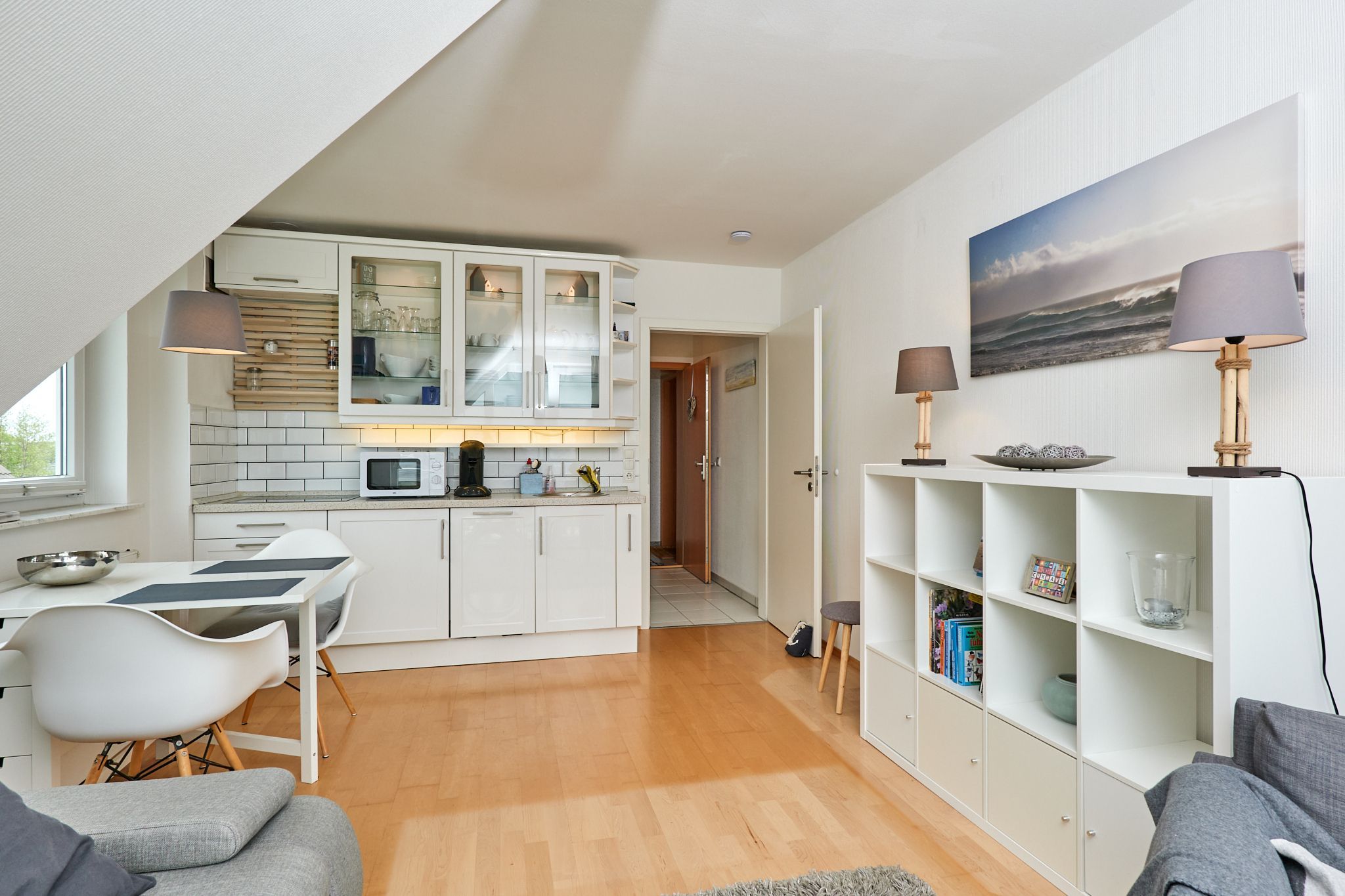 Genießen Sie den Komfort eines kombinierten Wohn- und Schlafzimmers mit einer hochwertigen Doppelbettcouch mit einem Topper von Emma und Parkettboden. Entspannen Sie in der modernen Dusche/WC und genießen Sie Ihre Lieblingssendungen auf dem SAT-TV. Dank leistungsfähigem WLAN mit 250 Mbit/s Download sind Sie stets online. Die voll ausgestattete Küchenzeile mit Geschirrspüler, Kaffeepadmaschine und Mikrowelle lässt keine Wünsche offen. Ein kleiner Flur und ein Abstellraum bieten zusätzlichen Komfort. Der Balkon mit Panoramablick auf das Weltnaturerbe Wattenmeer lädt zum Verweilen ein. Nutzen Sie den Personenaufzug und die Fahrradabstellmöglichkeiten. Haustiere und Rauchen sind nicht gestattet. Ein reservierter Pkw-Stellplatz #6 am Haus ist für Sie vorhanden.
