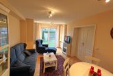 Der Wohn-/Essbereich ist gemütlich und modern eingerichtet und mit LCD-Fernseher und Radio versehen. Von hier aus gelangen Sie direkt auf die Terrasse ausgestattet mit Gartenmöbeln