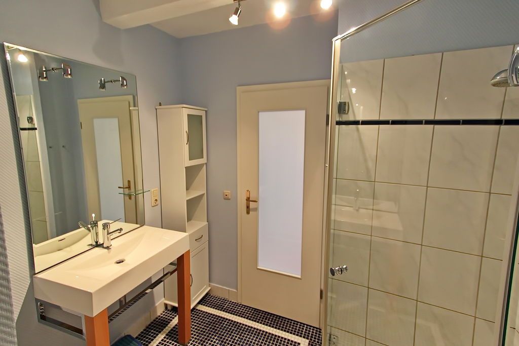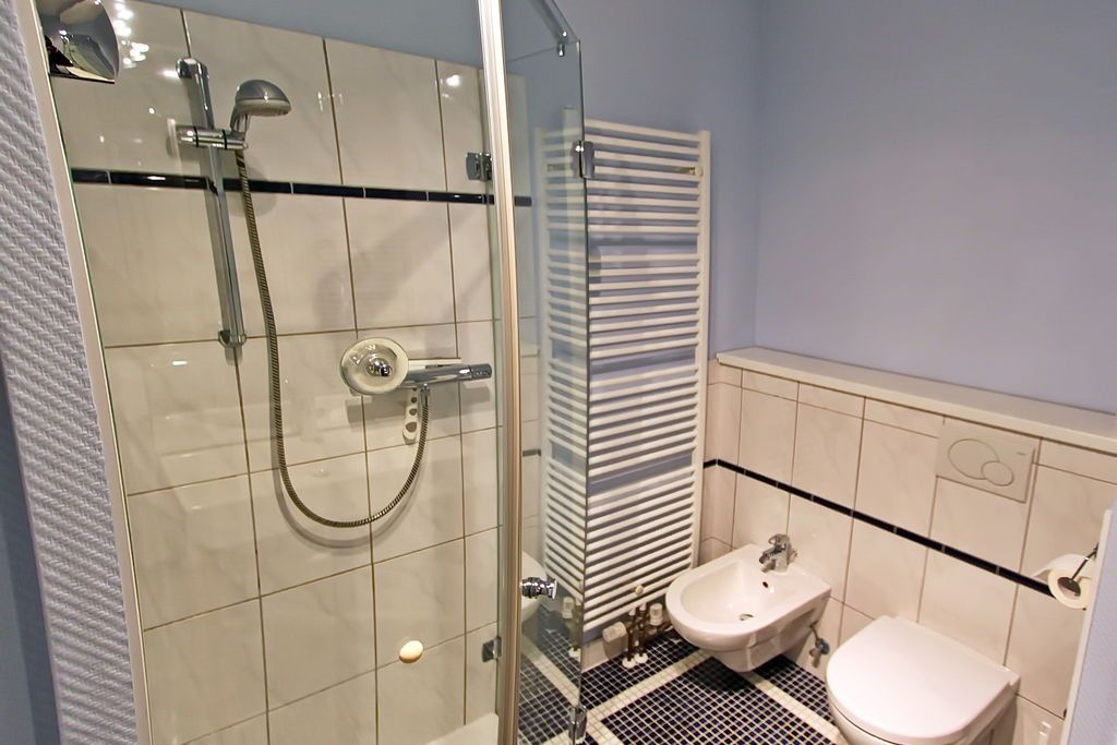 Moderne Sanitär-Einrichtungen mit bodengleicher Dusche und ein Bidet