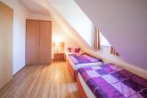 Ferienhaus bis zu 6 Personen mit drei Schlafräumen, ca. 80 m², ein Schlafzimmer mit Doppelbett und ein Schlafzimmer mit zwei getrennten Betten und im ausgebauten Dachgeschoss ein Schlafzimmer mit zwei getrennten Betten, Wohnraum mit bequemer Couchgarnitur, voll ausgestatteter Küchenbereich mit Geschirrspüler und Mikrowelle, separater Essplatz, SAT-TV, Blu-ray-DVD-Player, Mini-HiFi-Anlage mit CD-Player und Terrasse, zwei Duschen/WC, Waschmaschine.