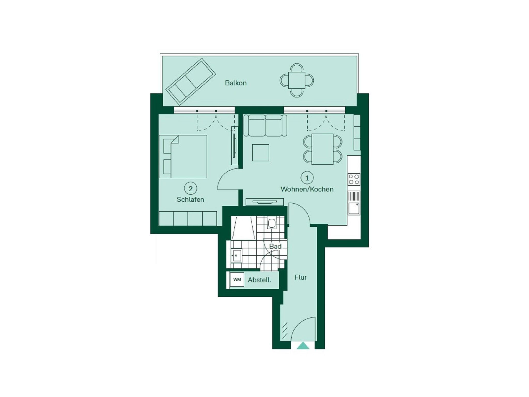 Der offen gestaltete Wohnbereich ist mit einem Boxspringsofa, Smart-TV und Musikanlage ausgestattet. Im Winter sorgt der Kamin für eine wohlige Wärme. Sie haben vom Wohnzimmer aus Zugang zum Südbalkon. Der mit Sitzgelegenheiten und einer Sonnenliege ausgestattete Balkon bietet mit traumhaften Ausblicken in die Parkanlage einen wunderschönen Ort, um Ihre Mahlzeiten zu genießen und die Aussicht zu bewundern.