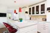 Die wunderbar gelegene Doppelhaushälfte ist komplett im Long Island-Stil gehalten, eingebettet in einen riesigen eingewachsenen Garten. Das Hideaway präsentiert sich mit gemütlichen Sofas zum Relaxen vor dem Deko-Kamin, sowie einer offenen Küche mit modernem Landhausflair. Kochinsel, Sitzplätze am Tresen und ein XXL-Esstisch bieten alles Nötige für gesellige Abende mit Familie und Freunden. Exklusive Einbauten, besondere Dekorationen und Bilder, panoramaähnliche Fensterfronten und Terrassentüren, die viel Licht herein lassen, sowie Terrassen nach Süden und Westen bringen pures Urlaubsfeeling. Ebenfalls auf dieser Ebene ein Gäste-WC, sowie ein Abstellraum. Im Obergeschoss erwarten Sie drei Doppelschlafzimmer mit Boxspringbetten, eines mit Duschbad en suite, TV und begehbarem Kleiderschrank, die beiden weiteren Schlafzimmer, eines davon mit TV, haben beide einen herrlichen Gartenblick. Das i-Tüpfelchen: Ein exklusives, modernes Wellness-Bad mit Dusche, freistehender Wanne, Sauna und Blick ins Grüne. Ein rundum hyggeliges Urlaubszuhause!
