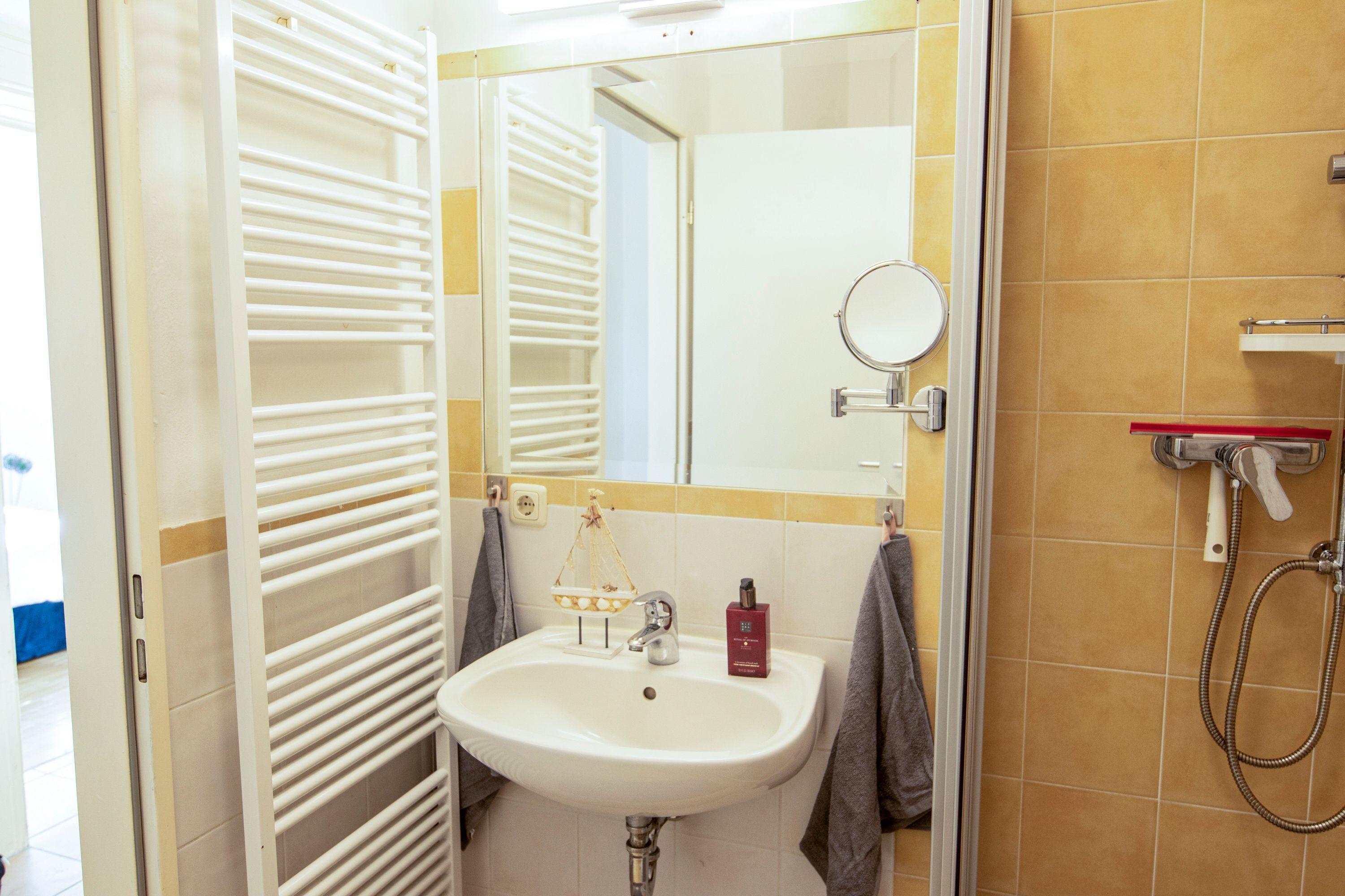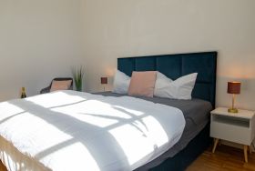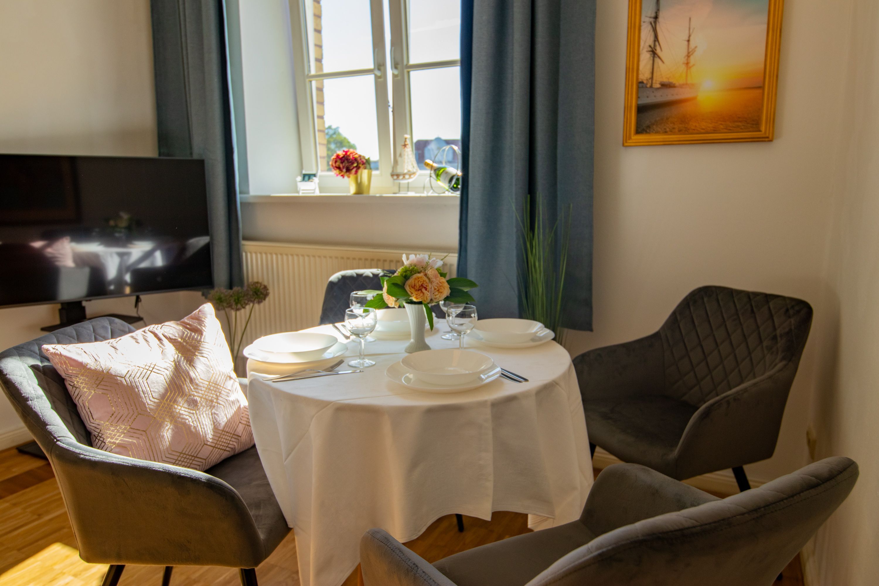 Das Altstadt-Studio 3 befindet sich im 1. OG am Neuen Markt in der Stralsunder Altstadt. Über den Fahrstuhl erreichen sie das moderne, helle Studio mit altbaustypischen hohen Decken. Hier stehen ihnen ein Schlafzimmer, ein Wohnzimmer mit Schlafsofa (160x200), TV und Essbereich, eine Küche und ein Bad mit Dusche zur Verfügung. In der Küche finden sie neben Backofen, Herd, Kühlschrank und Mikrowelle auch Kochutensilien für den täglichen Bedarf. Das Schlafzimmer ist mit einem Doppelbett (180x200) und einem Deckenventilator ausgestattet.