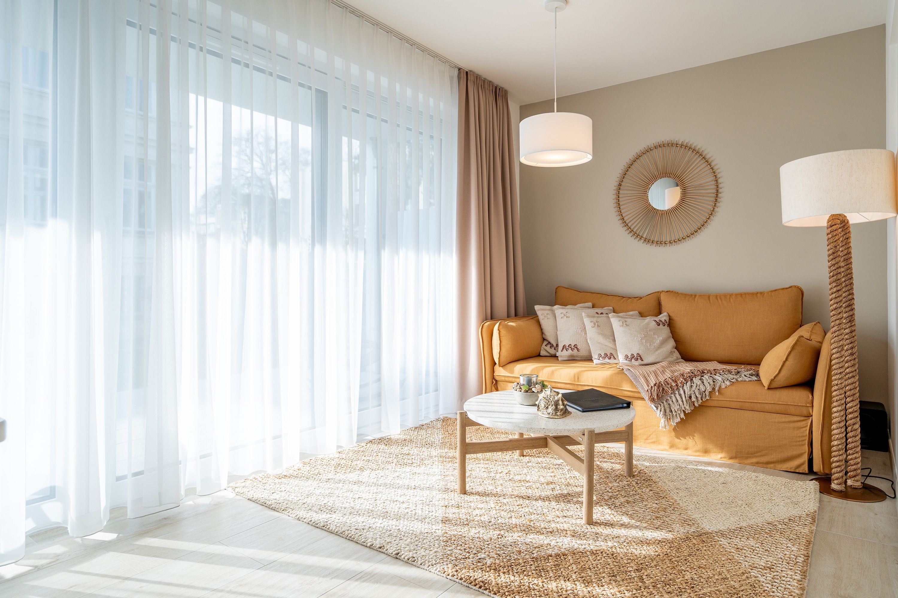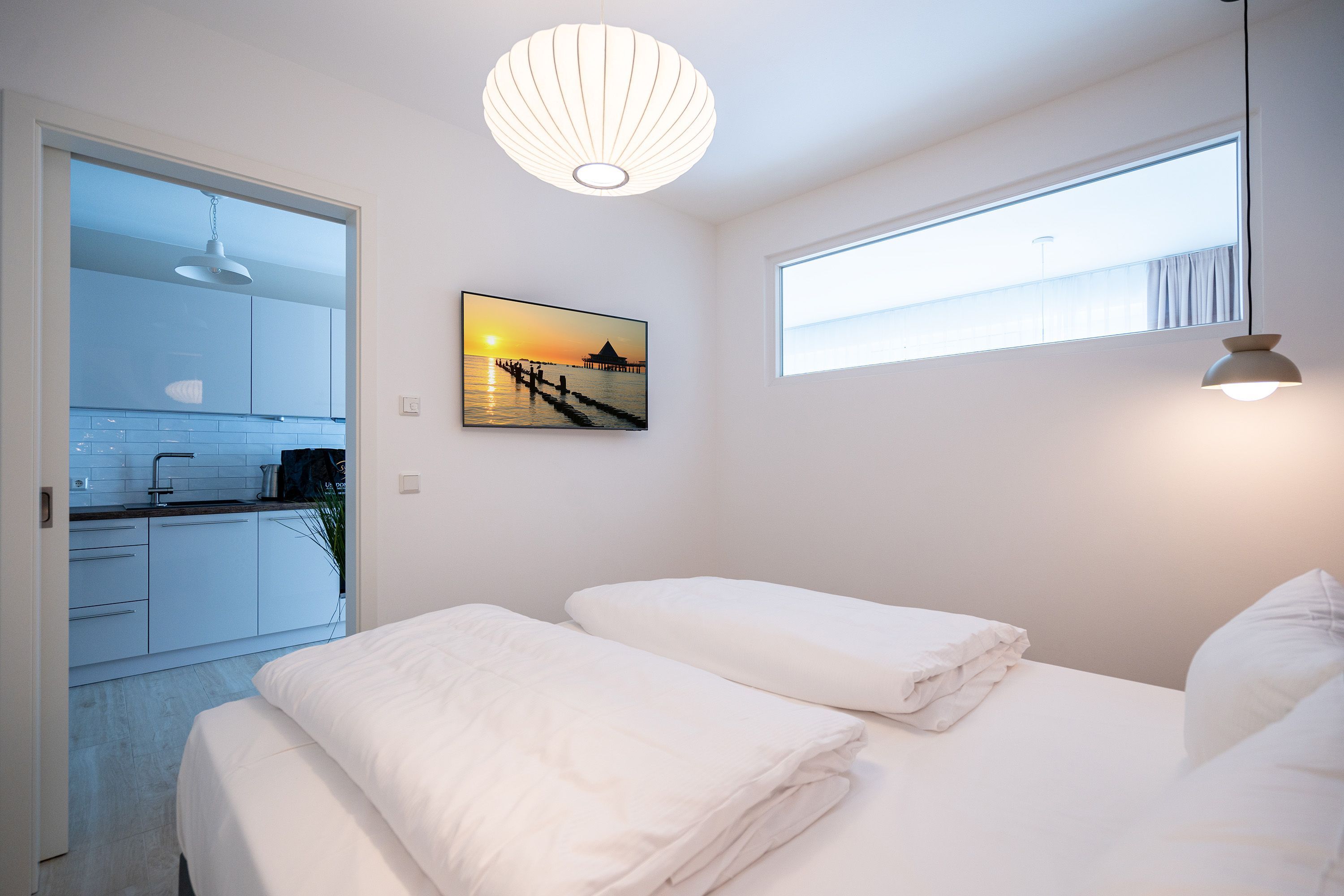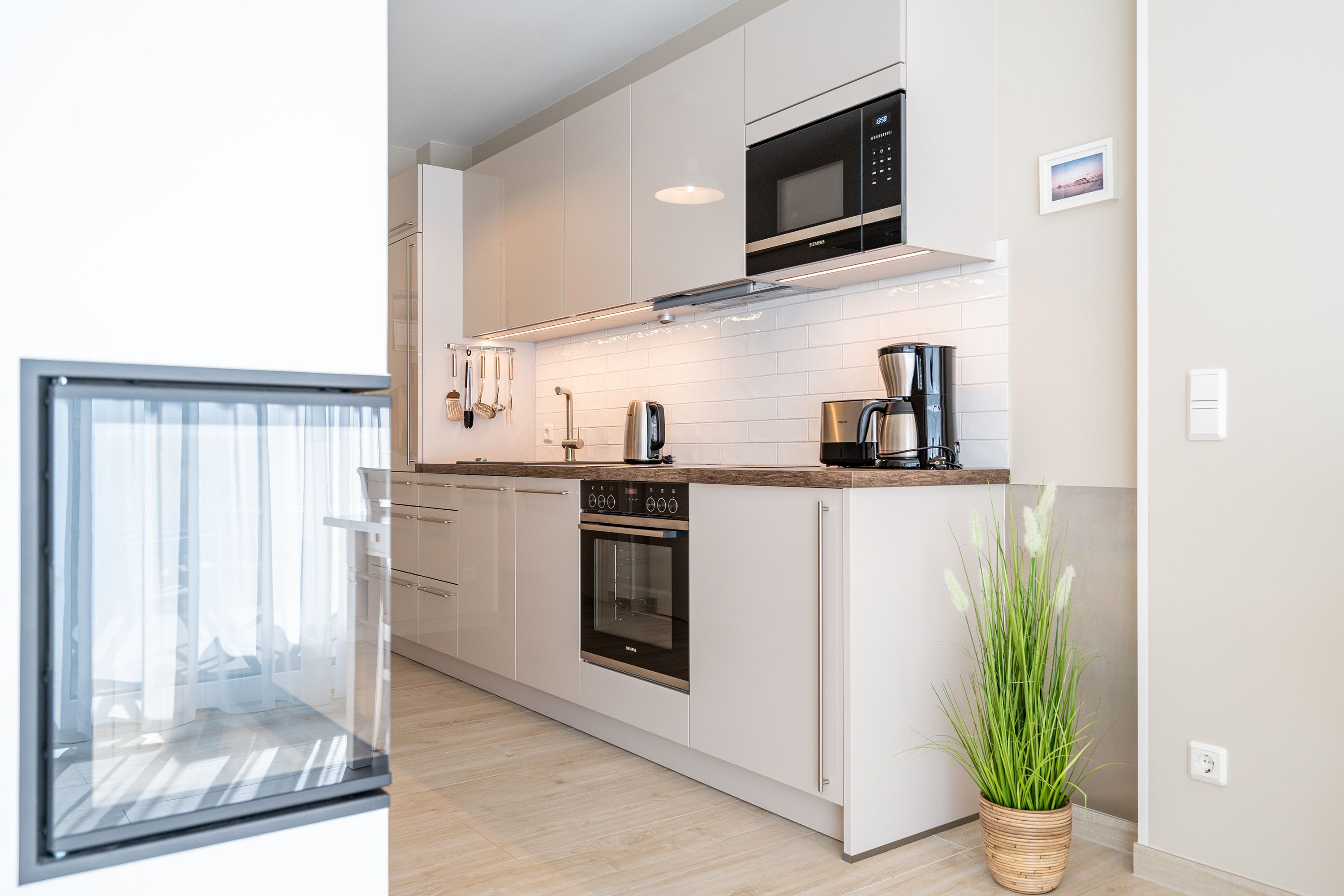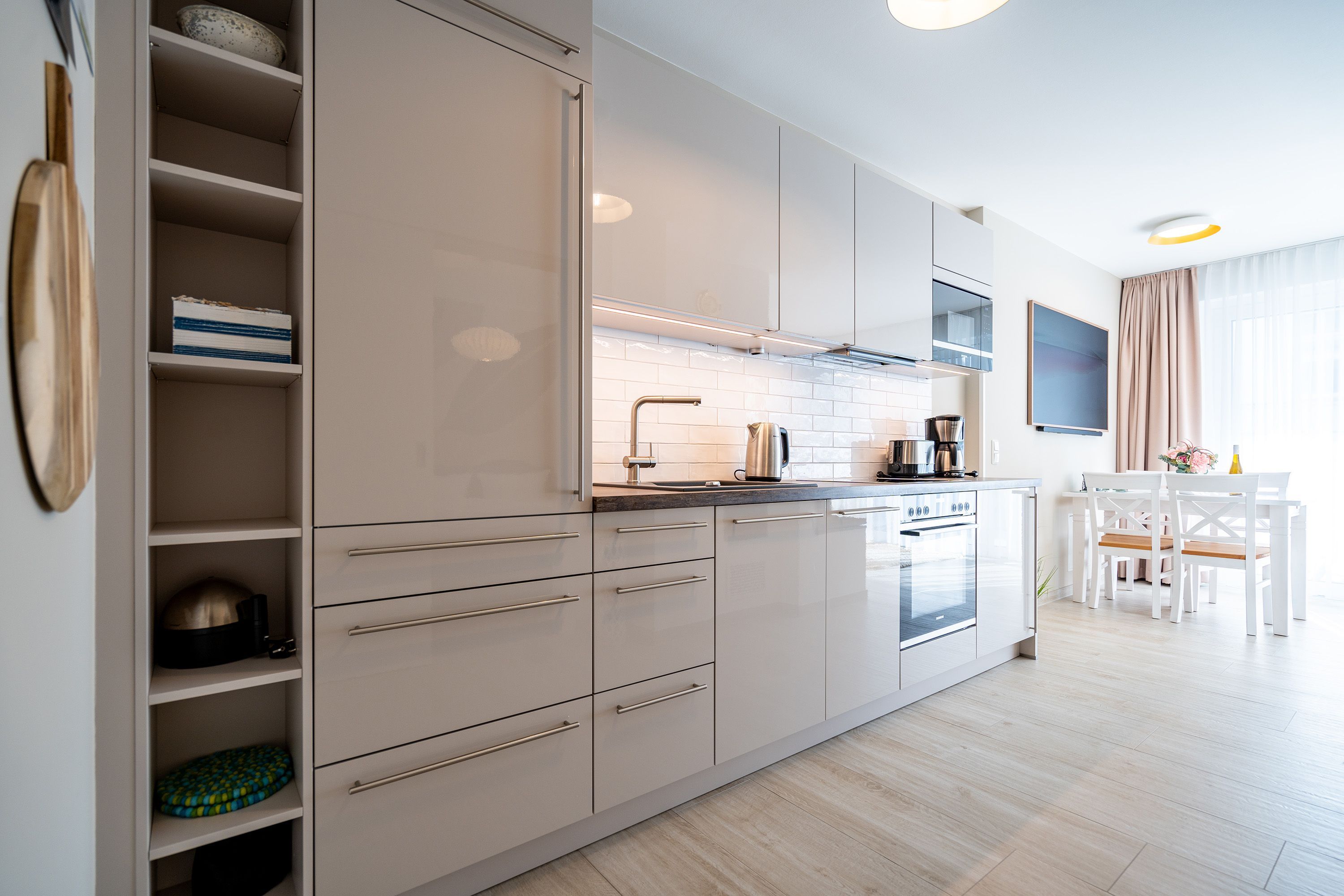 Sie reisen zu zweit oder als kleine Familie ans Meer? Dann verbringen Sie Ihren Urlaub im neuen Quartier am Strand in Seebad Heringsdorf. Das im Juni 2023 fertiggestellte 51 Quadratmeter große 2-Raum-Appartement bietet alles, was Sie für einen erholsamen Urlaub für zwei Erwachsene und ein Kind (bis 15 Jahre) benötigen. Ideal gelegen zwischen Ostsee (100m entfernt) und Ortskern (1.000m) können Sie tagsüber zwischen Sonnenbad und Stadtbummel entscheiden. Auf der 15 Quadratmeter großen Südwest-Terrasse lässt es sich tagsüber auf der Sonnenliege oder am Tisch mit drei Stühlen aushalten. Am Abend warten im Wohnbereich eine Sitzgruppe, die auch als Aufbettungsmöglichkeit für eine dritte Person dient, sowie ein 65-Zoll Flat-TV und ein Kamin darauf, es Ihnen gemütlich zu machen. Der offene Koch-und Essbereich ist umfangreich ausgestattet (Backofen, Induktionskochfeld, Mikrowelle, Spülmaschine, Kühlschrank mit Gefrierfach und Kleinküchengeräte) und bietet jeglichen Komfort beim Zubereiten Ihrer Speisen. Gemeinsame Mahlzeiten lassen sich am Esstisch für vier Personen einnehmen. Verzichten Sie auch im Urlaub nicht auf Ihren erholsamen Schlaf und machen Sie es sich im bequemen Boxspringbett (1,80m x 2,00m) gemütlich. Ein Flat-TV und Stauraum für Ihre Urlaubsgarderobe runden den innenliegenden Schlafbereich ab. Das Highlight bildet die Finnische Sauna, die in das Duschbad mit Waschtisch und WC integriert ist und auch an kühleren Tagen für wohlige Wärme sorgt. Für Ihren PKW steht ein Stellplatz in der hauseigenen Tiefgarage bereit. Bei Ihrer Anreise sind außerdem die Betten bereits bezogen und Handtücher liegen für Sie parat. Kostenfreies W-Lan sowie ein wohnungseigener Abstellraum direkt hinter Ihrem PKW-Stellplatz erleichtern das Abstellen Ihrer Fahrräder. Für den Tag am Strand steht Ihnen in der Zeit von Mitte Mai bis September (je nach Witterung) ein Strandkorb zur Verfügung.