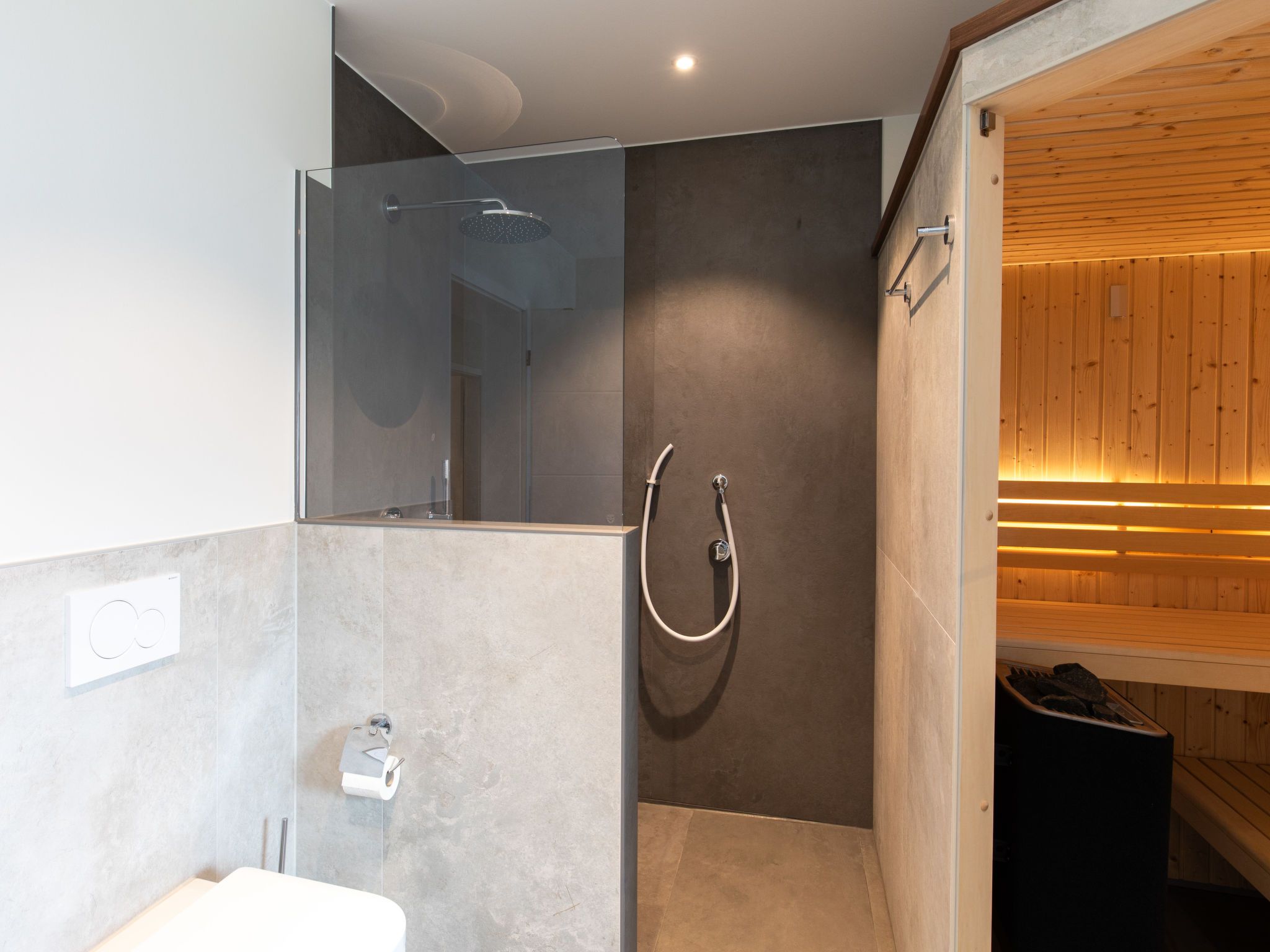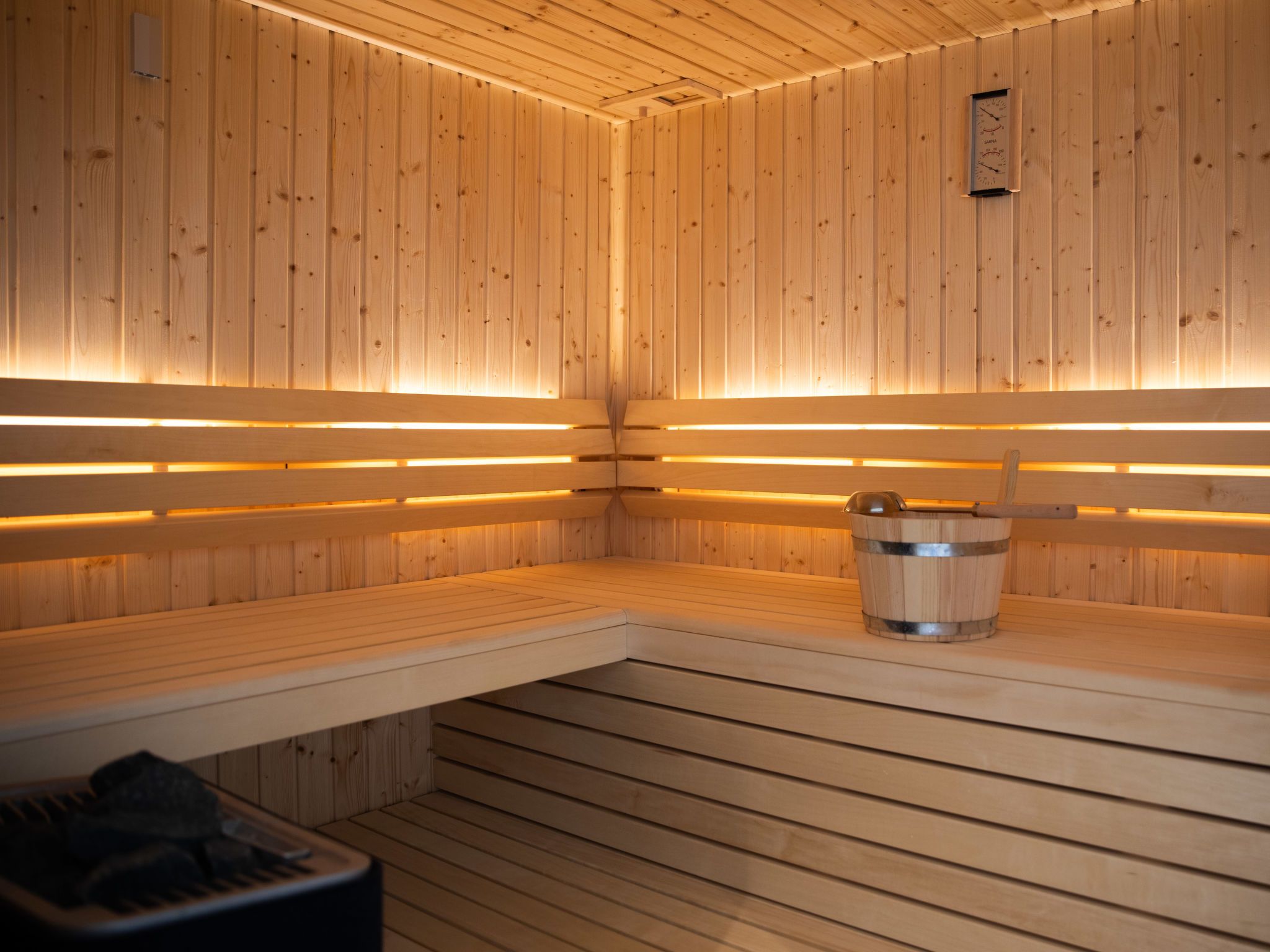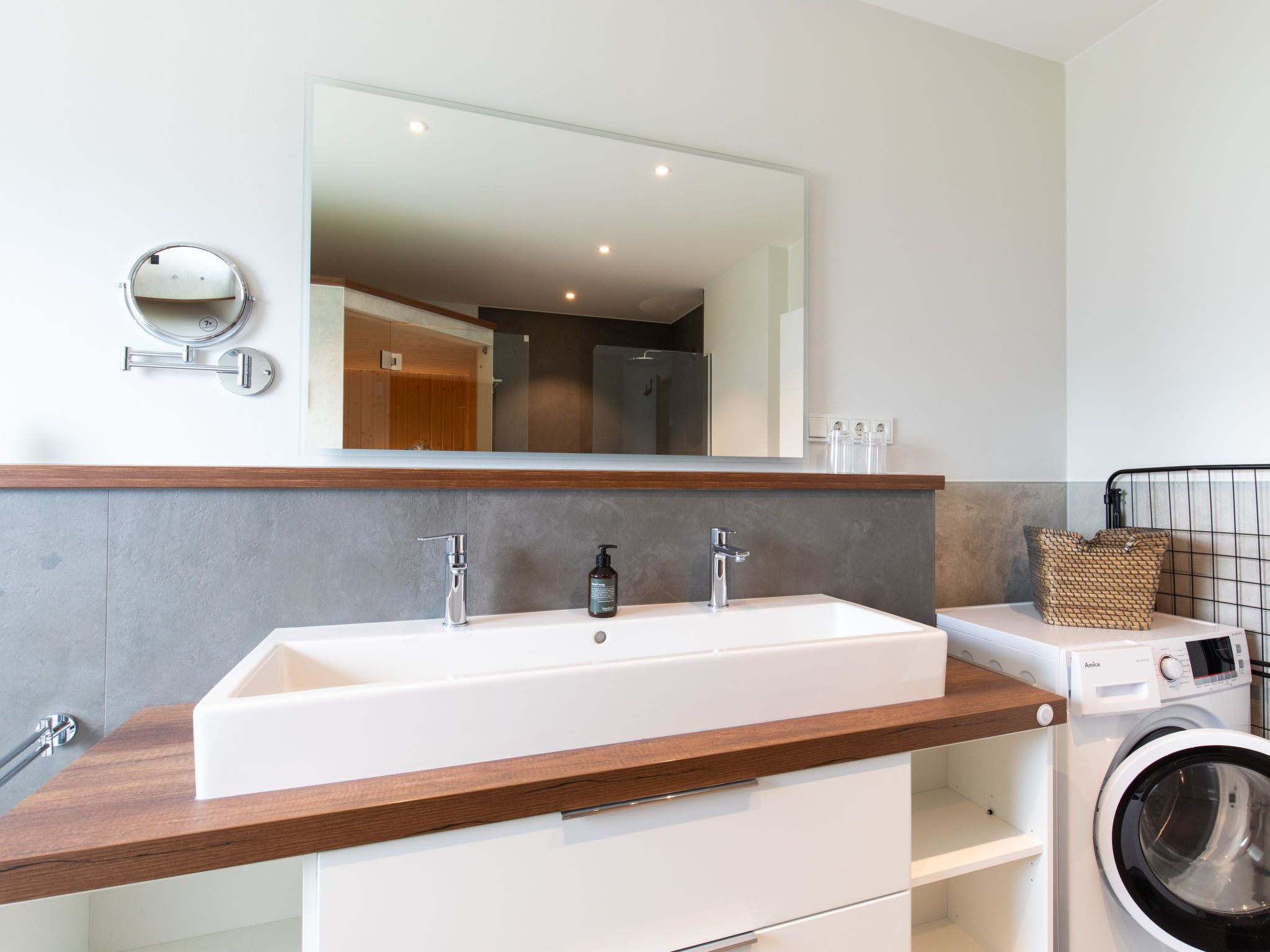 8-Zimmer-Haus 192 m2 auf 2 Stockwerken. Geräumig und hell, komfortabel und modern eingerichtet: grosses Wohn-/Esszimmer mit Sat-TV (Flachbildschirm). Ausgang zum Garten. 2 Zimmer, jedes Zimmer mit 1 Doppelbett (180 cm, Länge 200 cm), Sat-TV (Flachbildschirm). 1 Zimmer mit 1 x 2 Etagenbetten (90 cm, Länge 200 cm). Offene Küche (Backofen, Geschirrspüler, 4 Glaskeramikplatten, Toaster, Wasserkocher, Mikrowelle, elektrische Kaffeemaschine, Kochinsel). Sep. WC, Bad/Dusche/WC, Doppelwaschbecken, Sauna. G-Heizung. Obergeschoss: grosses Wohn-/Esszimmer mit Sat-TV (Flachbildschirm). Ausgang zum Balkon. 2 Zimmer, jedes Zimmer mit 1 Doppelbett (180 cm, Länge 200 cm), Sat-TV (Flachbildschirm). 1 Zimmer mit 1 Bett (90 cm, Länge 200 cm). Offene Küche (Backofen, Geschirrspüler, 4 Glaskeramikplatten, Toaster, Wasserkocher, Mikrowelle, elektrische Kaffeemaschine, Kochinsel). Sep. WC, Bad/Dusche/WC, Doppelwaschbecken, Sauna. Grosser Balkon 30 m2, grosse Terrasse 30 m2. Terrassenmöbel, Balkonmöbel. Zur Verfügung: Waschmaschine, Kinderhochstuhl, Babybett. Internet (Wireless LAN, gratis). Bitte beachten: Nichtraucher-Unterkunft. Buchungen sind nur zu touristischen Zwecken erlaubt.