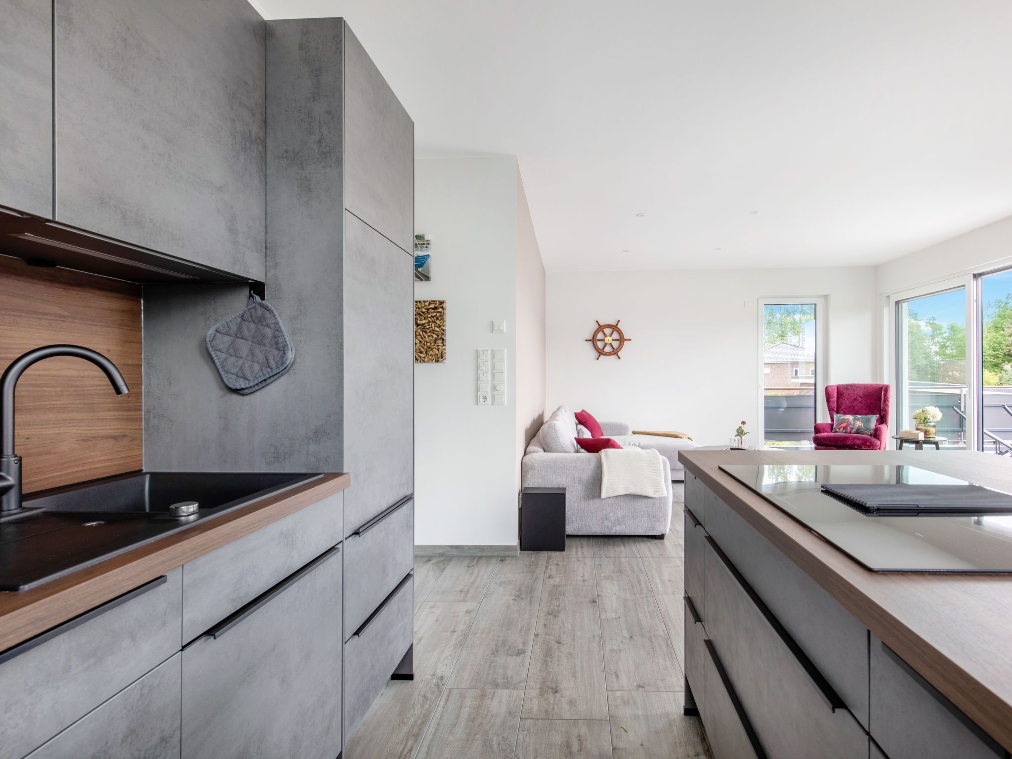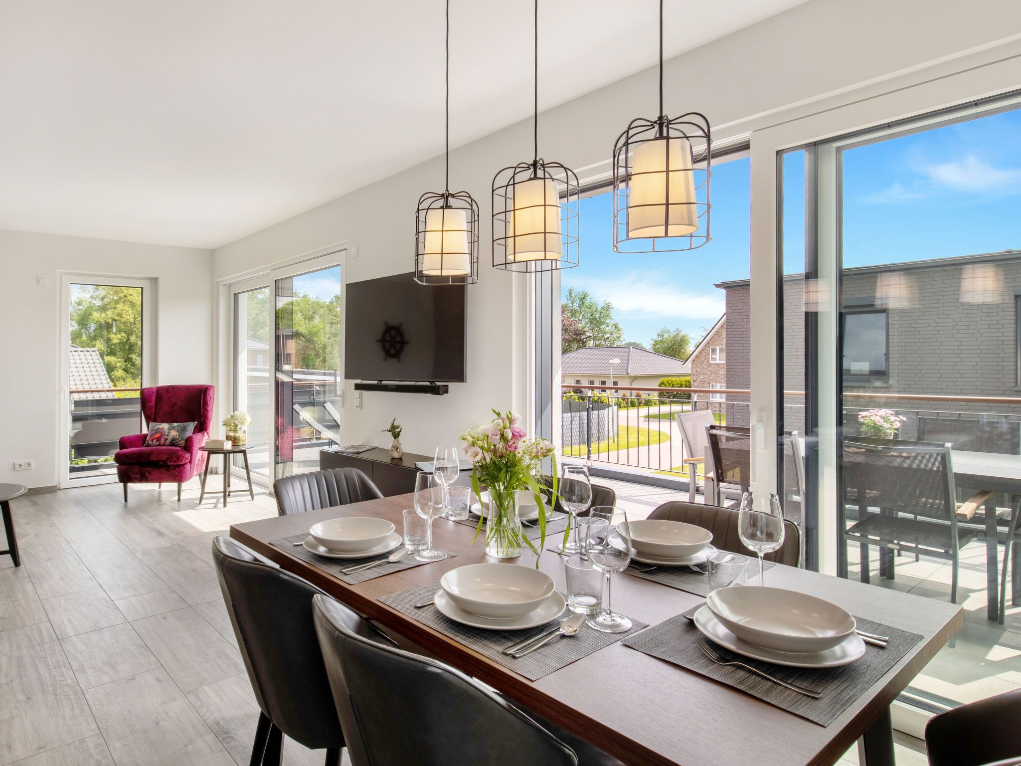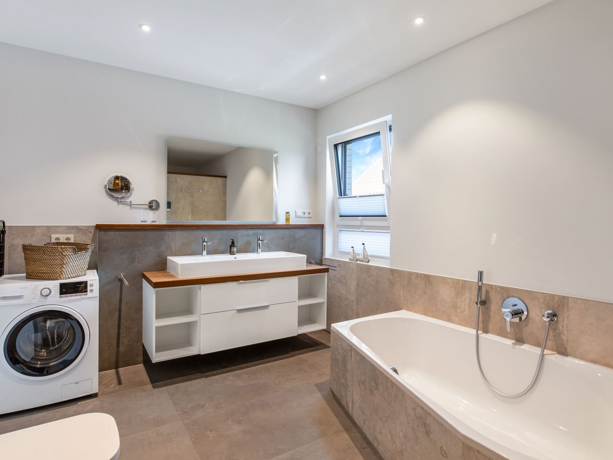 8-Zimmer-Haus 192 m2 auf 2 Stockwerken. Geräumig und hell, komfortabel und modern eingerichtet: grosses Wohn-/Esszimmer mit Sat-TV (Flachbildschirm). Ausgang zum Garten. 2 Zimmer, jedes Zimmer mit 1 Doppelbett (180 cm, Länge 200 cm), Sat-TV (Flachbildschirm). 1 Zimmer mit 1 x 2 Etagenbetten (90 cm, Länge 200 cm). Offene Küche (Backofen, Geschirrspüler, 4 Glaskeramikplatten, Toaster, Wasserkocher, Mikrowelle, elektrische Kaffeemaschine, Kochinsel). Sep. WC, Bad/Dusche/WC, Doppelwaschbecken, Sauna. G-Heizung. Obergeschoss: grosses Wohn-/Esszimmer mit Sat-TV (Flachbildschirm). Ausgang zum Balkon. 2 Zimmer, jedes Zimmer mit 1 Doppelbett (180 cm, Länge 200 cm), Sat-TV (Flachbildschirm). 1 Zimmer mit 1 Bett (90 cm, Länge 200 cm). Offene Küche (Backofen, Geschirrspüler, 4 Glaskeramikplatten, Toaster, Wasserkocher, Mikrowelle, elektrische Kaffeemaschine, Kochinsel). Sep. WC, Bad/Dusche/WC, Doppelwaschbecken, Sauna. Grosser Balkon 30 m2, grosse Terrasse 30 m2. Terrassenmöbel, Balkonmöbel. Zur Verfügung: Waschmaschine, Kinderhochstuhl, Babybett. Internet (Wireless LAN, gratis). Bitte beachten: Nichtraucher-Unterkunft. Buchungen sind nur zu touristischen Zwecken erlaubt.