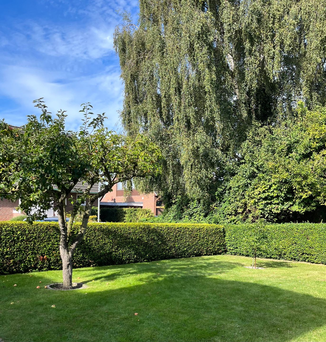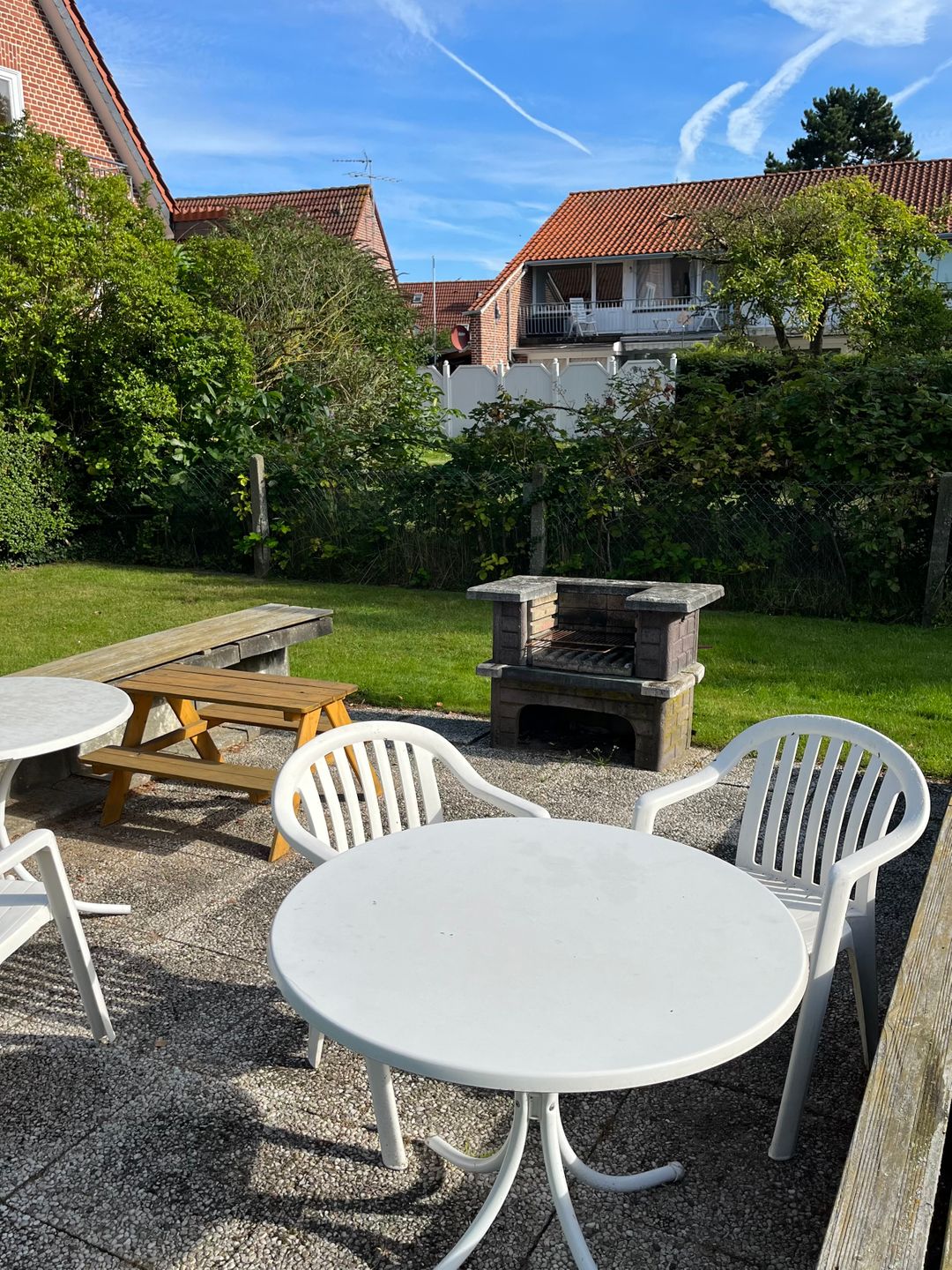 Im nicht von der Straße einsehbaren Bereich hinter den Häusern haben wir zwei große Fahrradständer und eine Wäschespinne aufgestellt.