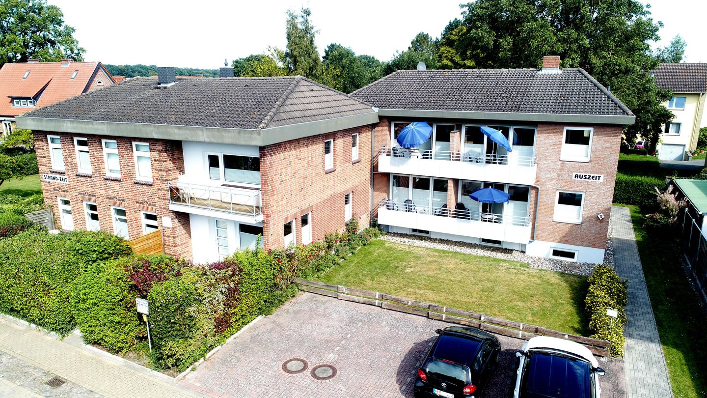 Das Haus AUSZEIT in Kellenhusen hat vier Ferienwohnungen und liegt mit ca. 200 m Entfernung ziemlich mittig zwischen Strand und Wald an einer Wohnstraße.