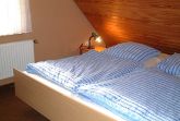Zum Schlafzimmer führt eine relativ steile und schmalle Treppe, das Schlafzimmer befindet sich im Dachgeschoss.