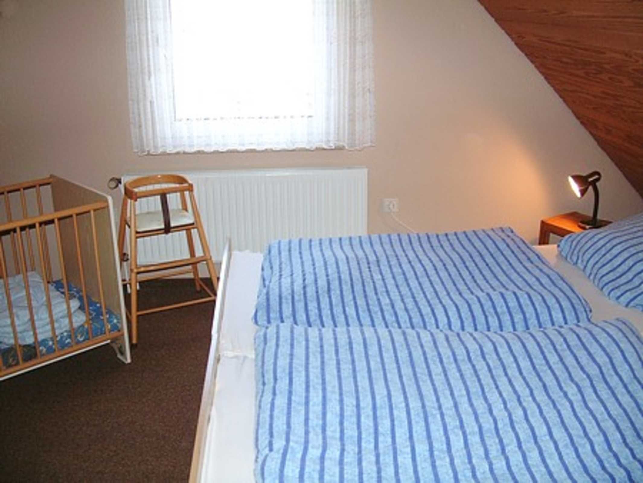 Zum Schlafzimmer führt eine relativ steile und schmalle Treppe, das Schlafzimmer befindet sich im Dachgeschoss.