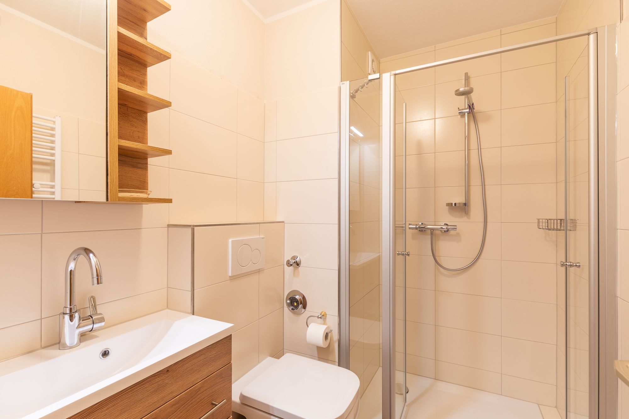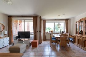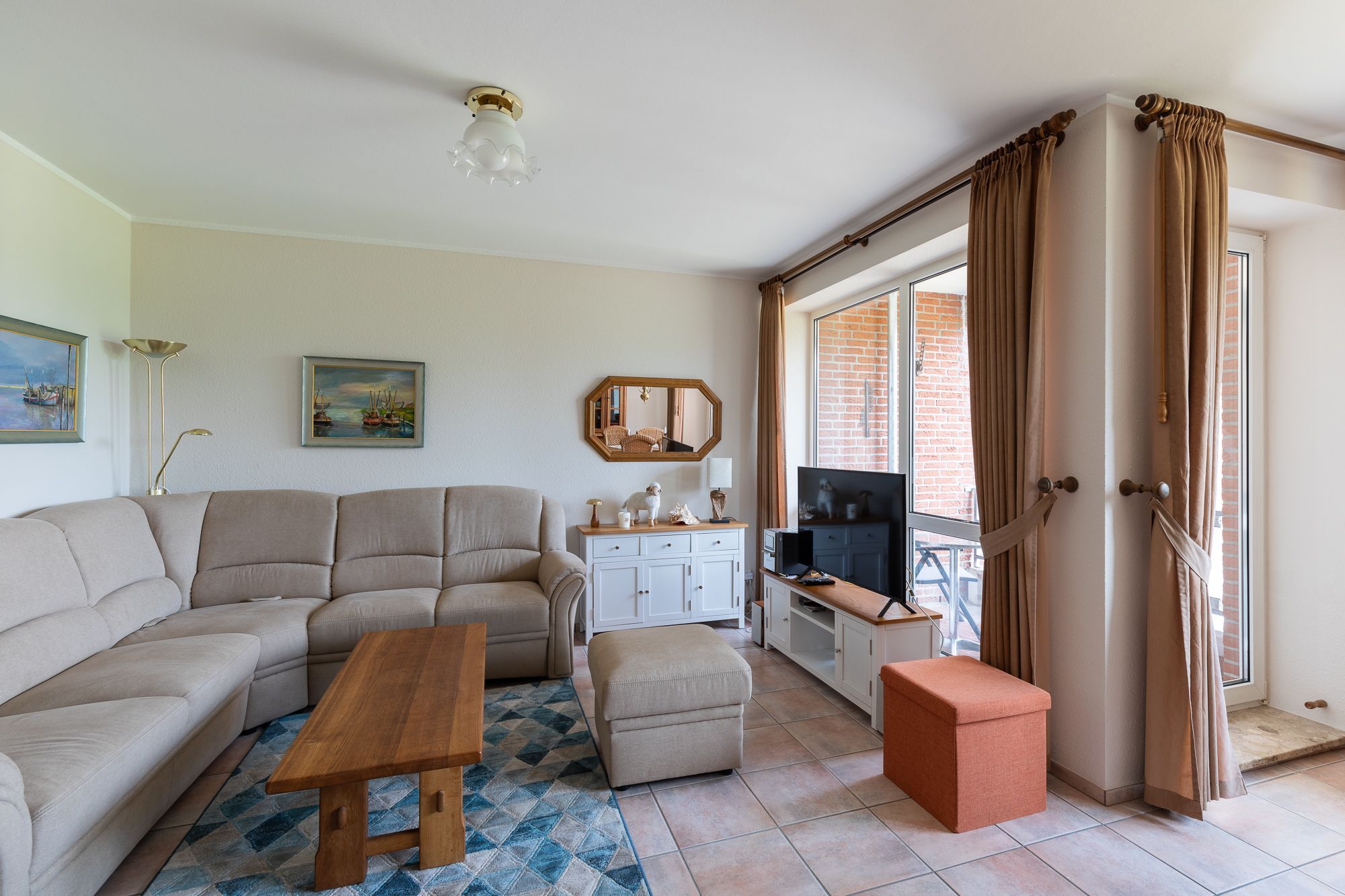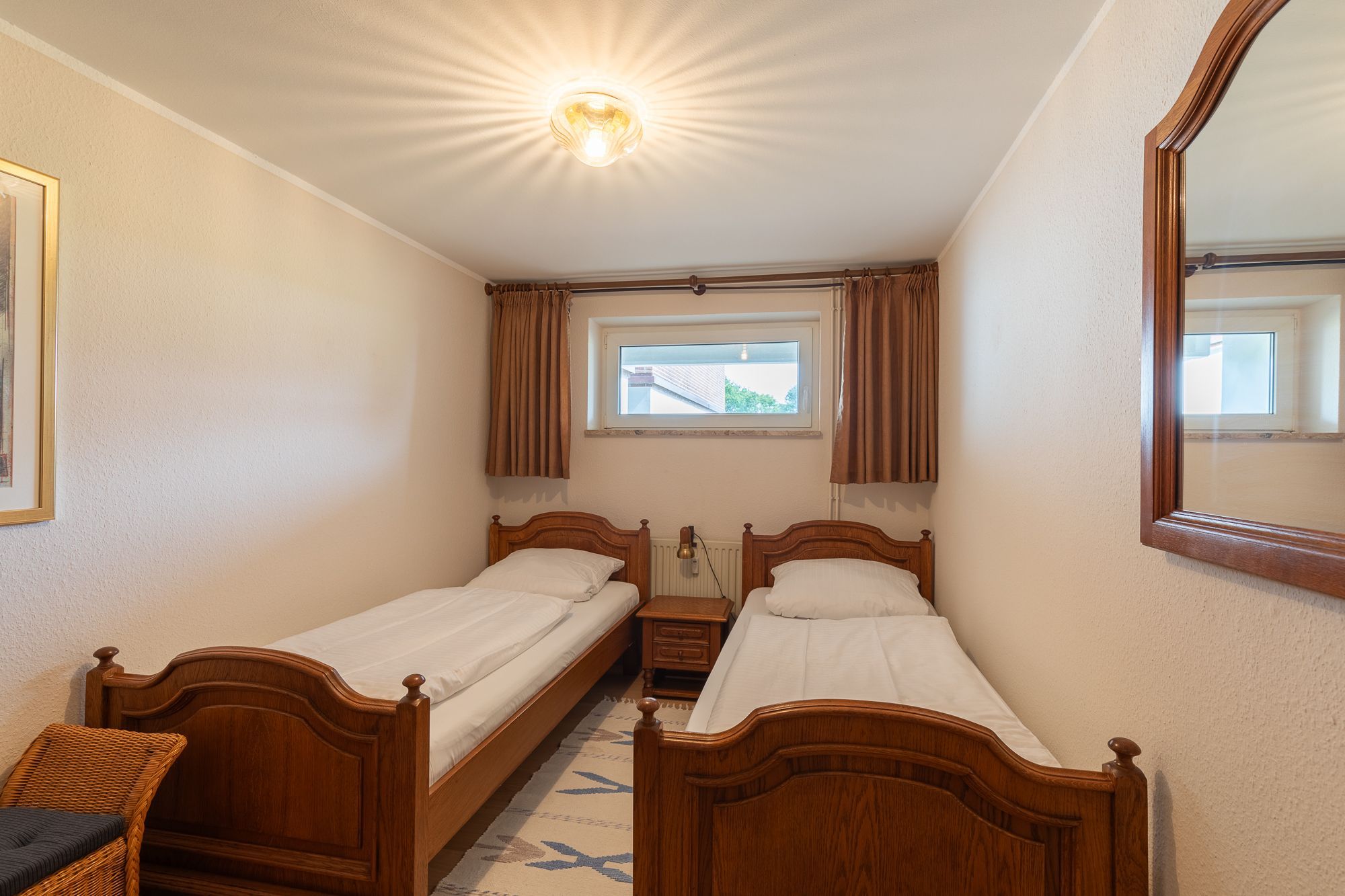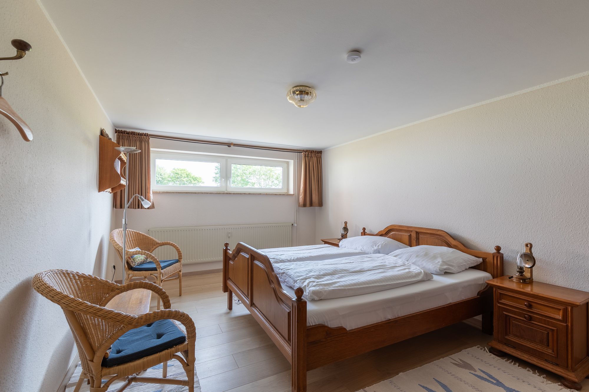Die 3 Zimmer Wohnung, ca. 65m² ist für bis zu 4 Personen ausgestattet, helles großes Wohnzimmer mit Sofa, Flatscreen TV, Essplatz mit 5 Stühlen und Zugang zum Süd Balkon (mit Gartenmöbel und Blick auf die Duhner Heide), Küchenzeile (Backofen, Cerankochfeld, Mikrowelle, Kühlschrank mit Gefrierfach, Geschirrspüler, Kaffeemaschine, Wasserkocher, Toaster), 1 Bad mit Dusche und WC, Flur, die Schlafzimmer befinden sich im Souterrain (an heißen Tagen erwartet Sie hier eine angenehme Kühle und ein gutes Raumklima), 1 Schlafzimmer mit Doppelbett und Kleiderschrank, 1 Schlafzimmer mit 2 Einzelbetten und Kleiderschrank, PKW-Stellplatz am Haus, Nichtraucher, es sind keine Tiere erlaubt.