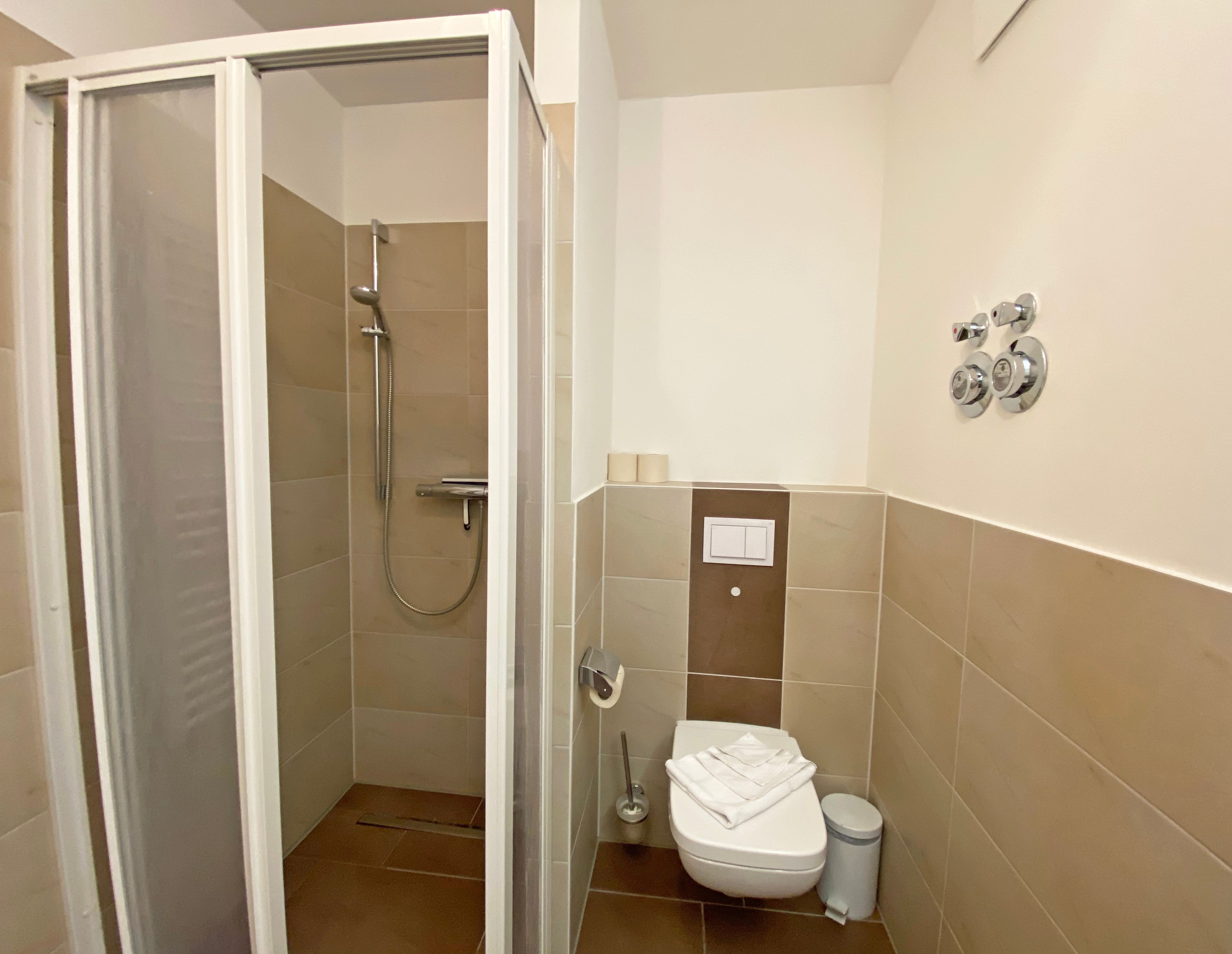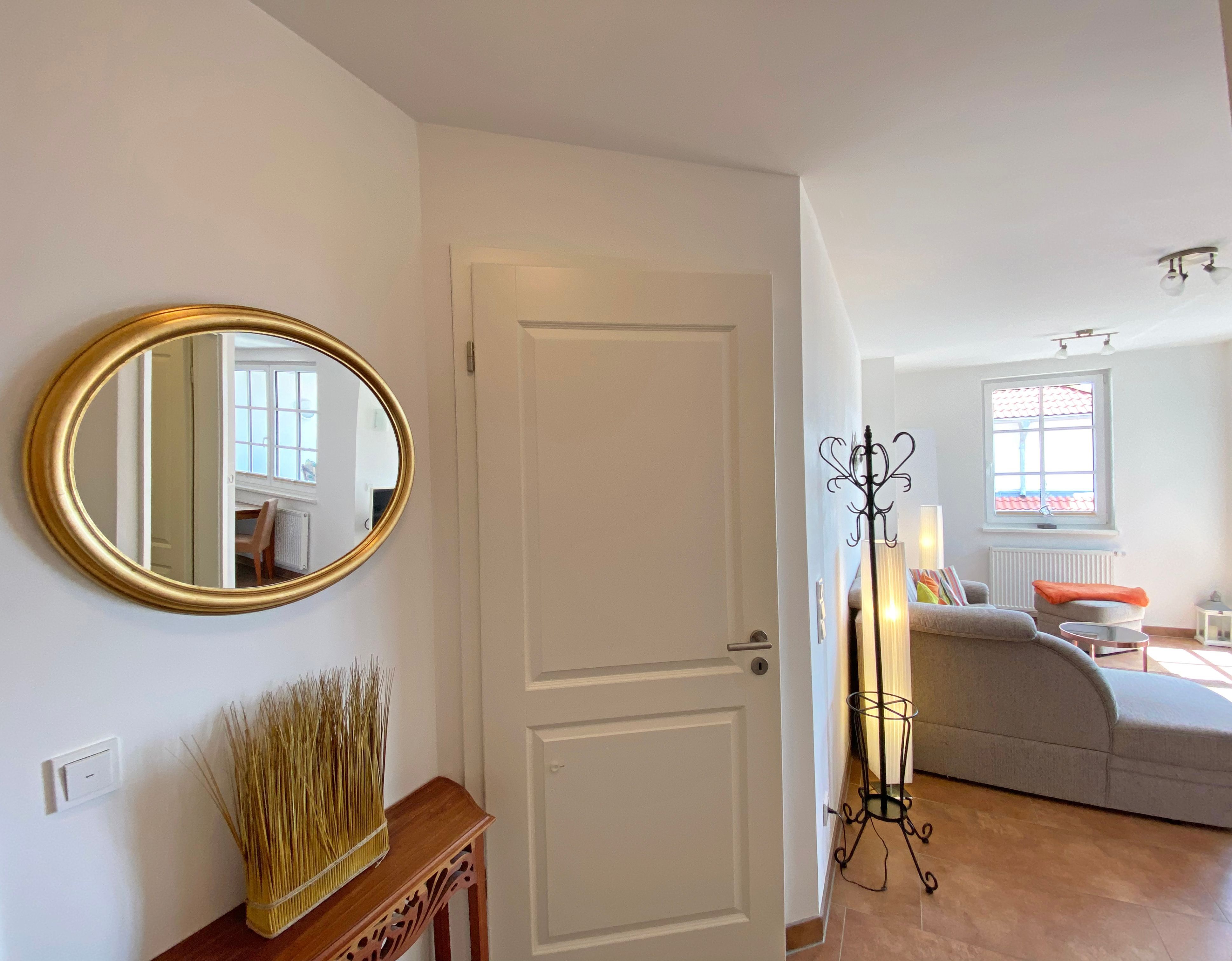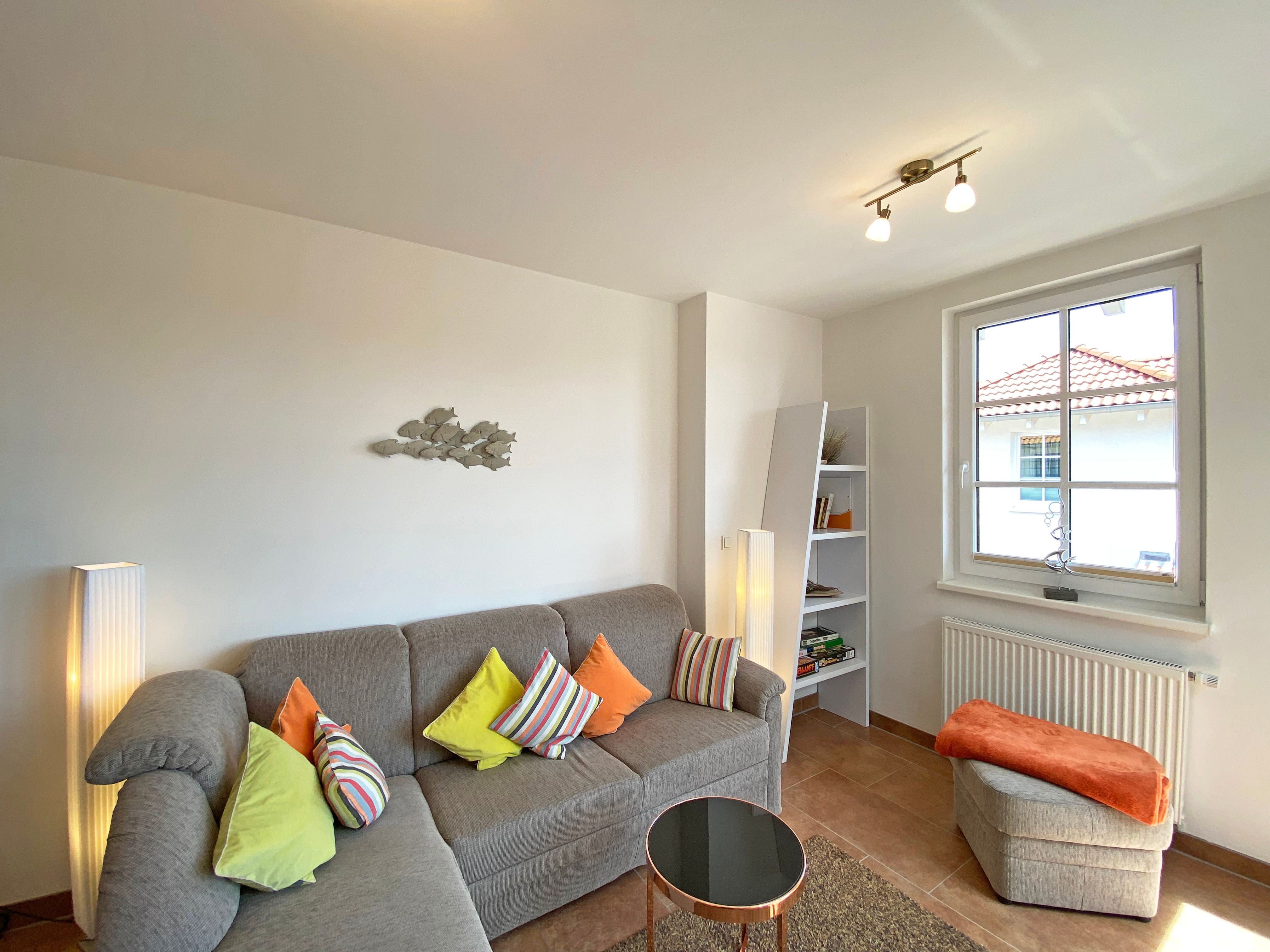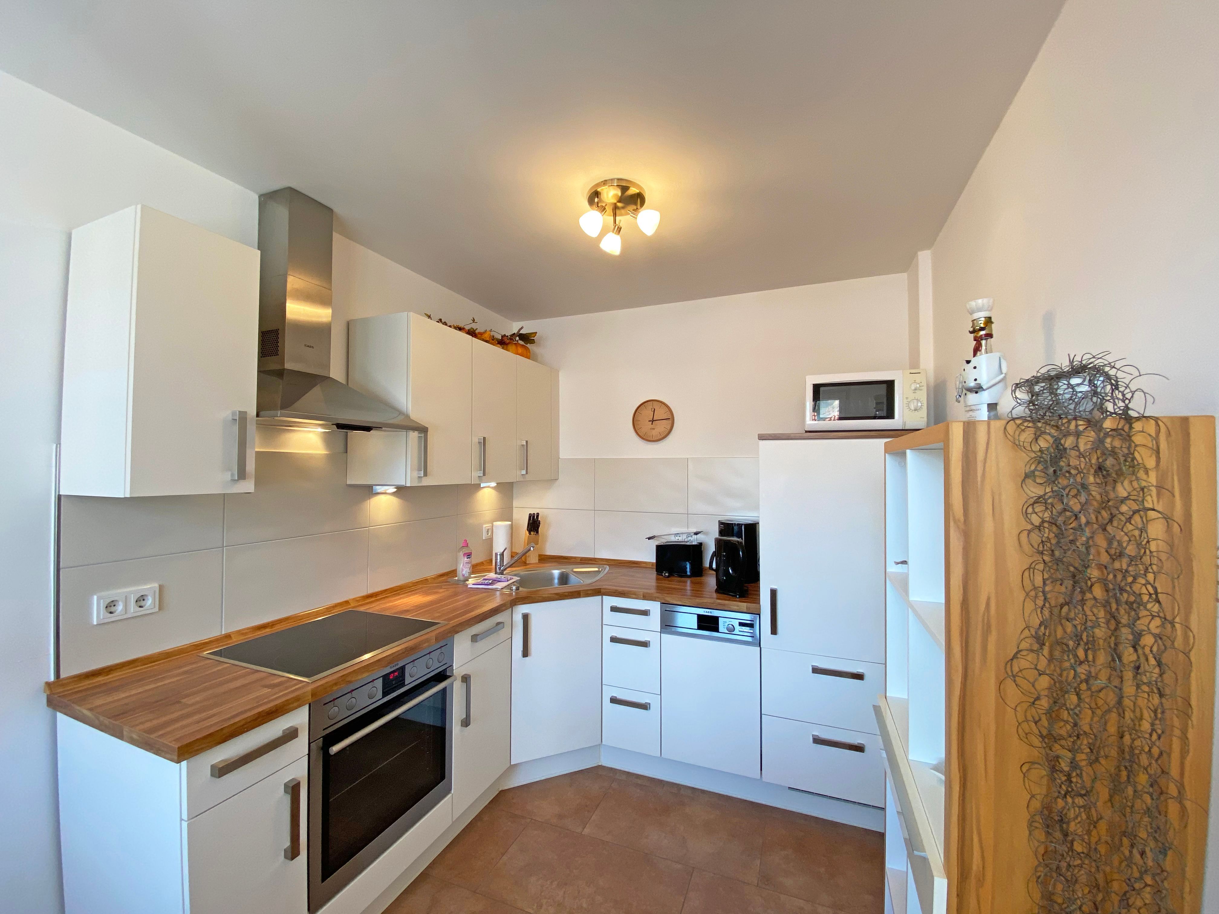 Unser geräumiges ca. 48 qm großes Nichtraucher-Appartement „Ostseekiesel“ befindet sich in der 3. Etage und ist für max. 2 Erwachsene + 1 Kleinkind bis 3 Jahre im Kinderreisebett geeignet. Sie finden hier einen kombinierten Wohn- und Essbereich mit offener Küchenzeile. Diese ist voll ausgestattet mit Cerankochfeld, Backofen, Spülmaschine, Kühl-/Gefrierkombination, Mikrowelle, eine Kaffeemaschine, eine Tassimo Kapselmaschine, ein Toaster, ein Wasserkocher sowie weiteren diversen Küchenutensilien. Der lichtdurchflutete und offene Wohnbereich mit seinen großen Fensterfronten bietet Ihnen eine gemütliche Eckcouch + Hocker, eine Leselampe, ein Regal mit Urlaubslektüre sowie Gesellschaftsspiele, ein TV-Board mit LED-TV, eine Musikanlage mit DAB-Radio von Teufel sowie einen WLAN-Anschluss, welcher für Sie inklusive ist. Von hier gelangen Sie auf den bestuhlten Balkon, welcher Richtung Südosten ausgerichtet ist. Im Schlafzimmer befindet sich ein Doppelbett (1,80m x 2,00m), Nachttischablagen sowie einen großen Kleiderschrank. Für einen ruhigen Schlaf sorgen eine Verdunklungsmöglichkeit sowie ein Insektenschutzgitter. Das innenliegende Badezimmer wird durch eine ebenerdige Dusche, einen Waschtisch, ein WC, einen Handtuchtrockner, einen Kosmetikspiegel und einen Fön abgerundet. Im kleinen zusätzlichen Abstellraum befinden sich zusätzlich nützliche Utensilien wie z.B. Reinigungsutensilien sowie ein Wäscheständer. Für unsere kleinen Gäste steht Ihnen ein Kinderreisebett (ohne Matratze) sowie ein Hochstuhl inklusive zur Verfügung. Haustiere sind in der Wohnung nicht erlaubt. Eine Waschmaschine und ein Trockner stehen Ihnen im Keller des Hauses gegen eine Gebühr zu Verfügung. Mit dem Fahrstuhl des Hauses A gelangen sie in das Untergeschoss der Meeresblickanlage, wo Sie ein großzügiger und heller Wellnessbereich erwartet. Hier können sie in einem Pool kleine Bahnen schwimmen, in 2 Saunen Ihren Kreislauf in Schwung bringen, in einem dazugehörigen Ruheraum Ihren Körper wieder beruhigen, in einer Schneckendusche sowie weiteren Duschen das kühle Nass genießen und auf einer Außenterrasse mit Außendusche die frische Luft einatmen. Ein PKW-Stellplatz (Nr.118, Einfahrtshöhe 2,00m) ist für Sie in der Tiefgarage reserviert. Die Erstausstattung eines Wäschepaketes (komplette Bettwäsche, 1 Duschhandtuch, 2 kleine Handtücher) können Sie bis 14 Tage vor Anreise gegen einen Aufpreis dazu buchen oder durch eigene ergänzen. Ab 2 gebuchten Paketen erhalten Sie einmalig 1 Geschirrhandtuch und 1 Duschvorleger hinzu.