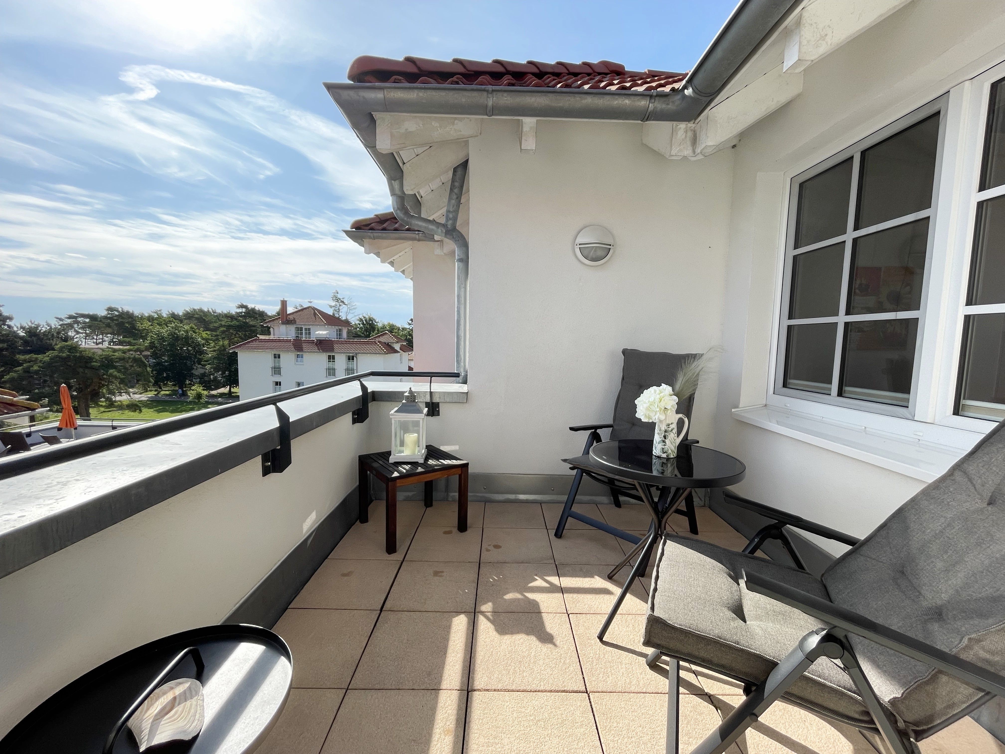 Herzlich Willkommen in unserem exklusiv eingerichteten Appartement Ostseekiesel mit Wellnessbereich und Schwimmbad in direkter Strandlage im schönen Ostseebad Baabe. Unmittelbar an der Ostsee ist die Appartementanlage Haus Meeresblick entstanden. Die weitläufige Ferienanlage besteht aus drei freistehenden Häusern. In der 3. Etage des Hauses A finden Sie unser lichtdurchflutetes Appartement, das Ihre Urlaubsträume wahr werden lässt. Eingebettet in eine besonders schöne Parklandschaft zwischen Kur- und Rhododendrenpark und von Strandkiefern umgeben. Nur wenige Schritte und Sie spüren den herrlichen, feinen Sandstrand unter Ihren Füßen und auch die Strandstraße, die Flaniermeile von Baabe, mit vielen gemütlichen Cafés und kleinen Läden, erreichen Sie nach wenigen Metern. Neben der Lage besticht das Appartement Ostseekiesel durch seine komfortable Einrichtung, den vorhandenen Fahrstuhl, ein Tiefgaragenstellplatz sowie das Schwimmbad und die Saunalandschaft.