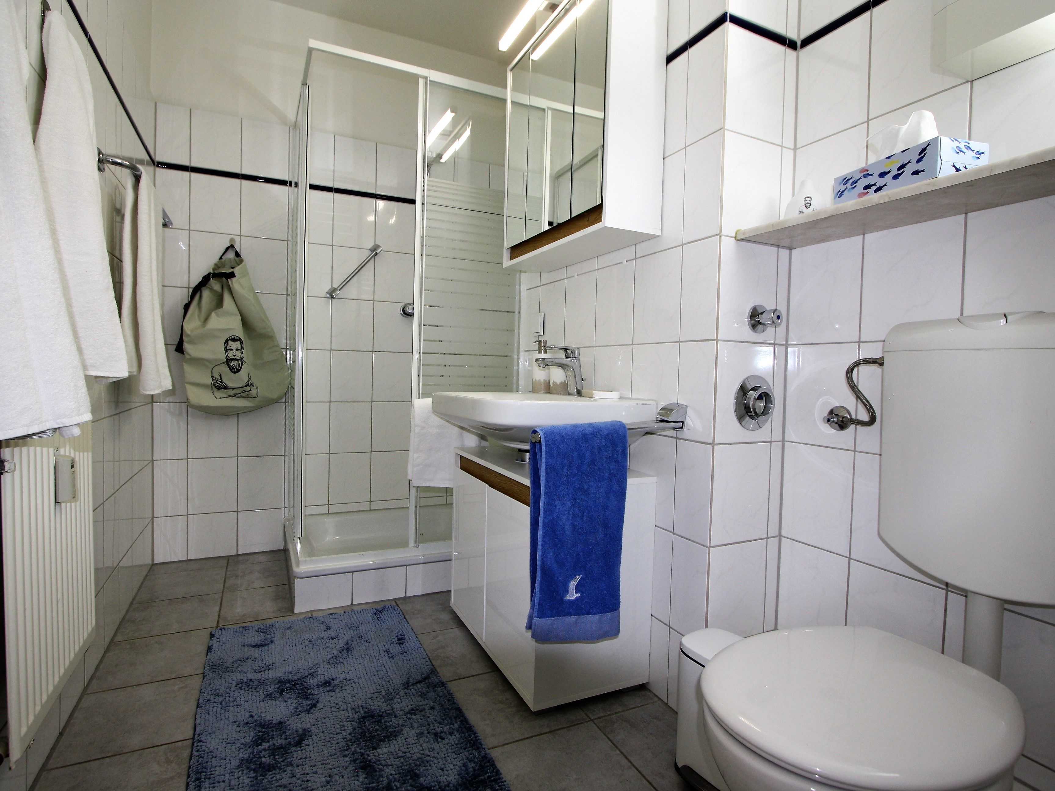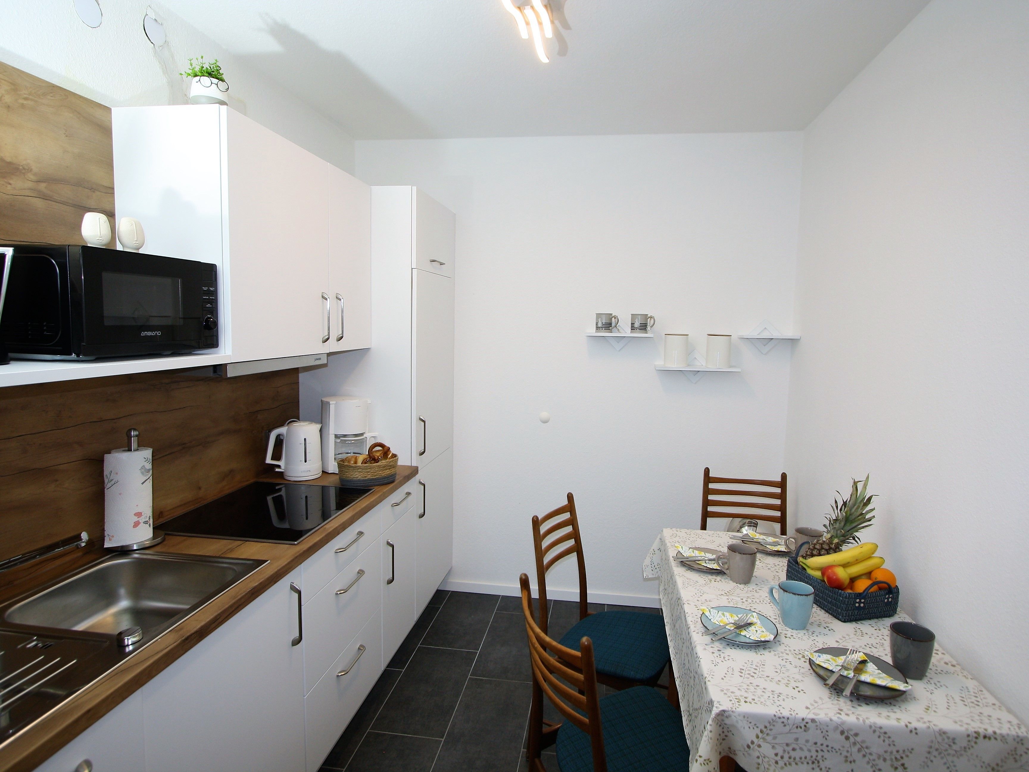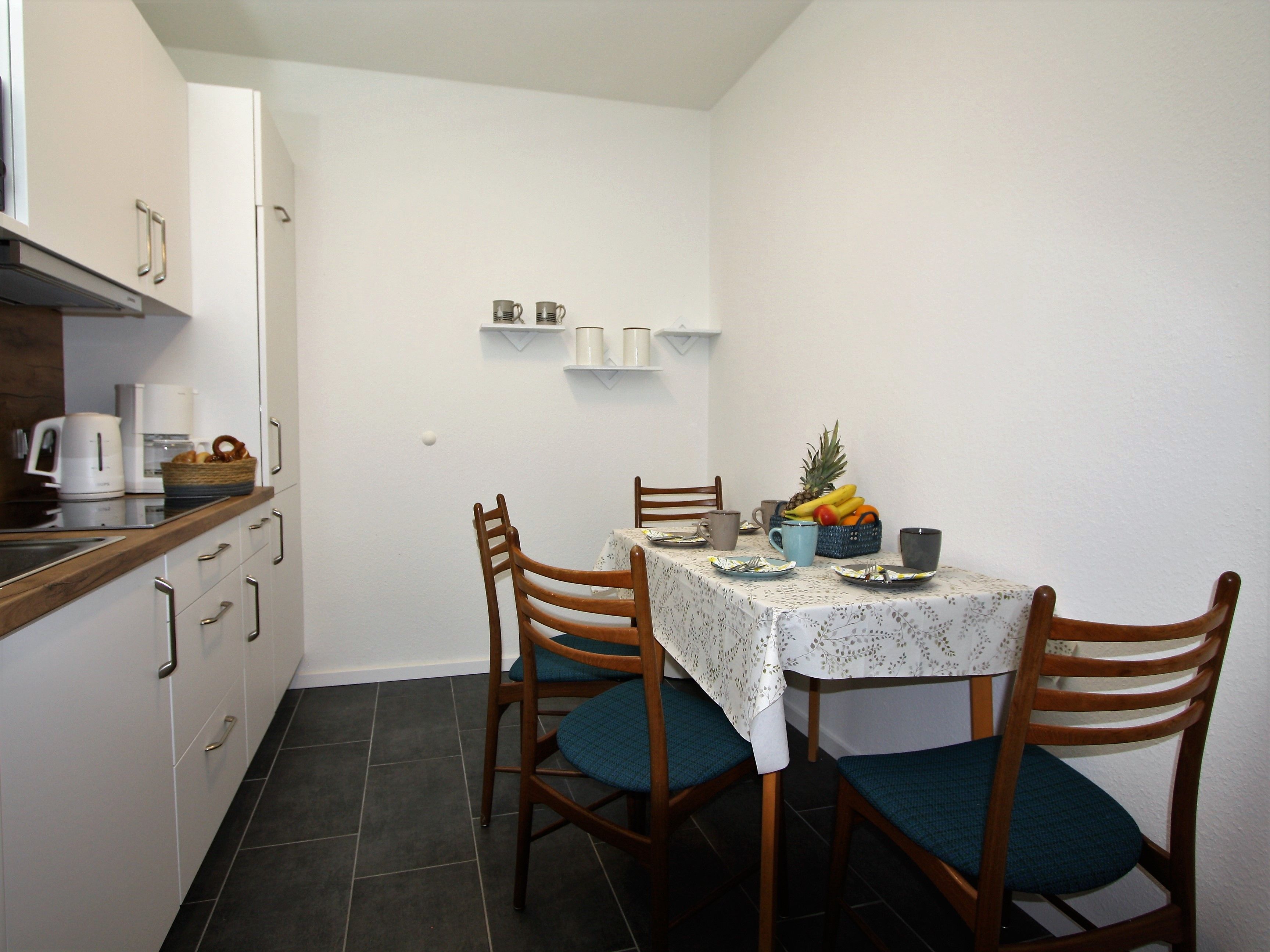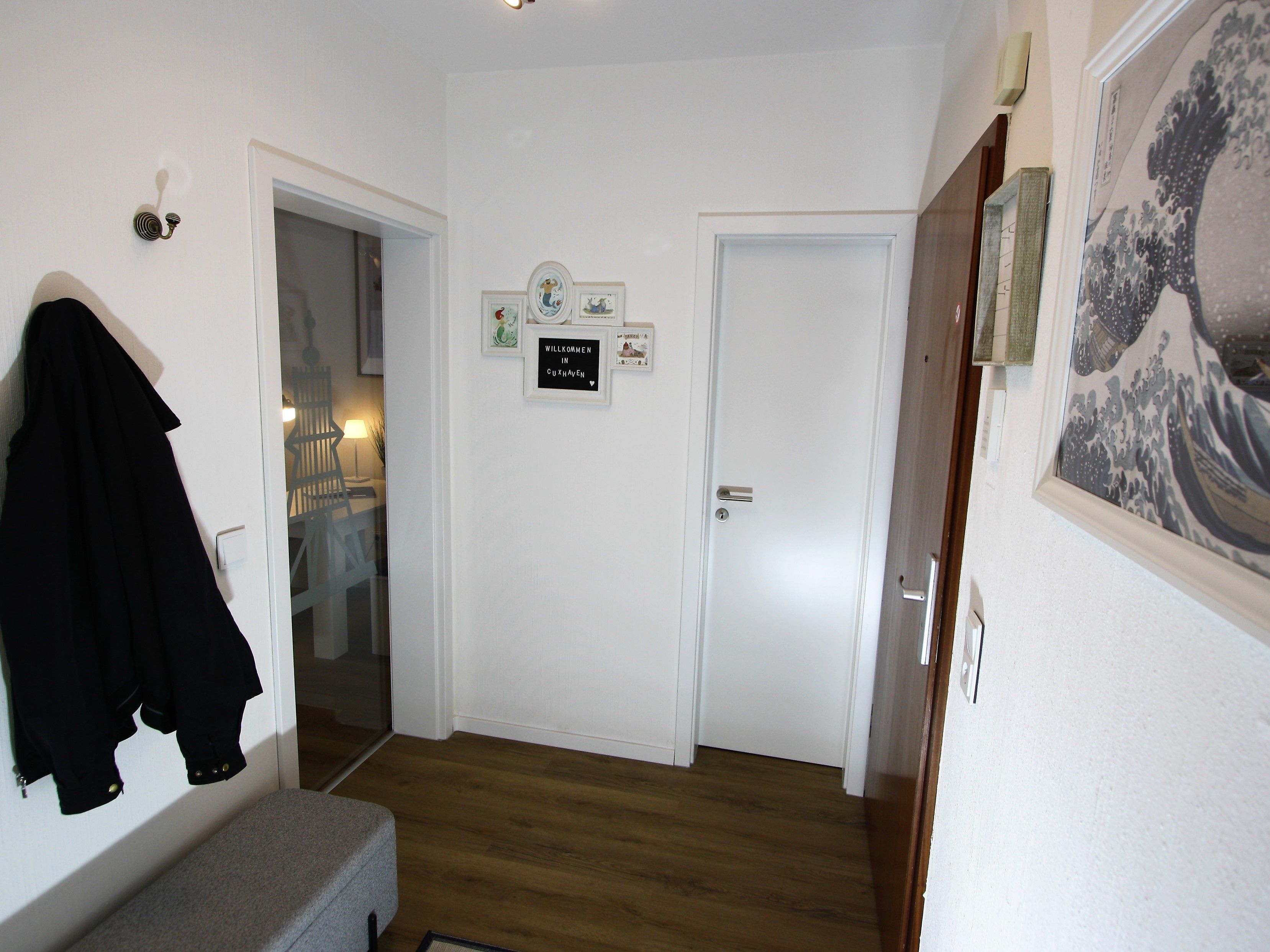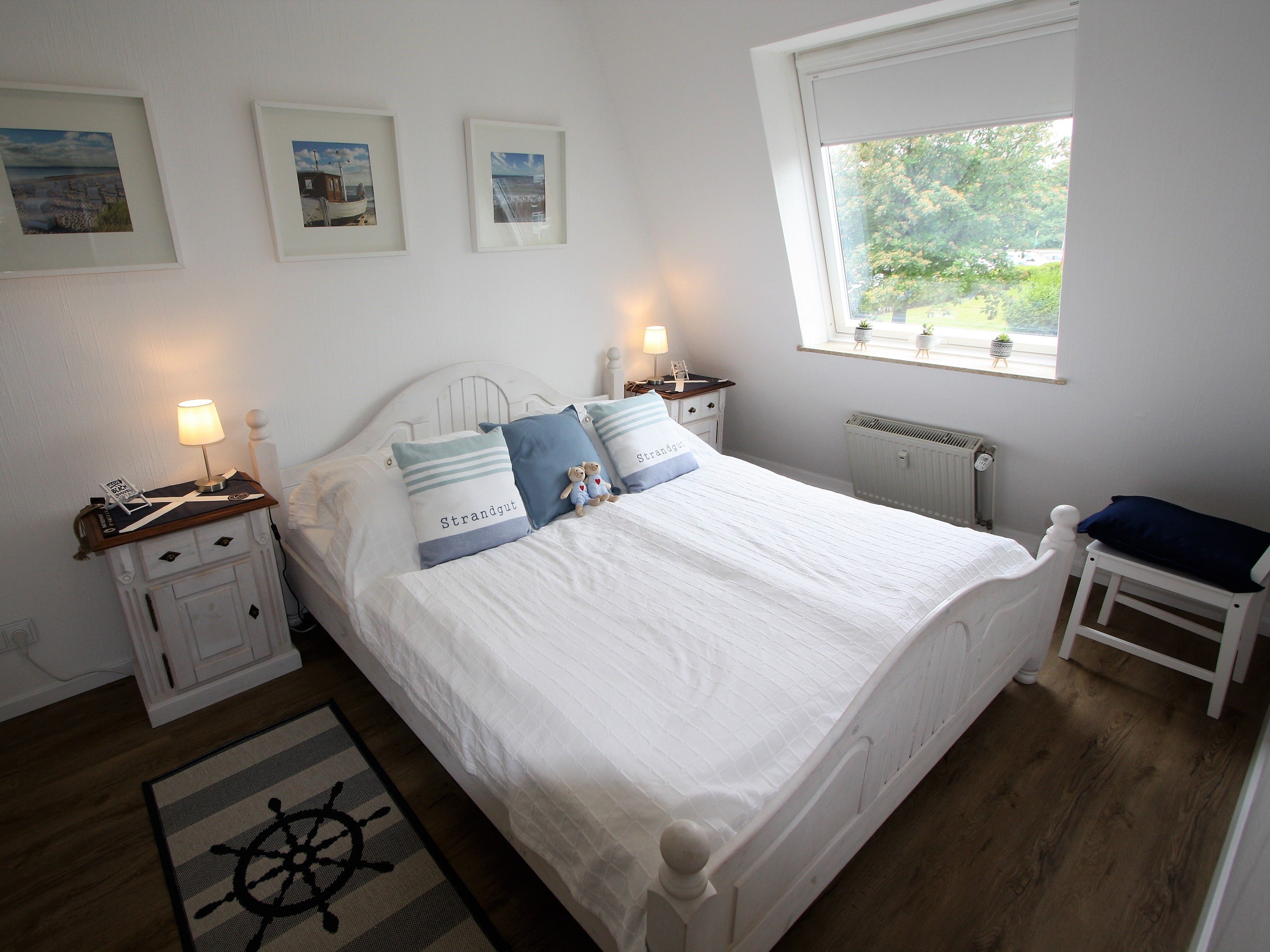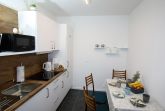 Ihre Ferienwohnung ist ein liebevoll eingerichtetes 2-Zimmer-Apartment mit gemütlichem Balkon. An das maritime Wohnzimmer schließt die offene, voll ausgestattete Küche an. Ebenfalls zur Wohnung gehört ein helles Schlafzimmer mit Doppelbett und geräumigem Kleiderschrank sowie ein modernes Bad.