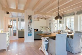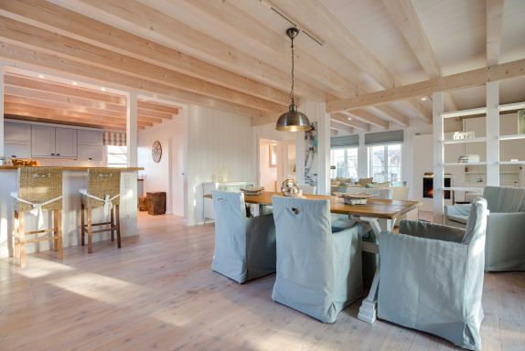 Das Haus „Lister Leuchtfeuer“ beherbergt in einem gepflegten, weißen Klinkerbau mit Hartbedachung ein geräumiges, 190 Quadratmeter großes Apartment im Beachhouse-Stil für Ihren Sylt-Urlaub mit bis zu sechs Personen. Die gesamte Einrichtung ist hell und freundlich mit viel Holz, weißen Einbauschränken und hellen Echtholzdielen.