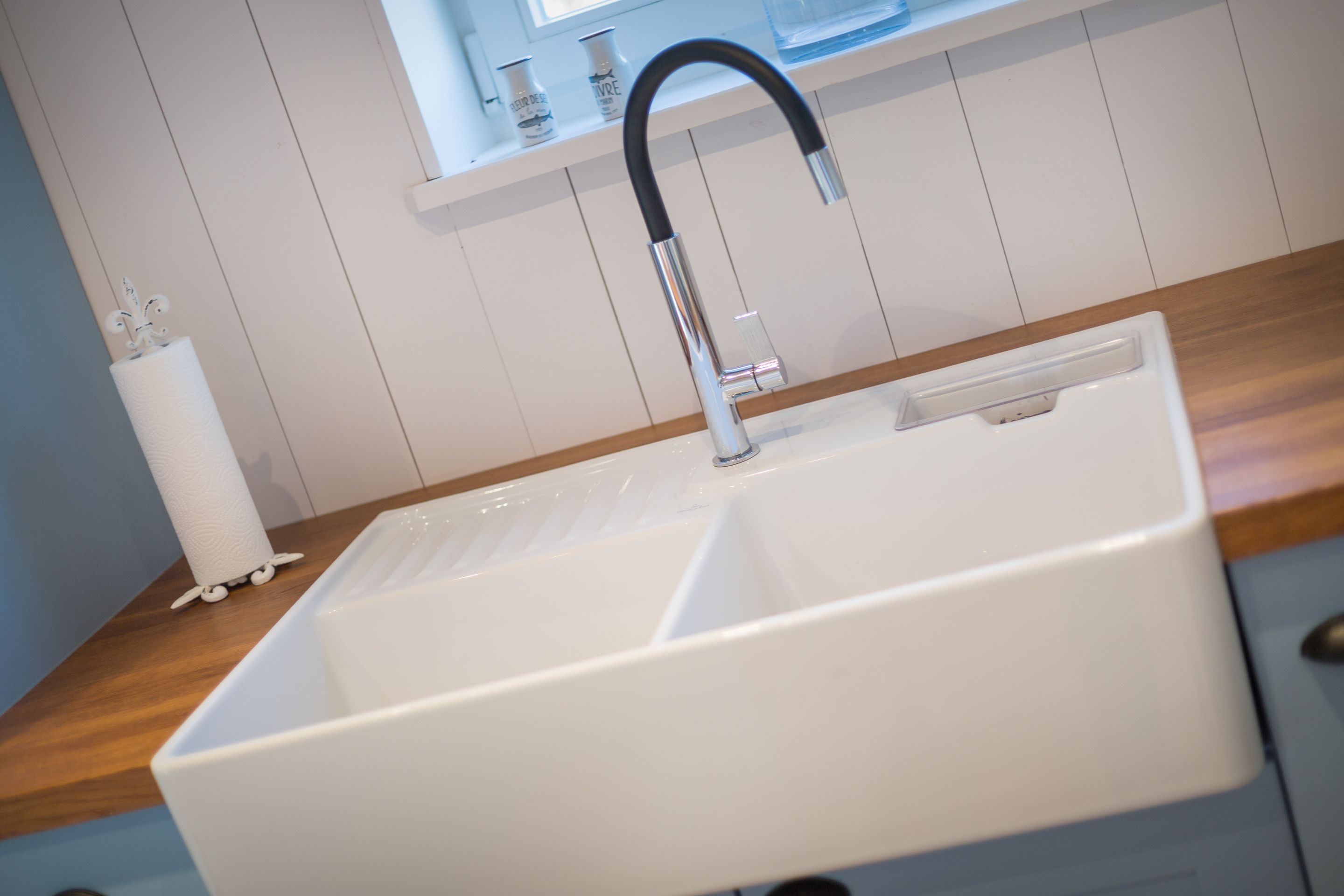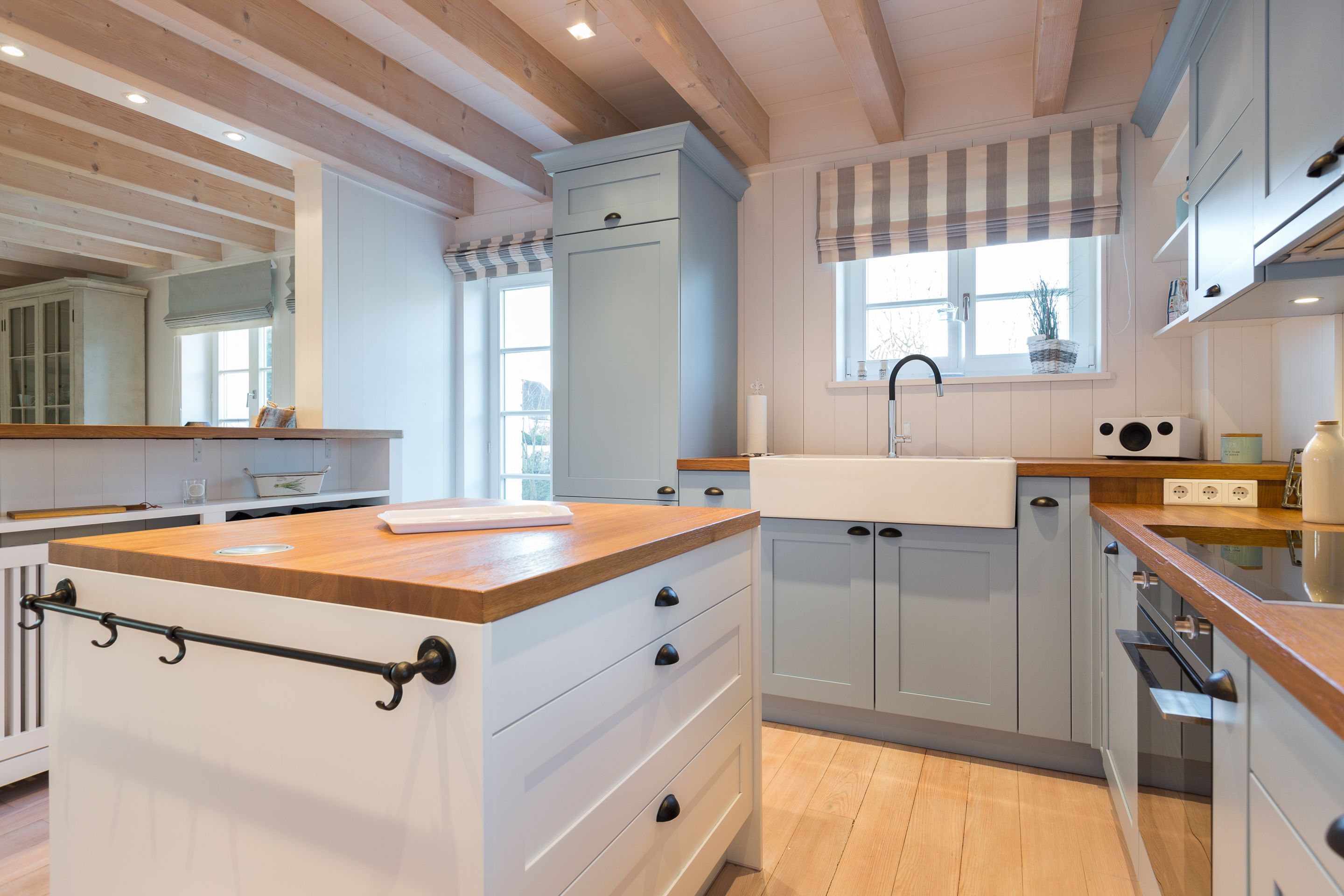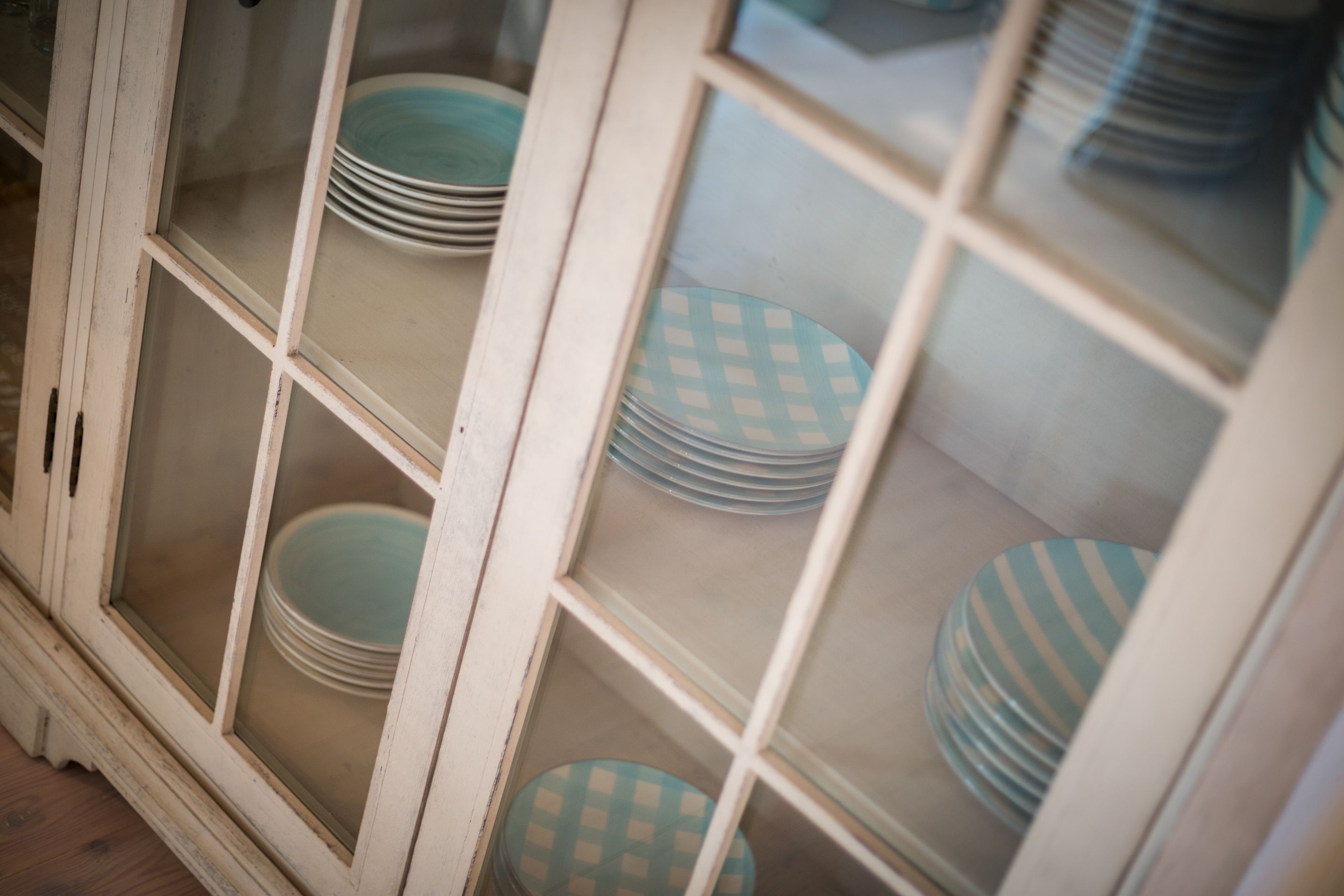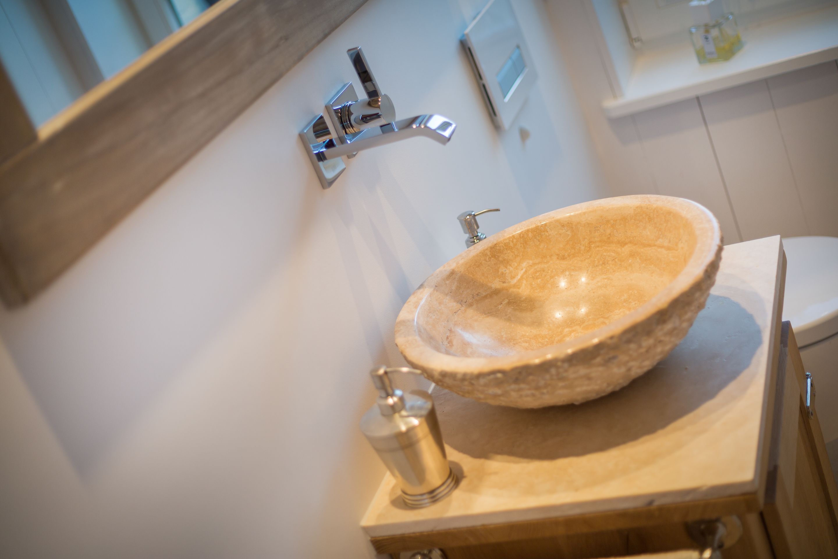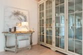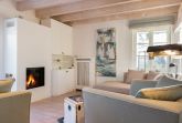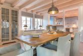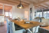Im Erdgeschoss befindet sich ein geräumiges Wohnzimmer mit angeschlossenem Esszimmer und offener Wohnküche modernem Fernseher mit Satelliten-Empfang. Im Wohnzimmer sorgt der offene Kamin für romantische Stimmung. Die große Wohnküche ist vom geräumigen Esszimmer durch einen Frühstückstresen getrennt. Alle Annehmlichkeiten einer modernen Küche vom Herd bis hin zum Kühl- und Gefrierschrank und einer Spülmaschine sind vorhanden. Vom Wohnzimmer und Esszimmer kommen Sie auf die zwei Terrassen. Die Küche bietet einen weiteren Zugang zum Garten. Ebenfalls finden sich im Erdgeschoss ein Gäste-WC und ein Ankleidezimmer.