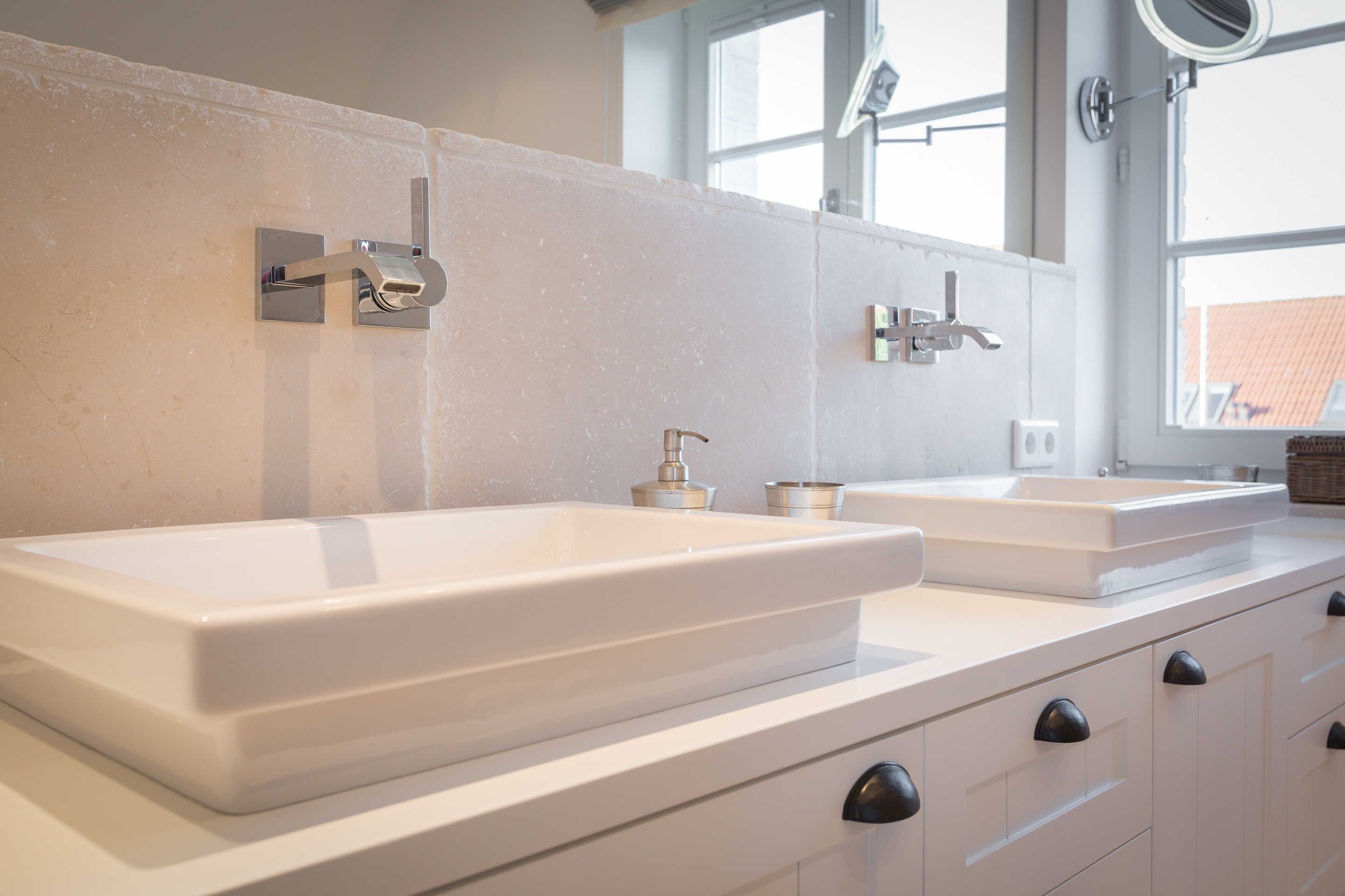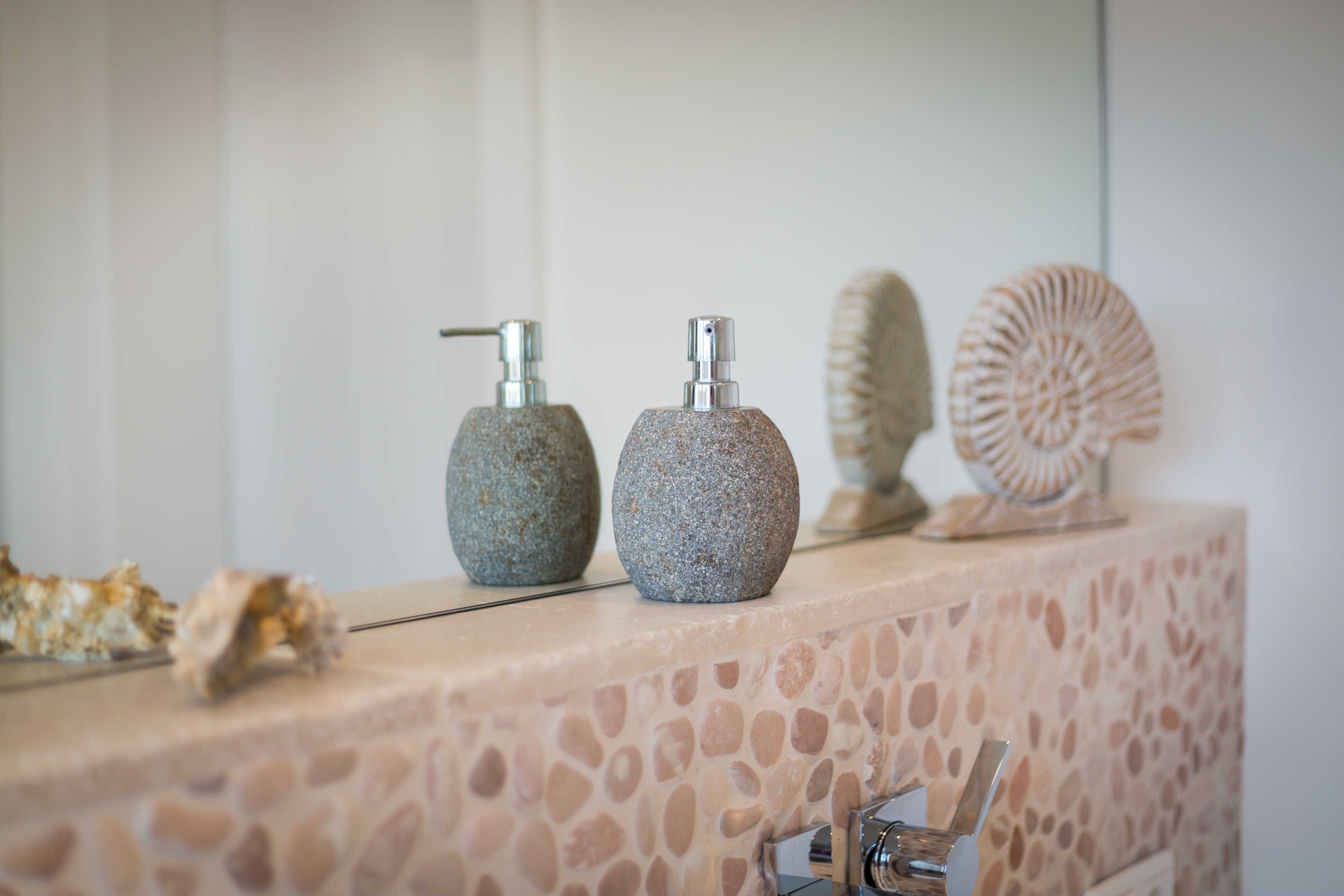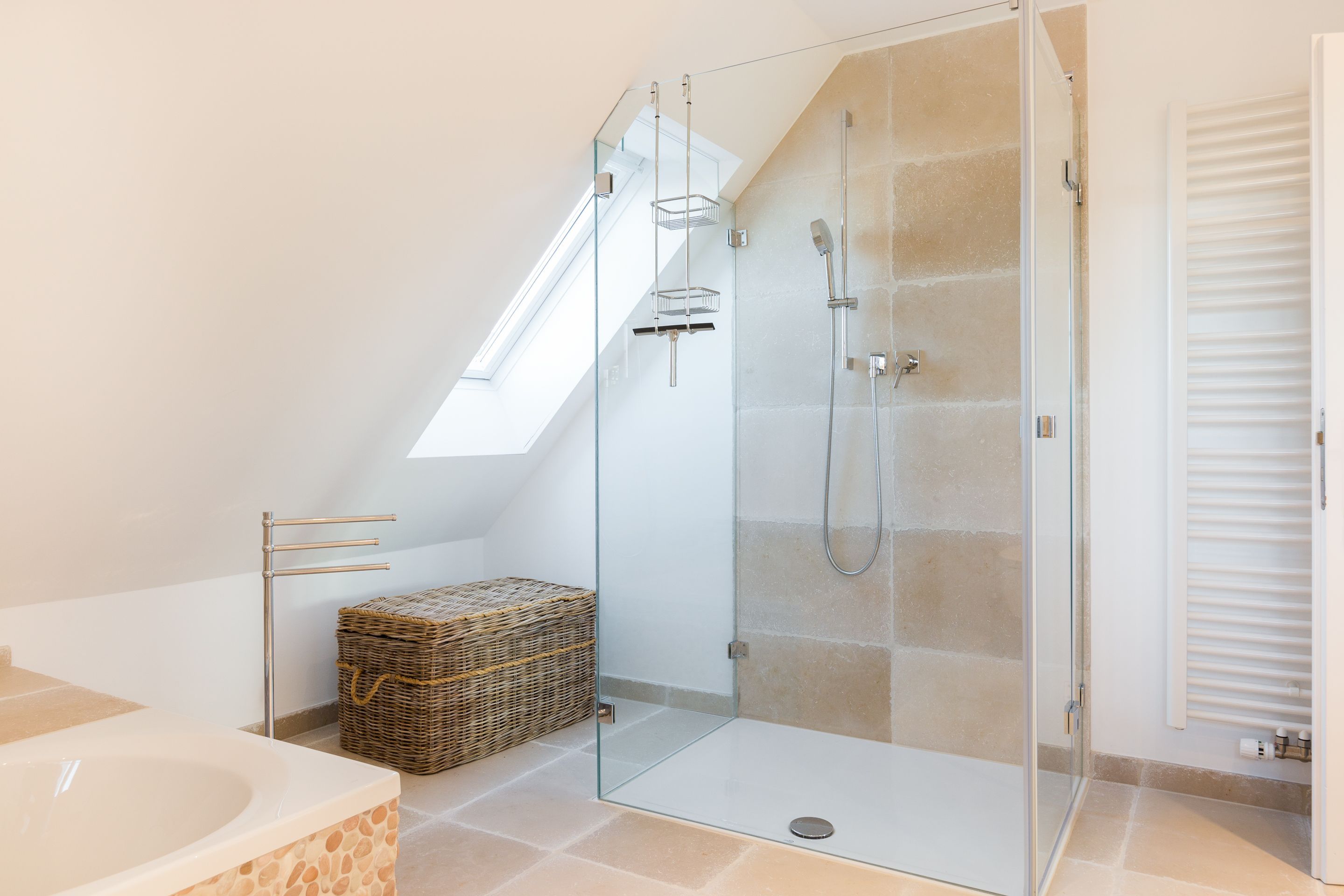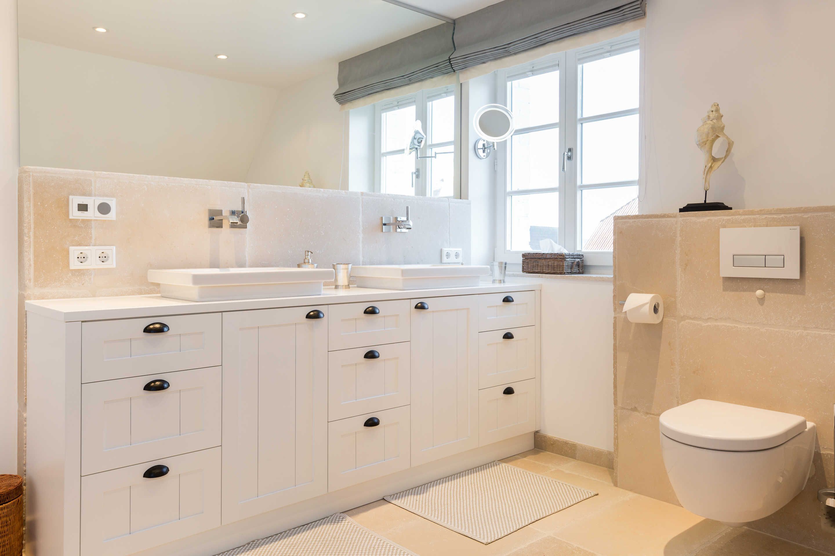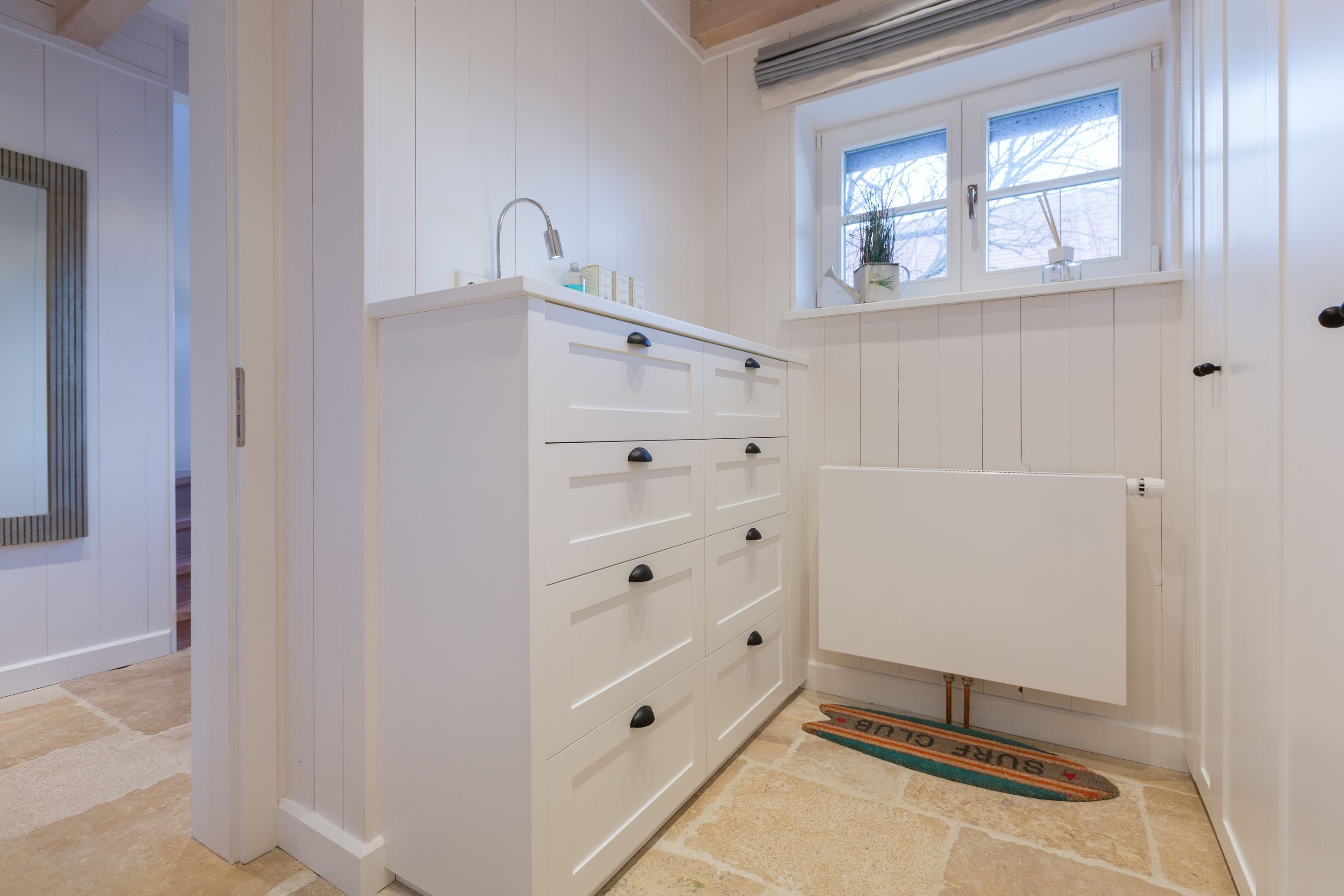 Das Obergeschoss bietet eine edle Optik mit weißer Holzvertäfelung. Oben befindet sich ein großes, helles Badezimmer mit Badewanne und geräumiger Duschkabine, zwei Waschbecken und WC. Im ersten Schlafzimmer findet sich ein 2 x 2 Meter großes Boxspringbett. Das zweite Schlafzimmer hat ein 1,60 x 2,00 Meter großes Doppelbett, einen kleinen Schreibtisch und ein eigenes Duschbad mit WC und separatem Waschraum mit Waschmaschine. Das dritte Schlafzimmer verfügt über ein ausziehbares Bett für ein bis zwei Personen, einen Schreibtisch und einen Fernseher. Alle Schlafzimmer sind mit Einbauschränken ausgestattet und bieten einen traumhaften Blick auf Meer und Natur.
