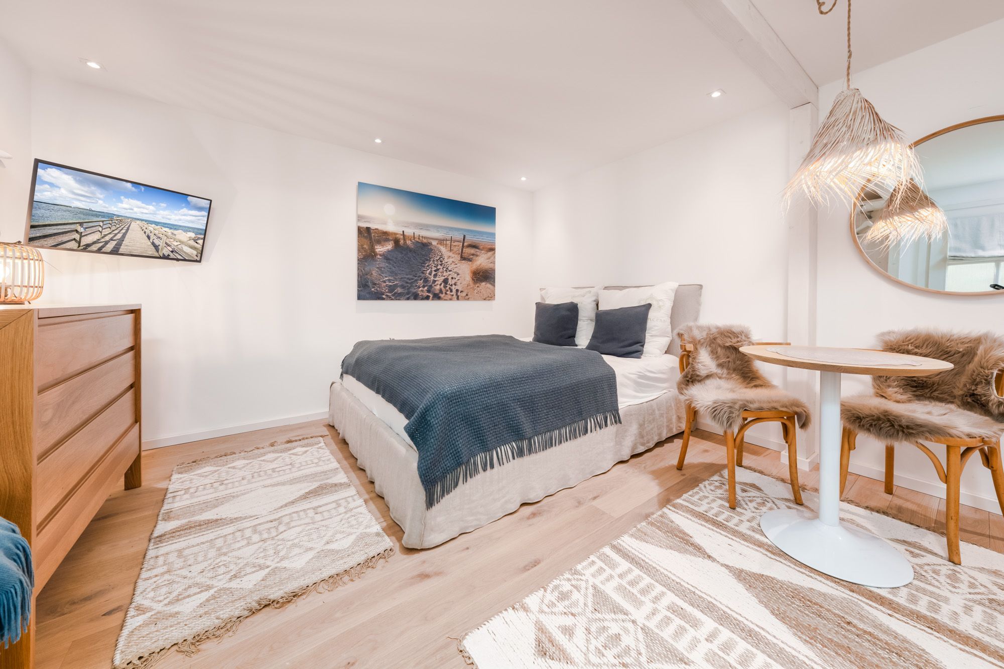 Für die Erholung sorgt das bequeme Doppelbett, wo Sie sich nach einem ausgiebigem Strandtag an der Ostsee erholen können.
