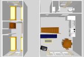 Nurdach-Haus: 2-geschossig mit Spartreppe, Wohn-Esszimmer mit Küchenbereich sowie Sanitärbereich im EG, 2 Schlafzimmer mit Einzelbetten im DG