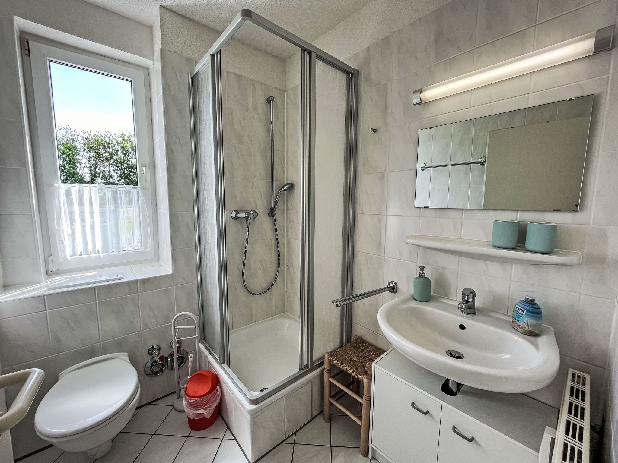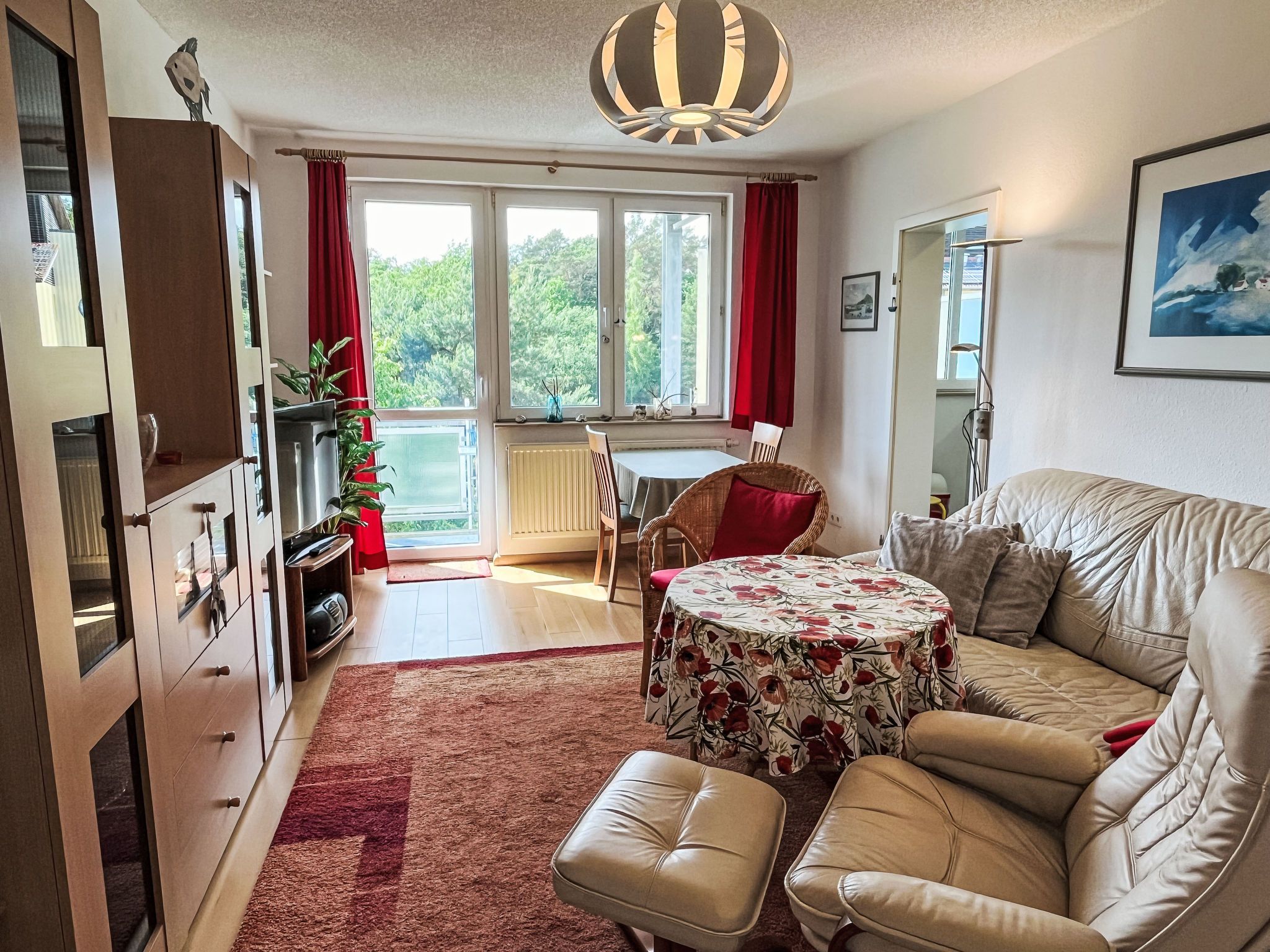 Karsten, 2-Zimmer-Wohnung 50 m2 im 2. Stock. Wohn-/Esszimmer mit Kabel-TV (Flachbildschirm), Radio. Ausgang zum Balkon. 1 Zimmer mit 1 Doppelbett. Kleine Küche (Backofen, 4 Glaskeramikplatten, Mikrowelle). Dusche/WC. Balkon. Balkonmöbel. Parkplatz (1 Auto) beim Haus. Bitte beachten: Nichtraucher-Unterkunft. Rauchmelder.