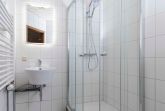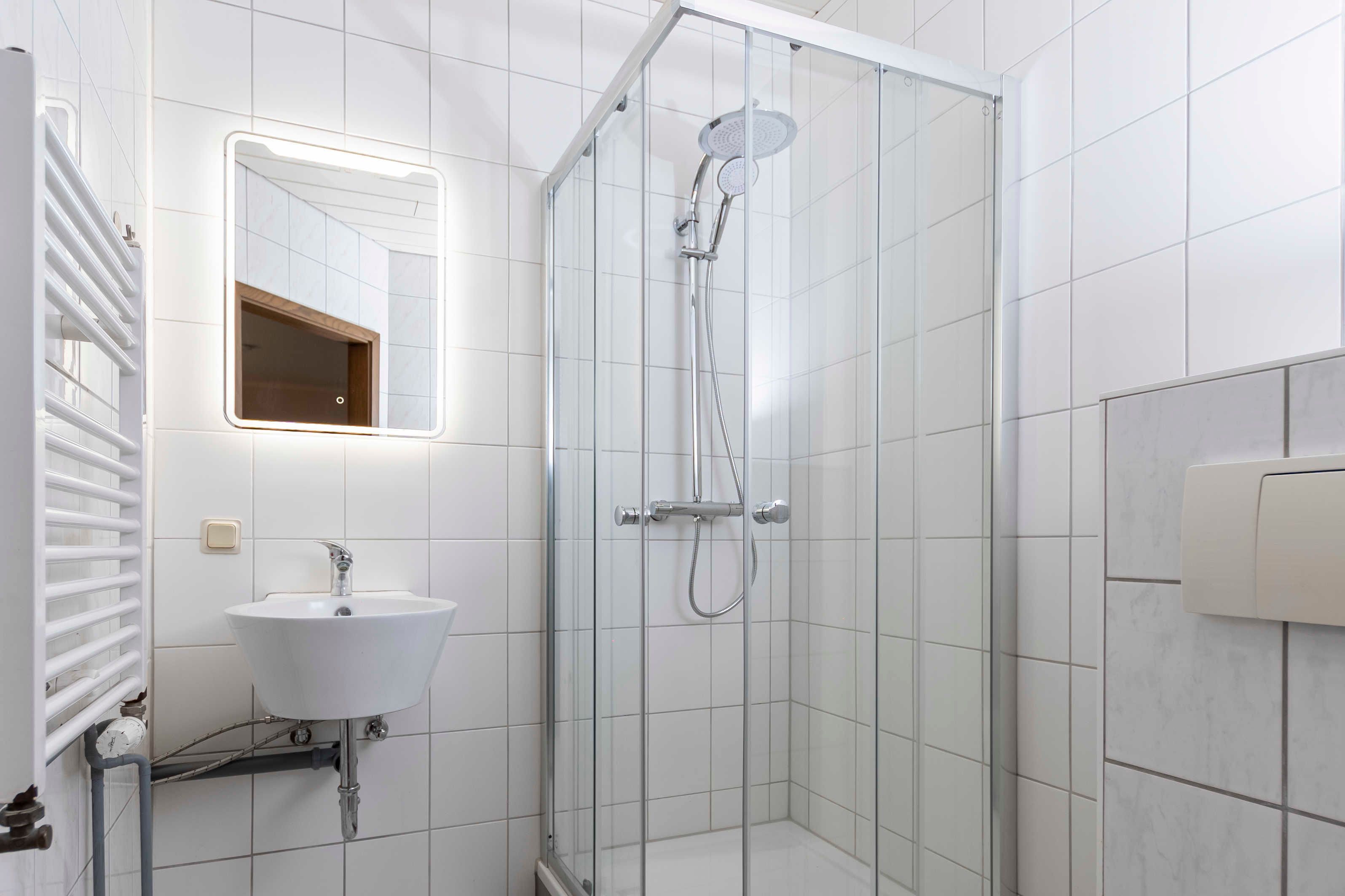 Die Doppelzimmer sind ca. 15qm groß und verfügen über zwei Betten (90 cm x 200 cm), die wir wahlweise zusammen oder auseinander stellen können sowie einen Schrank, eine Sitzgelegenheit, einen Kühlschrank und einen Wasserkocher. Das Bad verfügt über eine Dusche.