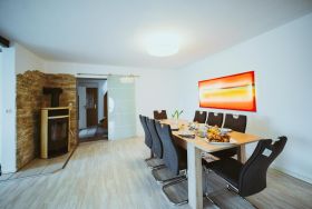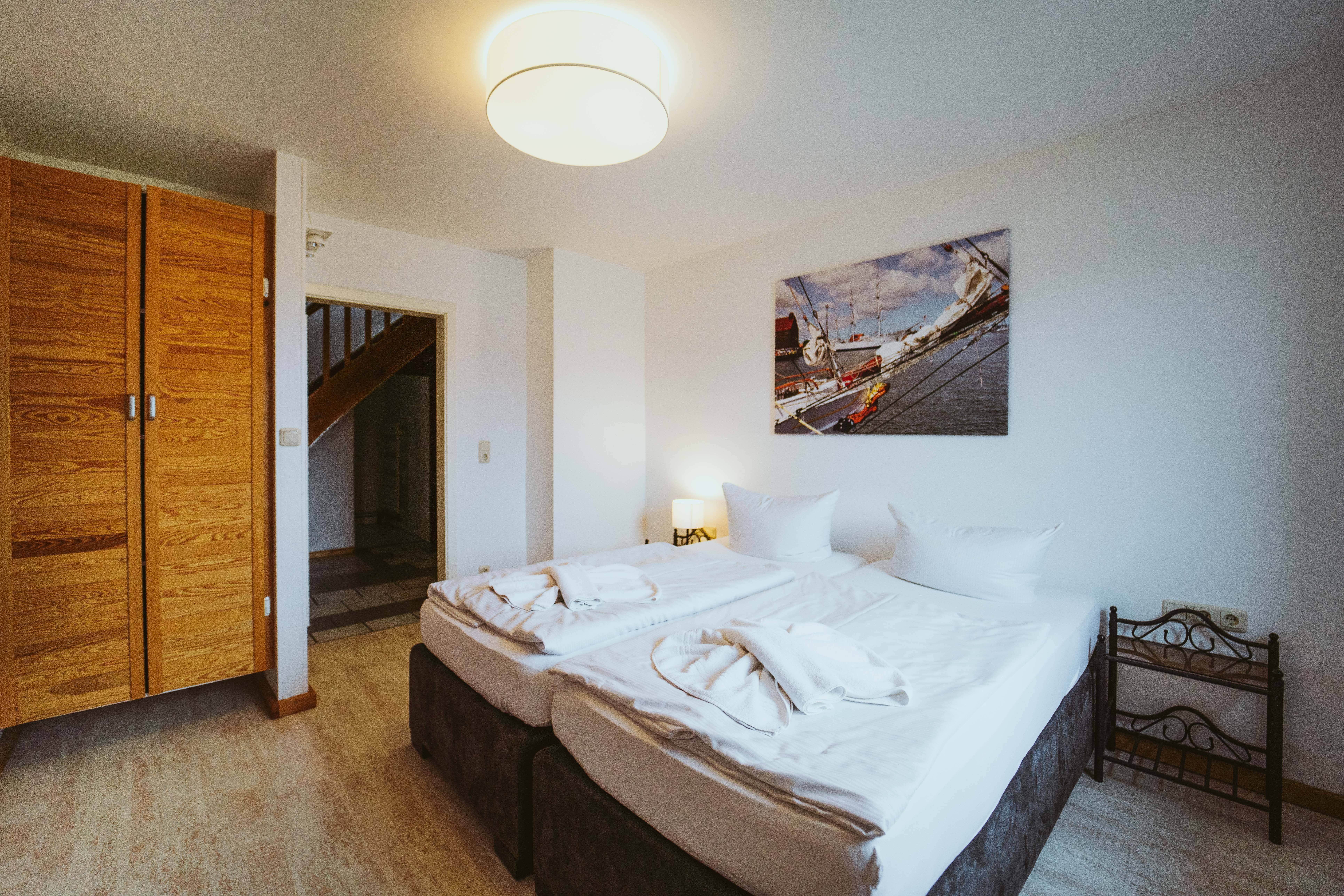 Das wahrscheinlich größte Apartment in Stralsund! Diese Ferienwohnung verfügt über 4 Schlafzimmer (davon 2 im Obergeschoss), 1 großes Wohnzimmer, ein Wannenbad sowie eine luxuriöse offene Küche. Das Apartment verfügt über 10 feste Betten und kann ggf. durch Reisebetten aufgestockt werden. Im Wohnzimmer und im Essbereich der Küche gibt es einen Kamin.
