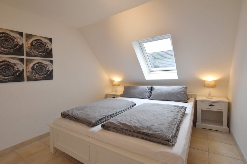 Moderne Mittelhausscheibe in zentraler Lage an der Ortsgrenze zu Westerland. EG: Wohn-/Essbereich mit Smart-TV, offene Küche, West-Terrasse, kleines Duschbad