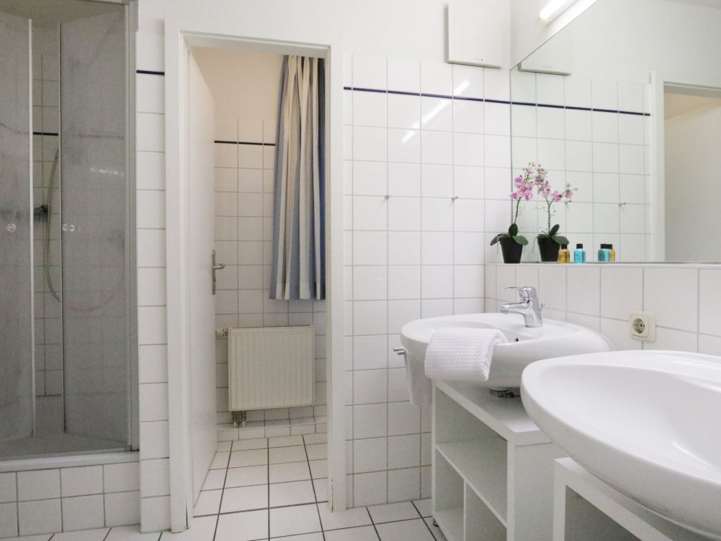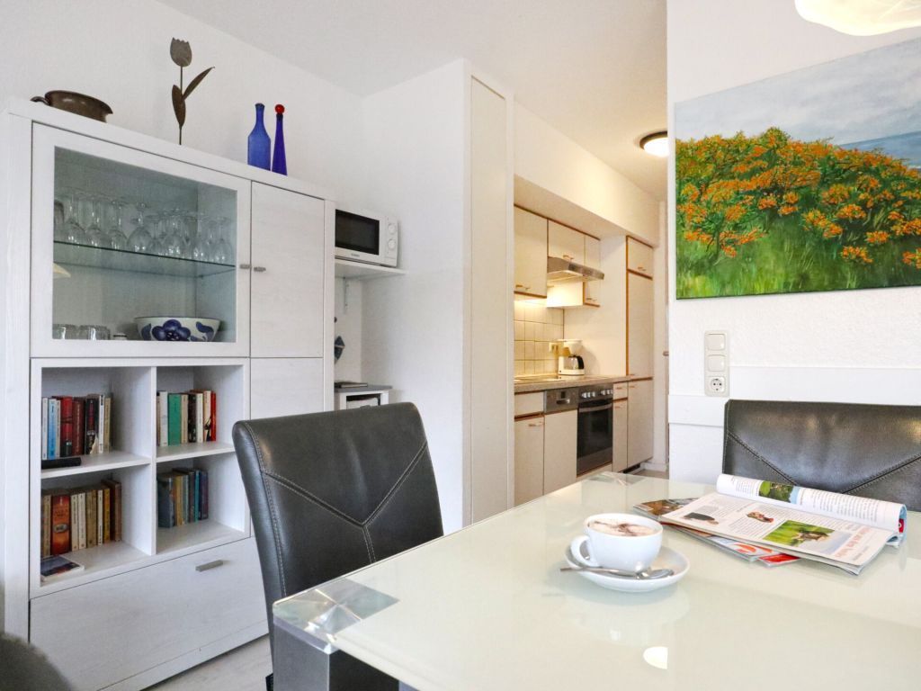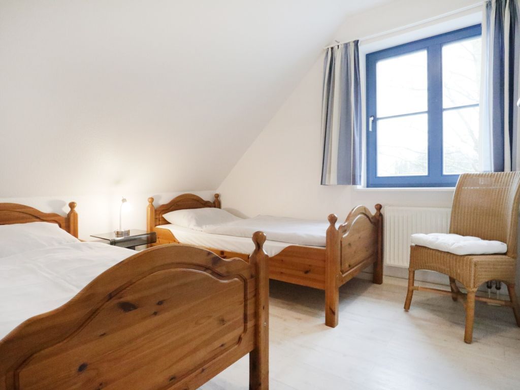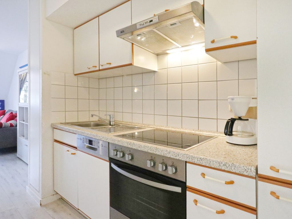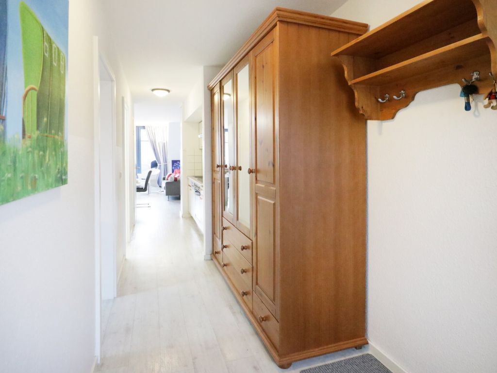Die behaglich ausgestattete Wohnung befindet sich im 1. Obergeschoss und erstreckt sich über zwei Ebenen. Der im offenen Stil gehaltene Wohn-/Essbereich ist mit einer voll ausgestatteten Küchenzeile eingerichtet, so dass Sie sich bei Bedarf vollkommen eigenständig mit Urlaubsmahlzeiten versorgen können. Ihre gemeinsamen Mahlzeiten nehme Sie am großen Esstisch, oder während der wärmeren Jahreszeit bestimmt gerne auf dem saisonal möblierten Süd-West Balkon zu sich. Technische Unterhaltungselektronik bieten ein Fernseher, Musikanlage sowie kostenfreie WLAN-Nutzung. Die Wohnung besitzt insgesamt drei Schlafzimmer wovon eines mit zwei Einzelbetten und Kleiderschrank eingerichtet ist und sich in der unteren Wohnebene befindet. Ebenso ist ein großzügiges Duschbad mit zwei Waschtischen und WC auf dieser Ebene vorhanden. Über eine leicht geschwungene Holztreppe gelangen Sie in die obere Ebene, wo sich zwei weitere Schlafzimmer mit Doppelbett und Kleiderschank befinden. Im Untergeschoss des Hauses können Hausgäste Waschmaschine und Wäschetrockner gegen Gebühr nutzen. Keine Haustiere. Rauchen ist nicht gestattet. Ihr Fahrzeug parken Sie kostenfrei auf dem zur Wohnung gehörenden PKW-Stellplatz, der sich in unmittelbarer Nähe zum Haus befindet. Sollten Sie weitere Stellplätze benötigen, so stehen am Ortseingang kostenfreie Flächen nach Verfügbarkeit bereit, oder Sie nutzen die innerörtlichen kostenpflichtigen Parkplätze.