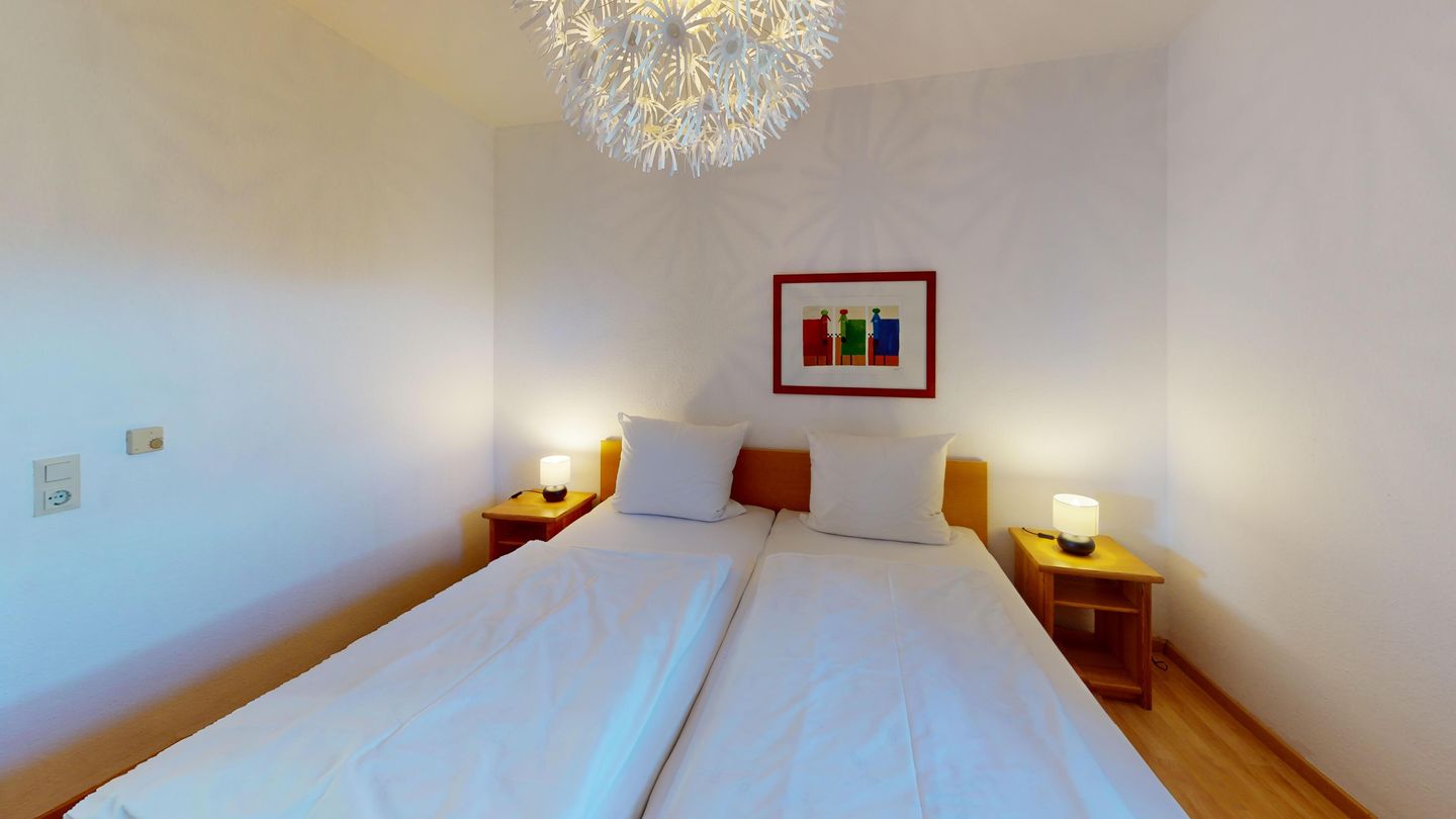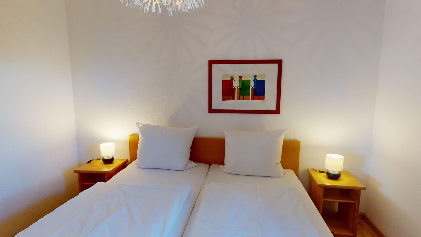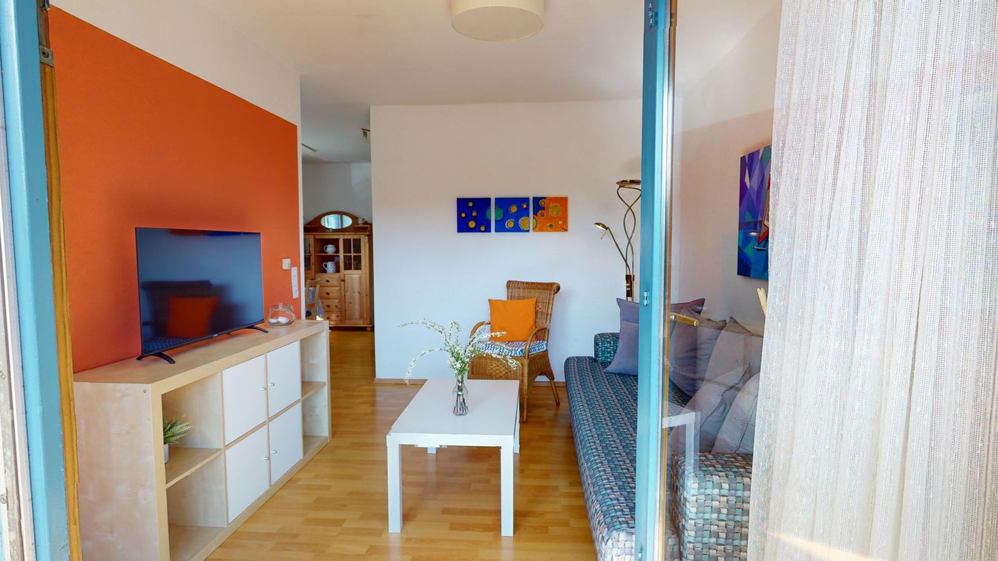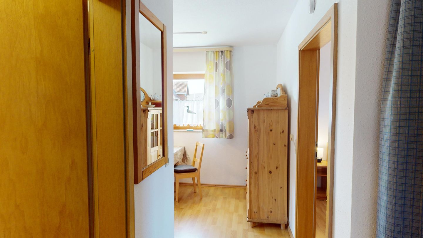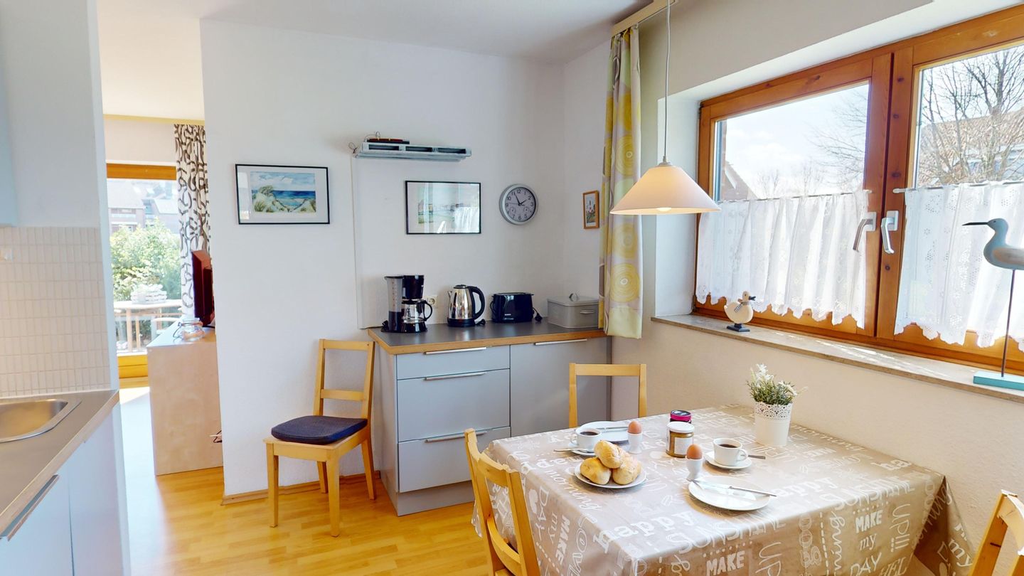 Die Wohnung liegt im Erdgeschoss des Hauses Nr. 40 in der Ferienanlage Lemkenhafen (5 Stufen vor der Haustür), die insgesamt vier Wohnungen umfasst. Es gibt ein gemütliches Wohnzimmer mit einem Sofa, das als Schlafmöglichkeit für zwei Personen dient. Außerdem verfügt die Wohnung über eine Küche mit anschließendem, schönen Essbereich sowie ein Schlafzimmer mit Doppelbett und ein Duschbad.