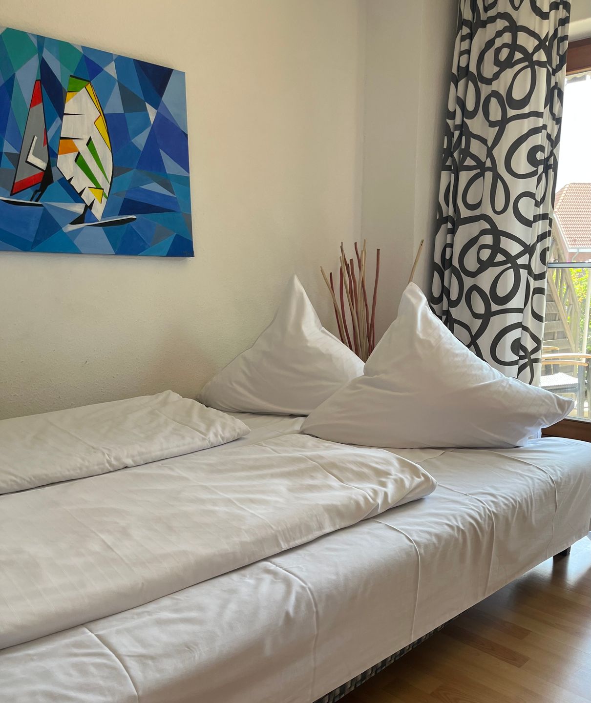 14 attraktive, freistehende Appartementhäuser nur 3 Minuten vom Yachthafen entfernt auf einem ruhigen Garten-/Naturgrundstück. Die verschiedenen Wohnungstypen verfügen über Balkon oder Terrasse - ideal, um den Tag gemütlich an der frischen Luft bei einem Glas Wein ausklingen zu lassen. Der Yachthafen mit seinen gemütlichen Cafés und netten Restaurants lässt sofort Urlaubsgefühl aufkommen. Die Insel zählt zu einem der besten Segelreviere der Welt und auch Surfer findet man viele, denn hier herrschen fast immer optimale Windverhältnisse!