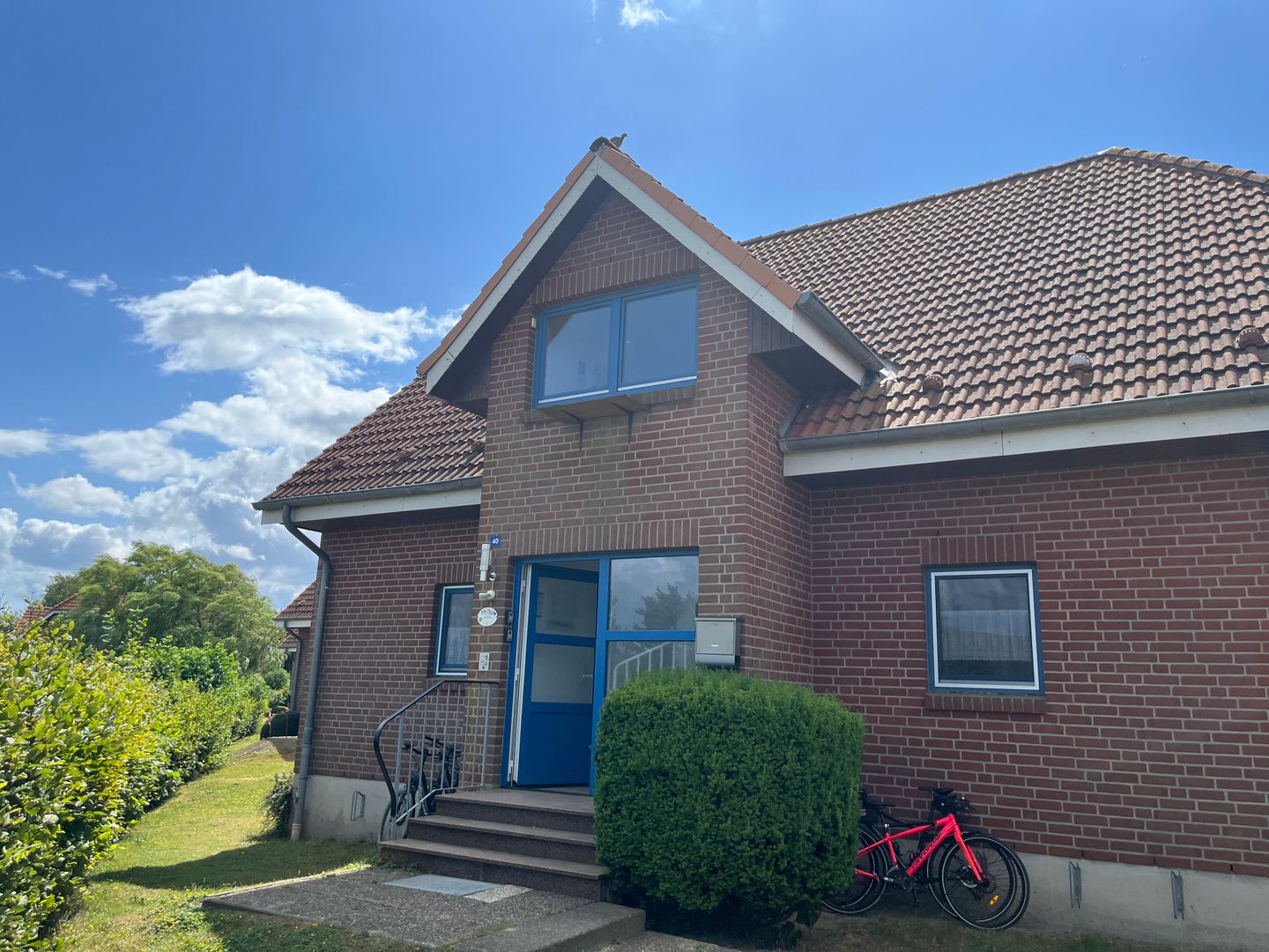 Mitgebrachte Fahrräder können am Fahrradständer am Haus angeschlossen werden.