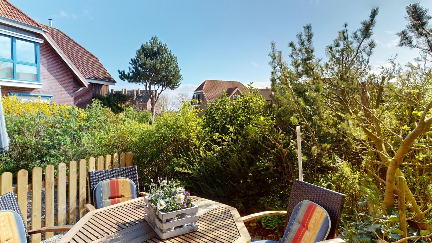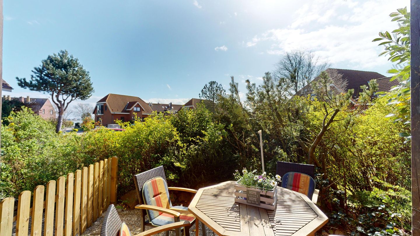 Die möblierte Terrasse lädt zu sonnigen Stunden an der Ostseeluft ein.