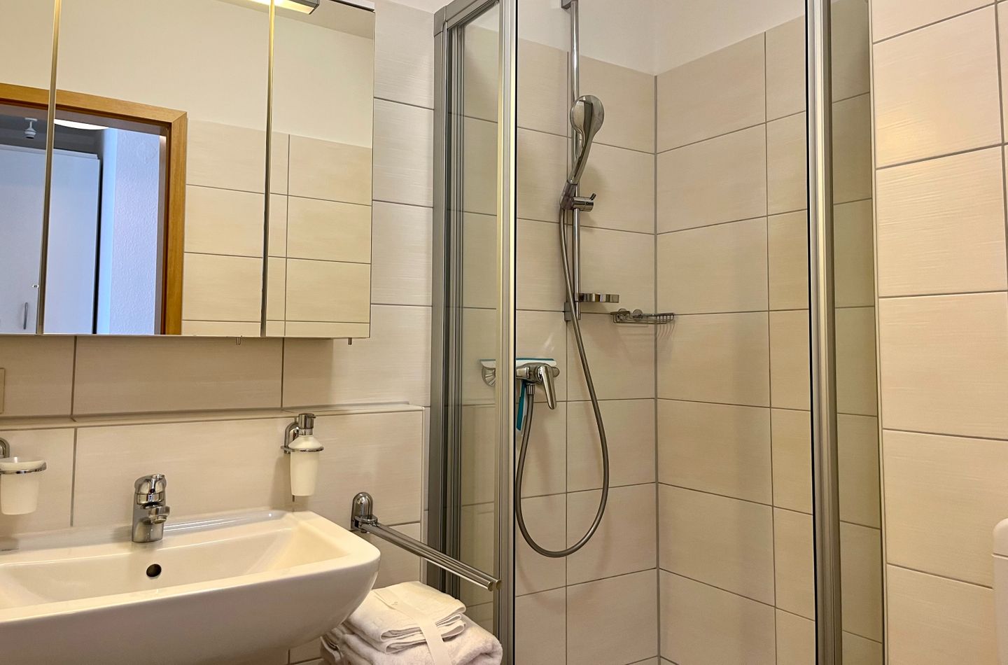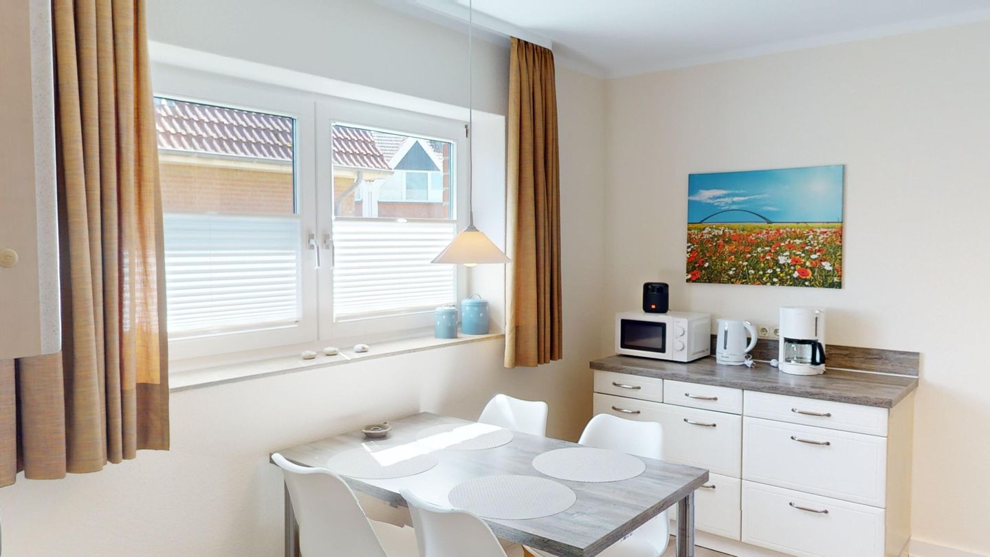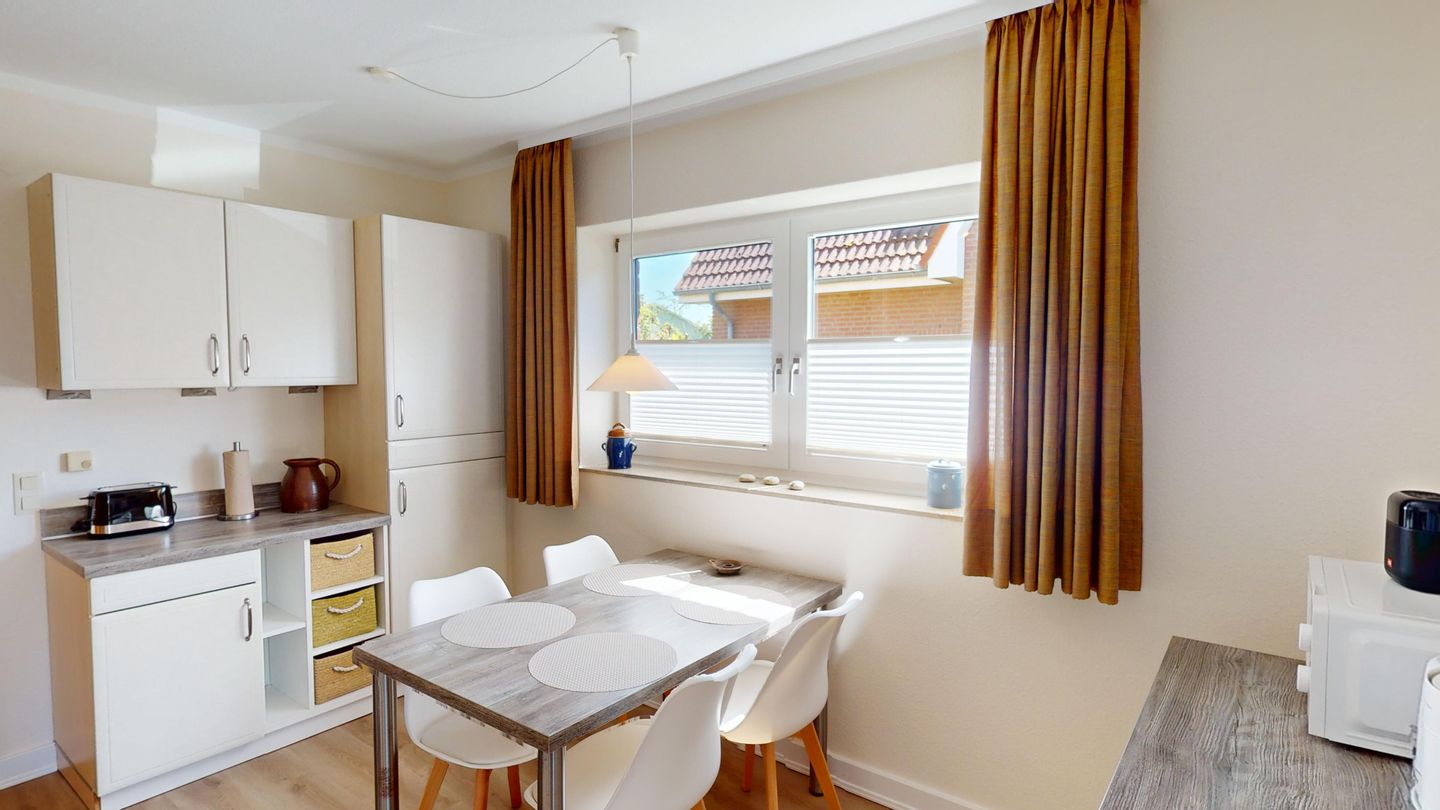 Die komplett ausgestattete Küche mit anschließendem, stilvollen Essbereich macht gemeinsame Mahlzeiten zum Genuss. Im separaten Schlafzimmer wartet ein komfortables Doppelbett mit zwei hochwertigen bett1-Matratzen (90x200 cm) – wählbar in zwei Härtegraden für individuellen Schlafkomfort. Das moderne Duschbad rundet das Wohlfühlpaket ab.