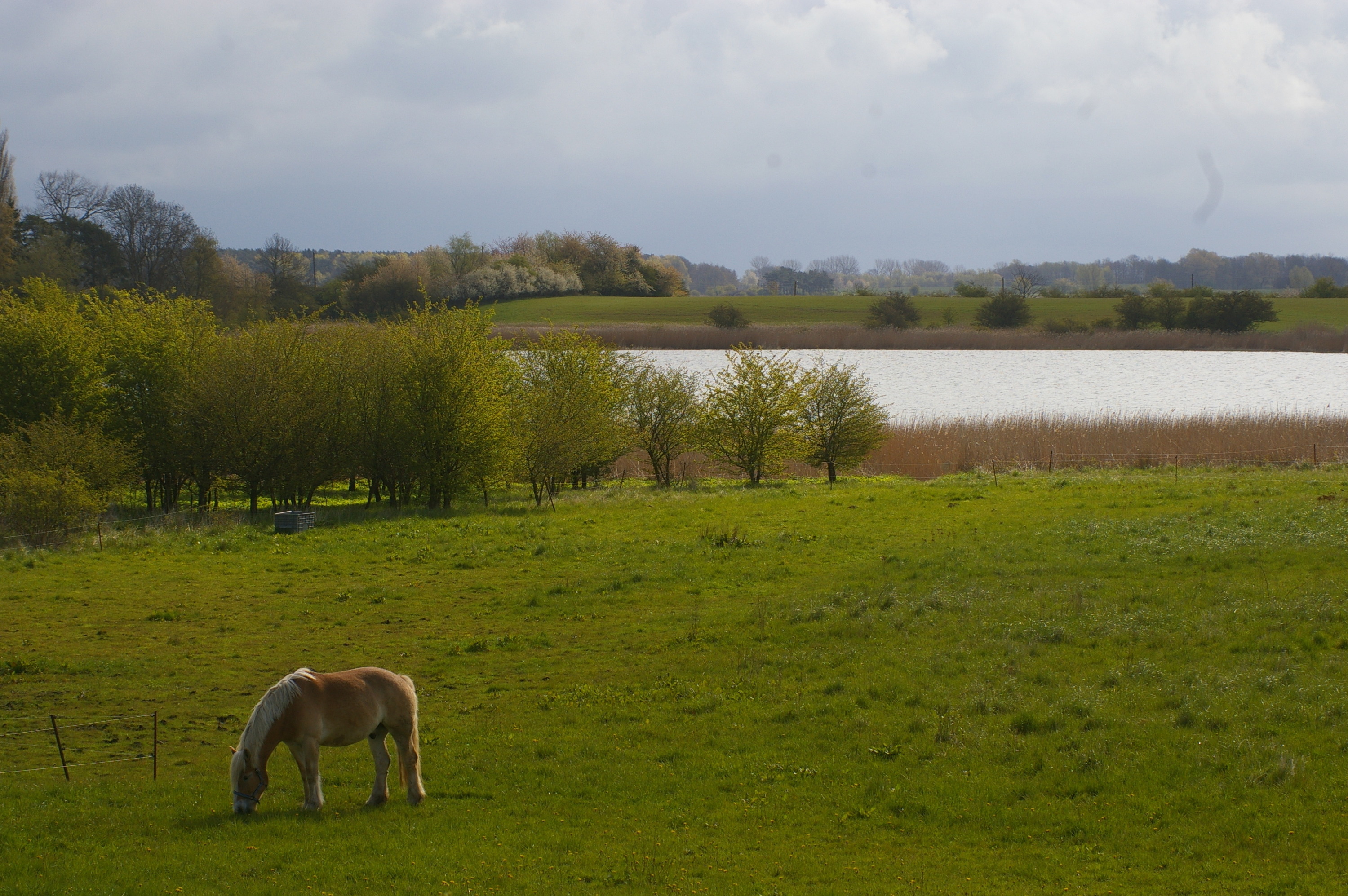 Das große Wassergrundstück mit direkten Blick auf den Bodden bietet Ruhe und Erholung.