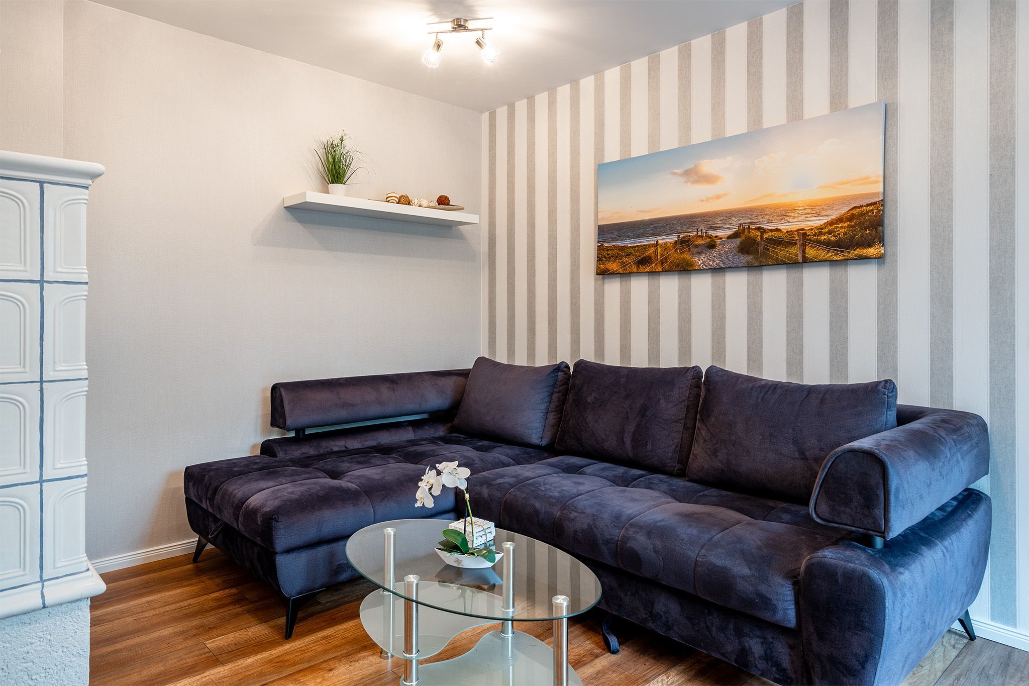 * die Wohnung verfügt über ein Schlafsofa, sodass bei Buchung mit 6 Personen das Schlafsofa als drittes Bett genutzt wird! Beachten Sie bitte weiterhin, dass es eine Stufe vom Flur zur Küche und zum Wohnbereich gibt und die Wohnung demnach nicht komplett ebenerdig ist.*
