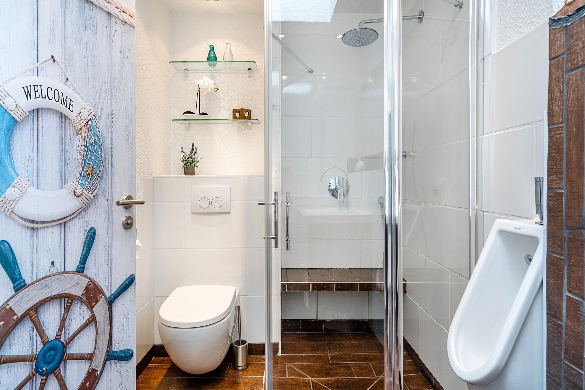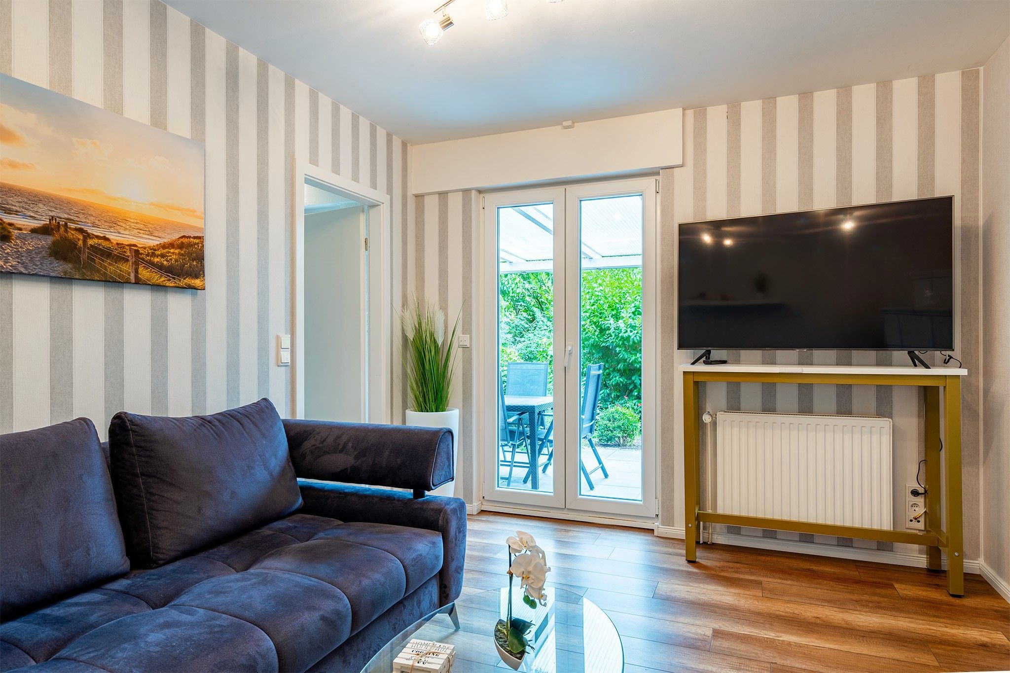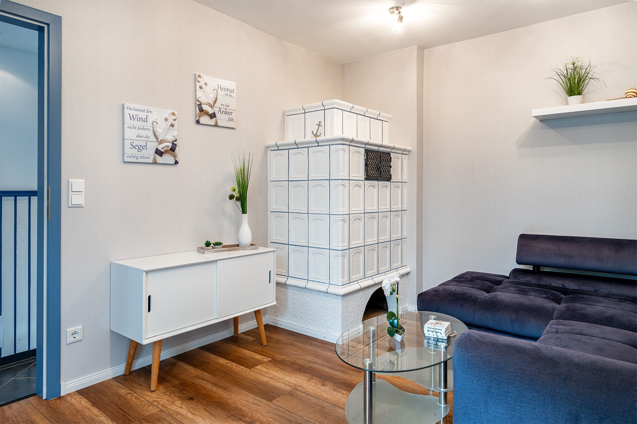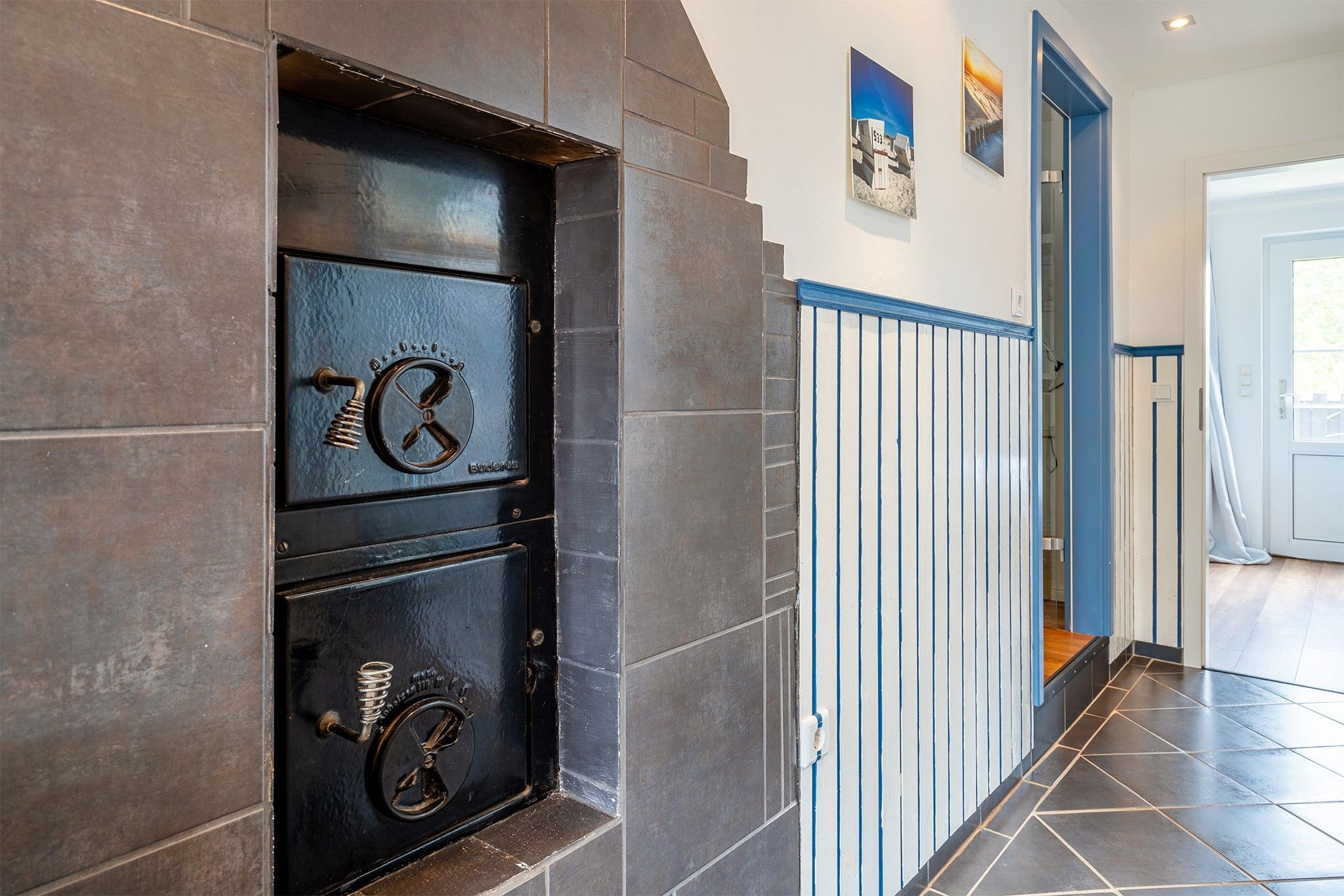 Das „Kamin Apartment“ bietet Ihnen auf rund 75qm eine stilvolle Kombination aus traditionellem Charme und modernem Komfort. Die im Erdgeschoss gelegene Ferienwohnung wurde mit viel Liebe zum Detail renoviert besondere Akzente wie der originale Friesen-Kachelofen sorgen für eine behagliche Atmosphäre und laden nach einem erlebnisreichen Tag zum Entspannen ein. Die Wohnung verfügt über einen hellen Wohnbereich mit großem Sofa, eine voll ausgestattete separate Küche mit großzügiger Sitzecke sowie zwei gemütliche Schlafzimmer, wovon eines ein normal großes Doppelbett und das zweite ein 1,40m breites Bett bietet. Ein besonderes Highlight: Von einem der Schlafzimmer genießen Sie einen direkten Blick auf die berühmte „grüne Mühle“ der Region. Zwei Terrassen erweitern den Wohnraum ins Freie eine davon ist überdacht und mit einer komfortablen Sitzgruppe ausgestattet, die andere bietet Sonnenliegen und einen freien Blick auf die Mühle perfekt für entspannte Stunden im Freien. Auch Hunde sind im „Kamin Apartment“ herzlich willkommen. Für Ihren Komfort stehen Ihnen ein eigener PKW-Stellplatz sowie eine überdachte Abstellmöglichkeit für Fahrräder zur Verfügung. Die Wohnung verfügt über zwei Fernseher, einer befindet sich im Wohnzimmer, der andere in dem Schlafzimmer mit dem 1,4m großen Bett.