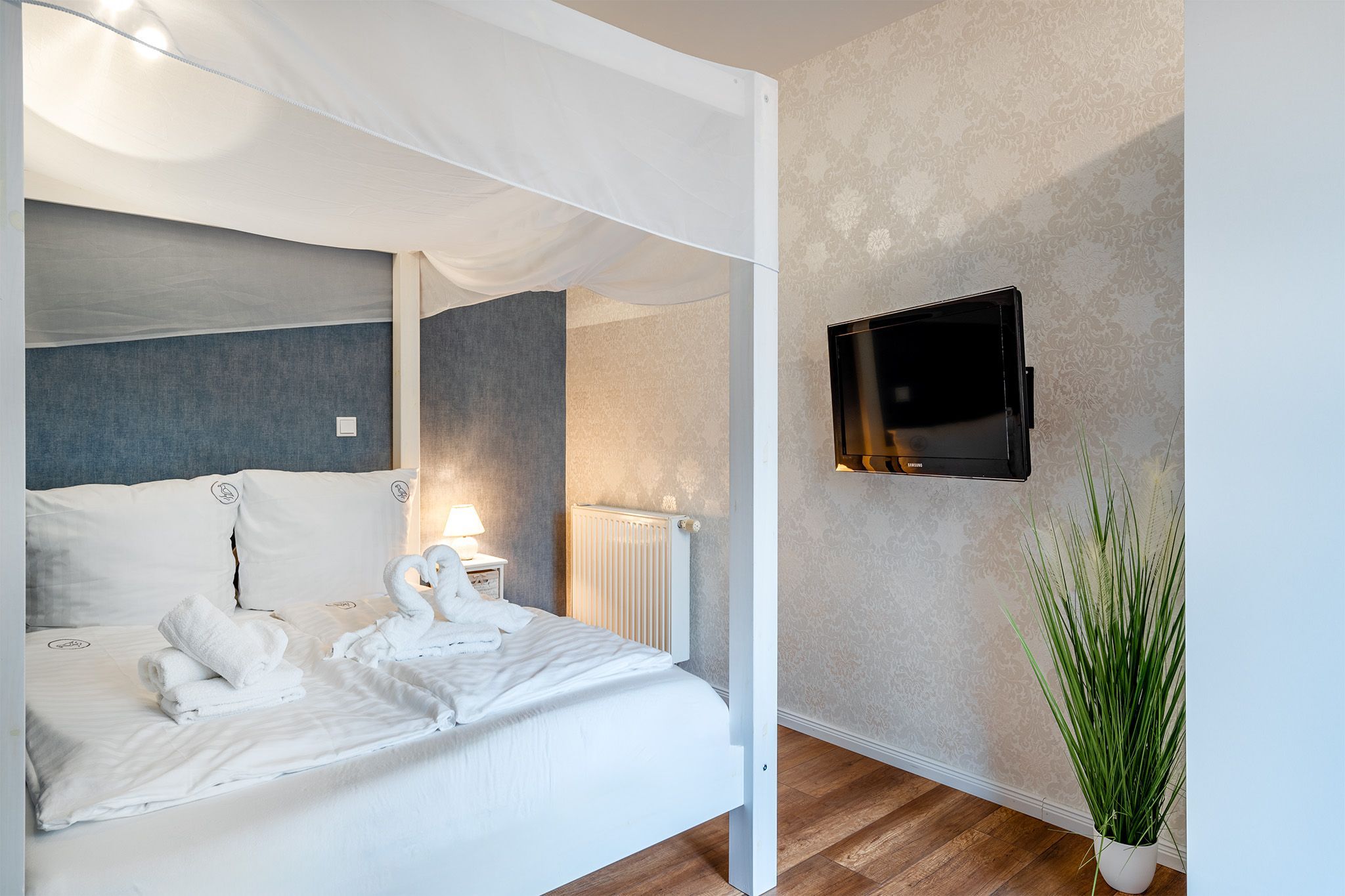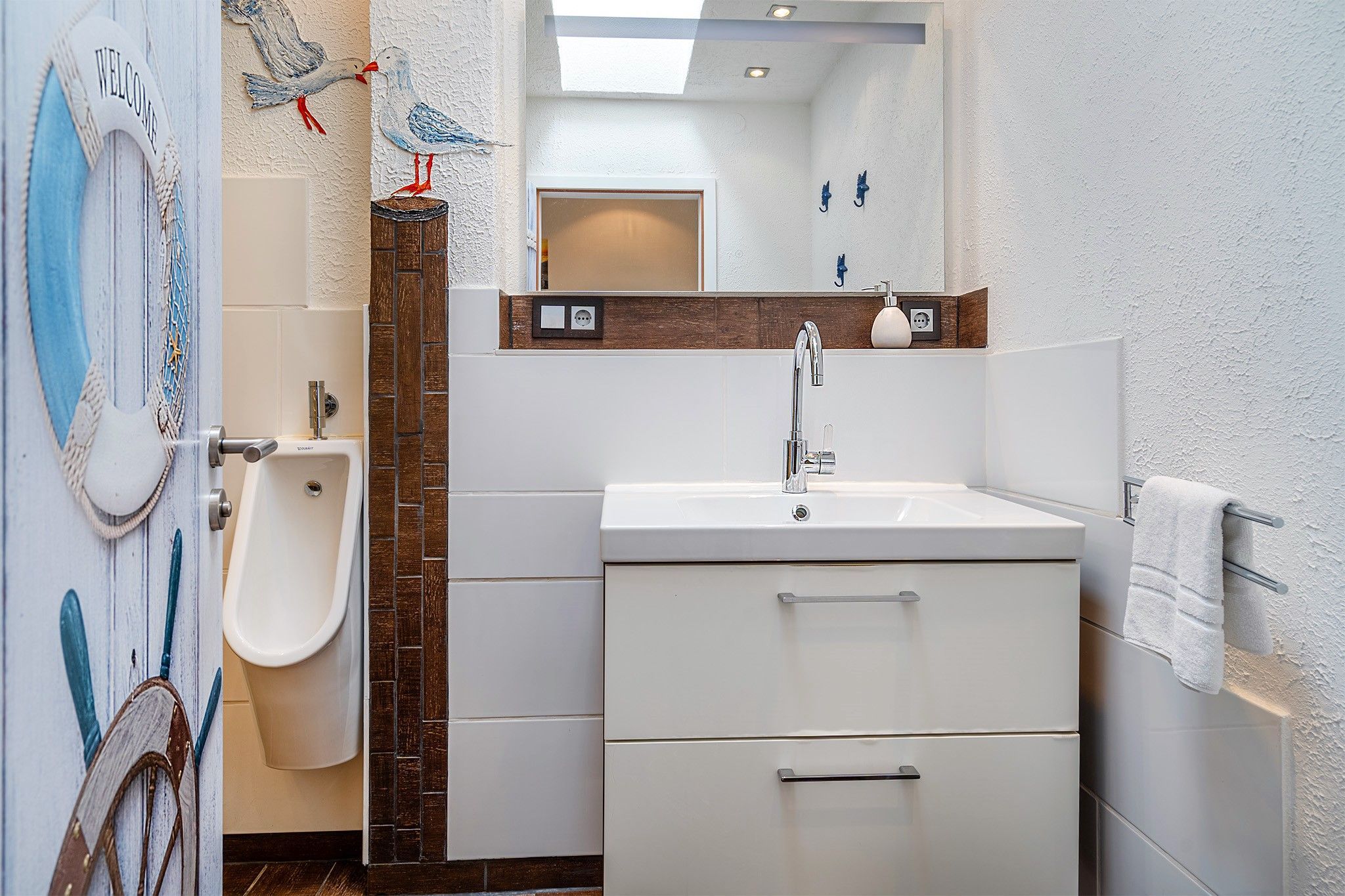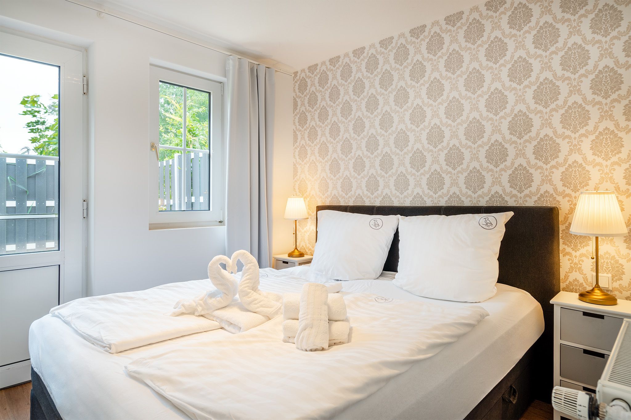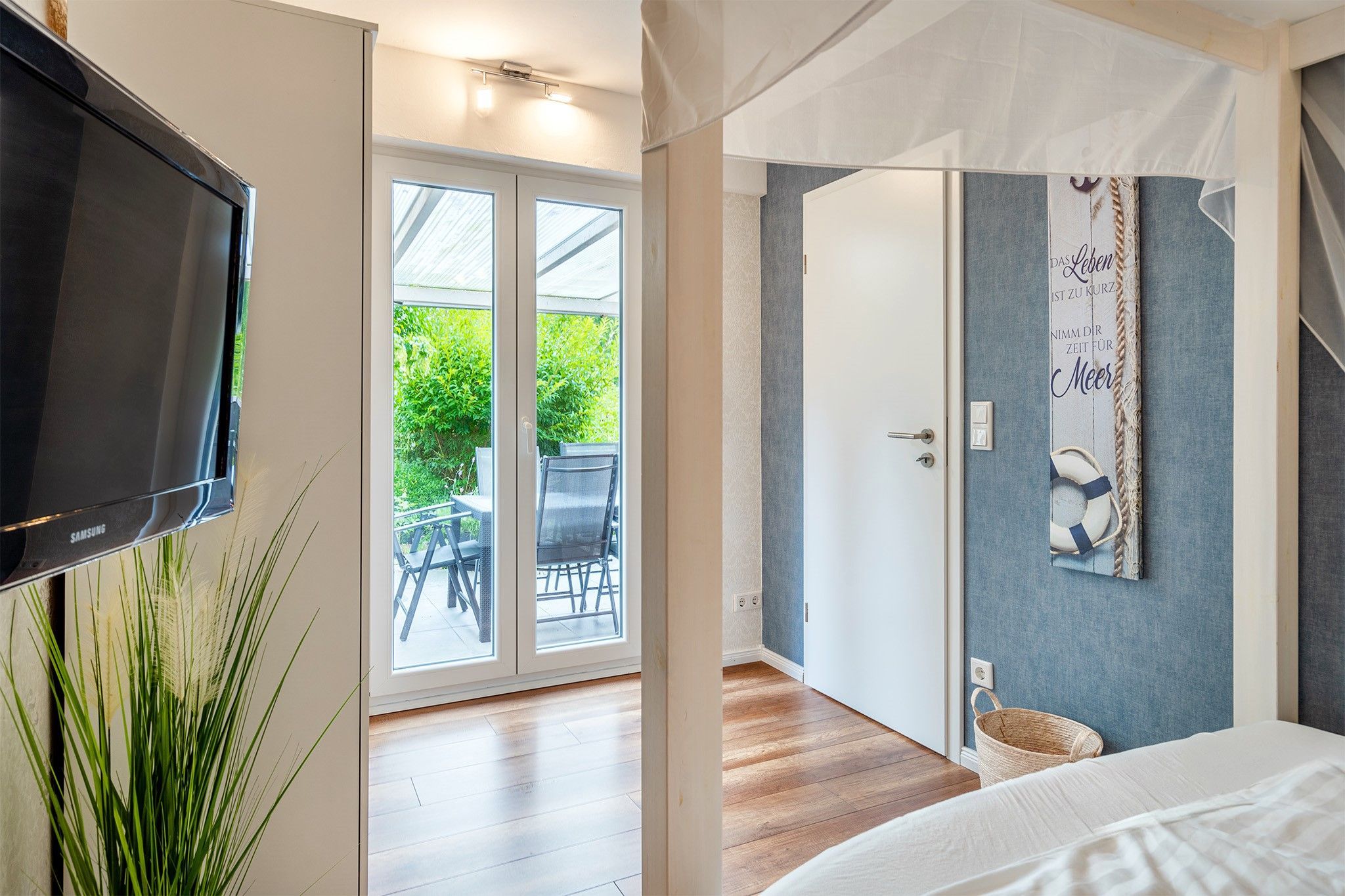 Das „Kamin Apartment“ bietet Ihnen auf rund 75qm eine stilvolle Kombination aus traditionellem Charme und modernem Komfort. Die im Erdgeschoss gelegene Ferienwohnung wurde mit viel Liebe zum Detail renoviert besondere Akzente wie der originale Friesen-Kachelofen sorgen für eine behagliche Atmosphäre und laden nach einem erlebnisreichen Tag zum Entspannen ein. Die Wohnung verfügt über einen hellen Wohnbereich mit großem Sofa, eine voll ausgestattete separate Küche mit großzügiger Sitzecke sowie zwei gemütliche Schlafzimmer, wovon eines ein normal großes Doppelbett und das zweite ein 1,40m breites Bett bietet. Ein besonderes Highlight: Von einem der Schlafzimmer genießen Sie einen direkten Blick auf die berühmte „grüne Mühle“ der Region. Zwei Terrassen erweitern den Wohnraum ins Freie eine davon ist überdacht und mit einer komfortablen Sitzgruppe ausgestattet, die andere bietet Sonnenliegen und einen freien Blick auf die Mühle perfekt für entspannte Stunden im Freien. Auch Hunde sind im „Kamin Apartment“ herzlich willkommen. Für Ihren Komfort stehen Ihnen ein eigener PKW-Stellplatz sowie eine überdachte Abstellmöglichkeit für Fahrräder zur Verfügung. Die Wohnung verfügt über zwei Fernseher, einer befindet sich im Wohnzimmer, der andere in dem Schlafzimmer mit dem 1,4m großen Bett.